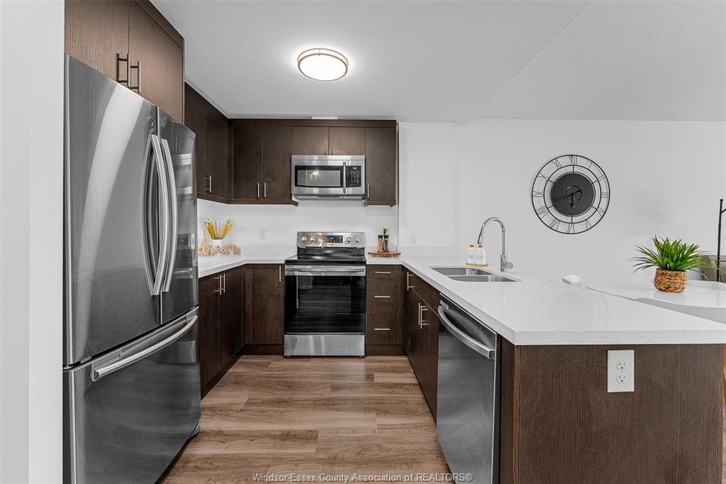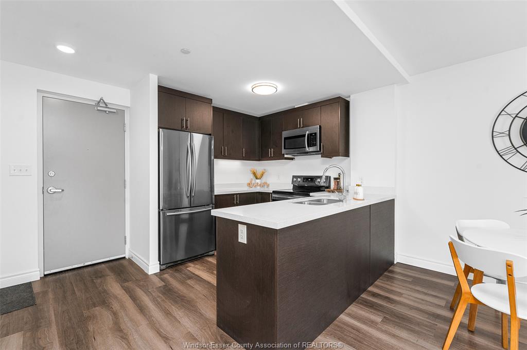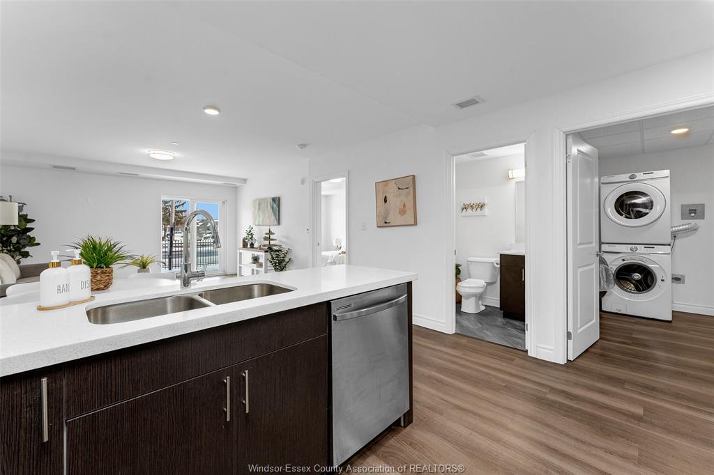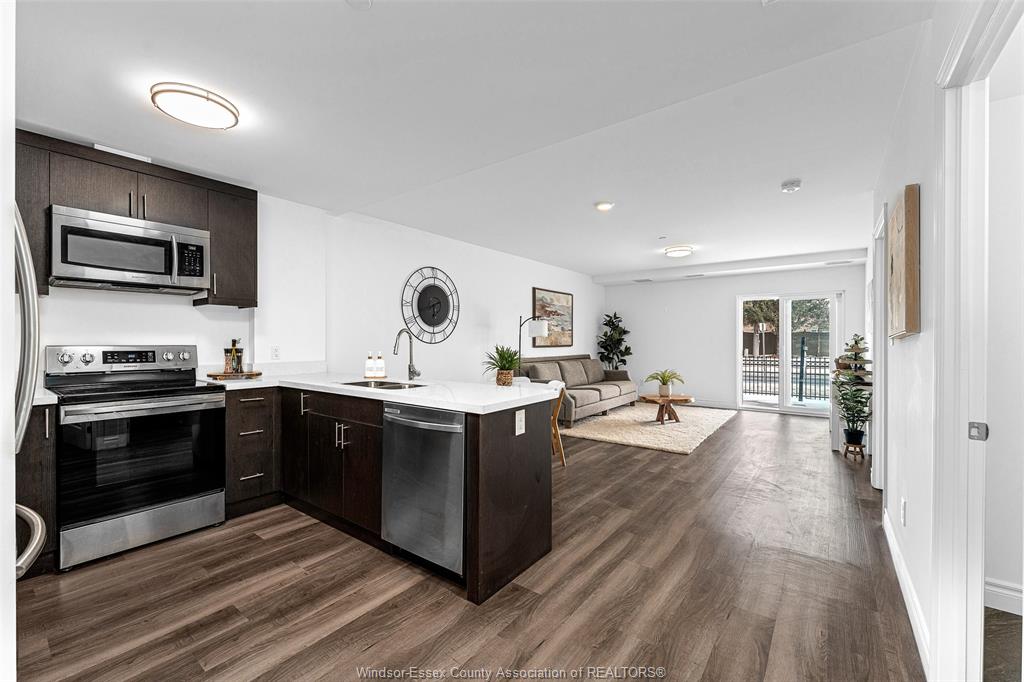 Welcome to 1611 banwell, unit 122. Enjoy this spacious 1 bedroom main floor unit with lots of natural sunlight offering a large primary bedroom with 4pc ensuite bath and walk-in closet. The modern kitchen has a breakfast bar and opens to the living & dining area featuring sliding glass doors to your private fenced backyard facing east to the morning sun. This well maintained unit comes with stainless steel appliances, modern lvp flooring insuite laundry room and an additional 1/2 bath for your guests. Amenities for the building offers a full commercial-grade fitness centre, yoga studio and a party room with secured entrance and advance package delivery pods for easy convenience of your parcels. Walk to elizabeth kishkon park that backs onto green space and a walking trail. There is 1 assigned parking spot that is conveniently located just outside the main entrance door. Walking distance to shopping and bus routes. $1,850/month plus utilities, minimum 1 year lease, credit score and employment verification required.
