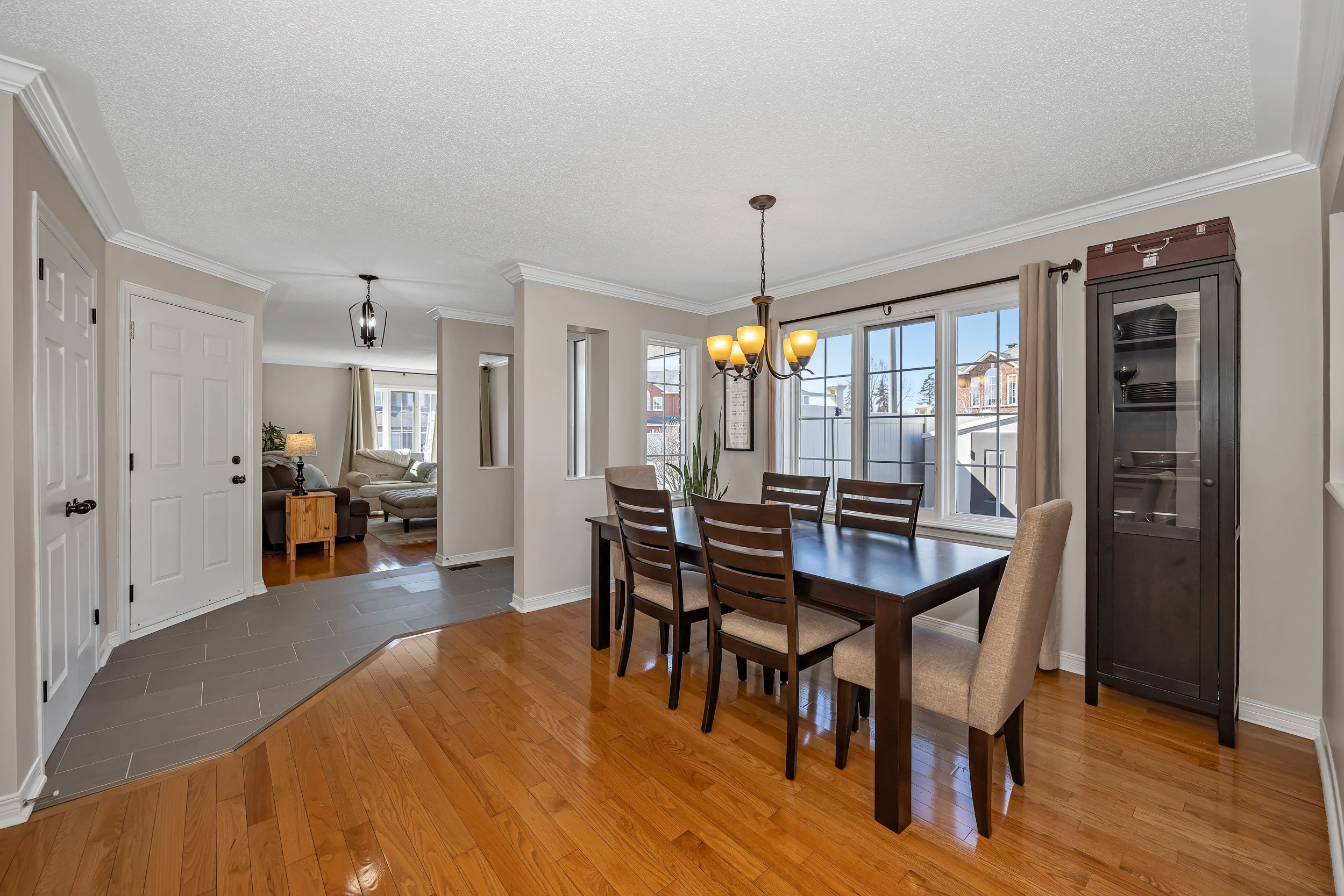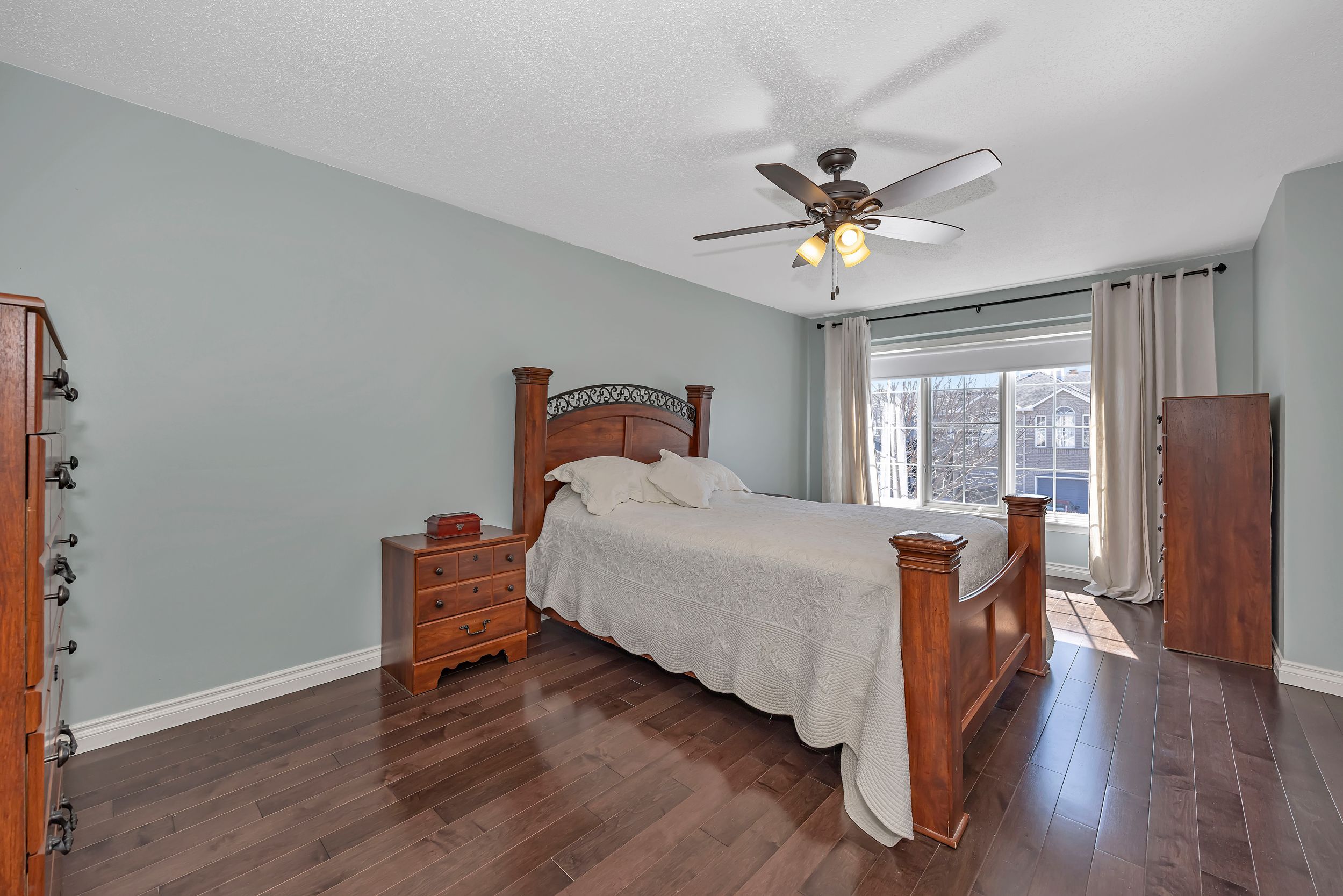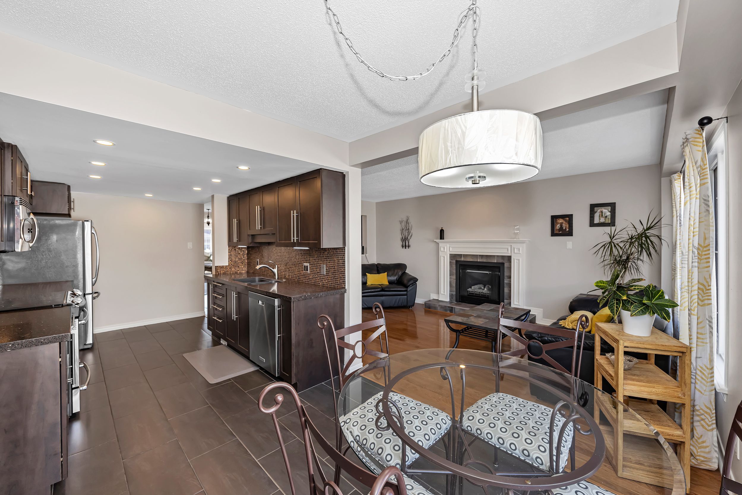 Welcome to carson grove, where convenience meets comfort in this rarely offered 4-bedroom end-unit townhouse, ideally situated on a desirable corner lot. This well-maintained home offers exceptional space and functionality, both inside and out. The fully fenced backyard is perfect for entertaining, featuring a spacious interlock patio and a storage shed, ideal for all your lawn equipment and seasonal items. Step inside and you will immediately forget you are in a townhouse. The main floor welcomes you with a bright and inviting living room at the front, complemented by a generous dining area on the opposite side, perfect for hosting family gatherings. The updated kitchen boasts modern cabinetry, ample storage, and plenty of counter space for all your cooking needs. A cozy breakfast nook overlooks the backyard and flows seamlessly into the main floor family room, complete with a warm gas fireplace, creating the perfect space to relax and unwind. Upstairs, you will find four spacious bedrooms, all featuring hardwood flooring. A convenient 3-piece bathroom serves the secondary bedrooms, while the primary bedroom offers a private retreat with a 5-piece ensuite and his and hers walk-in closets. The second-floor laundry room adds everyday convenience and practicality. The basement offers additional potential for future living space and is currently used as an exercise area and for extra storage, giving you flexibility to customize it to your needs. Conveniently located just minutes from shopping, restaurants, lrt, cinema, and all essential amenities, this home offers the perfect balance of lifestyle and location. A rare opportunity not to be missed.