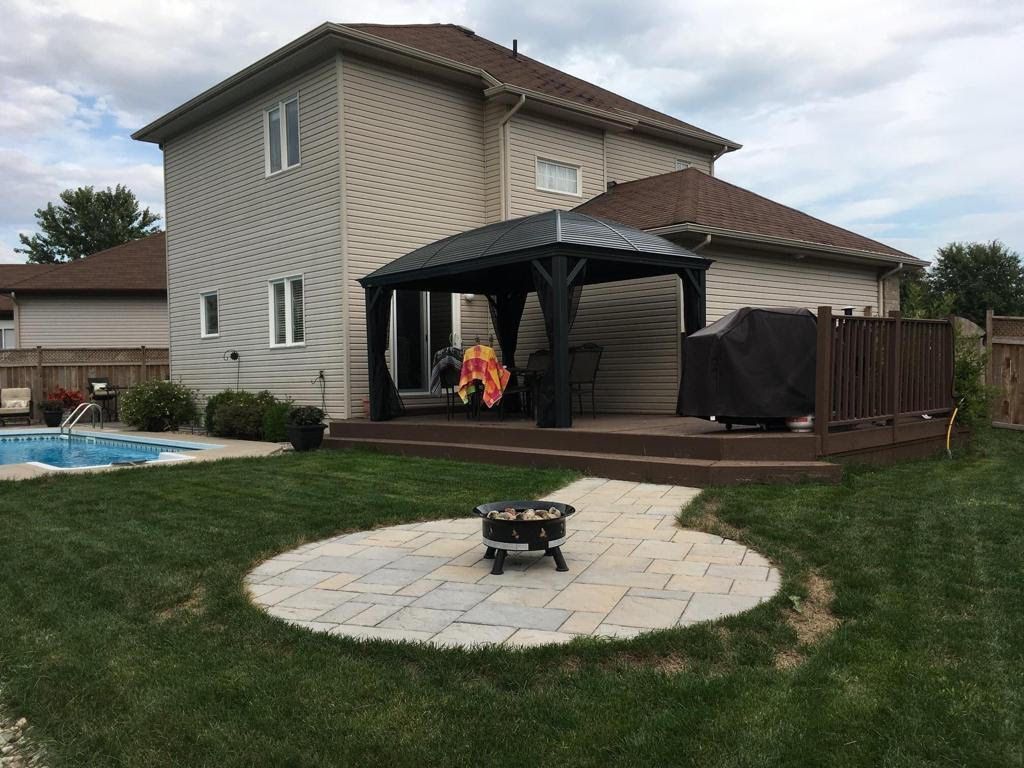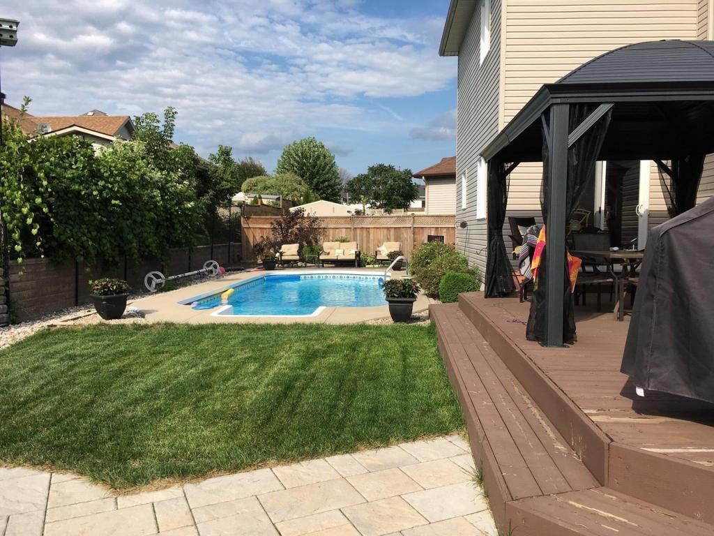 Welcome to 1611 sebastian crescent in rockland's desirable town square neighbourhood! Nestled on a quiet cul-de-sac within walking distance to schools, park and amenities, this lovely home sits on a pie-shaped lot with a fully fenced backyard, in-ground pool, patios, and deck-perfect for family living and summer entertaining. Inside, a spacious foyer with closet space welcomes you to a bright main floor featuring hardwood and ceramic flooring, an open-concept living/dining area, and an eat-in kitchen that has been fully renovated with stone countertops, stainless steel appliances, and patio doors leading to the backyard. The second level offers three generous bedrooms and a full main bathroom. The fully finished basement adds excellent living space with a fourth bedroom, a three-piece bathroom, spacious rec room, laundry, and storage. A wonderful home in a fantastic location! 24 hours irrevocable on all offers.