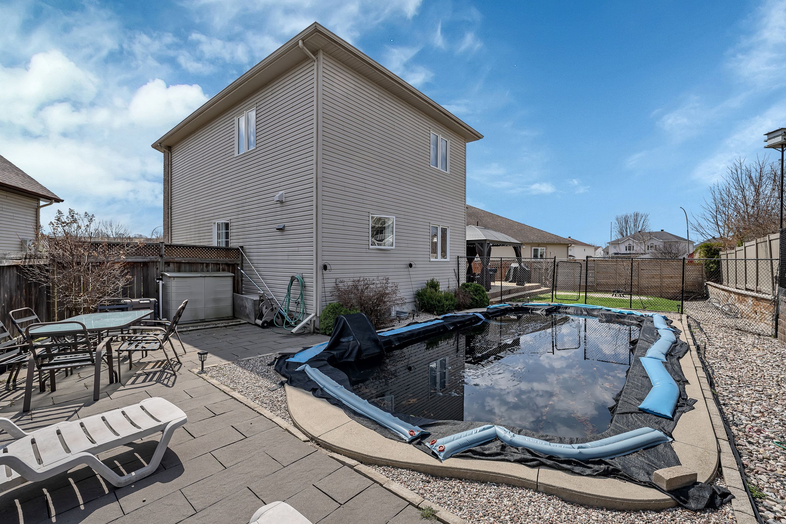 • Pie-shaped lot with a fully fenced backyard and in-ground pool.