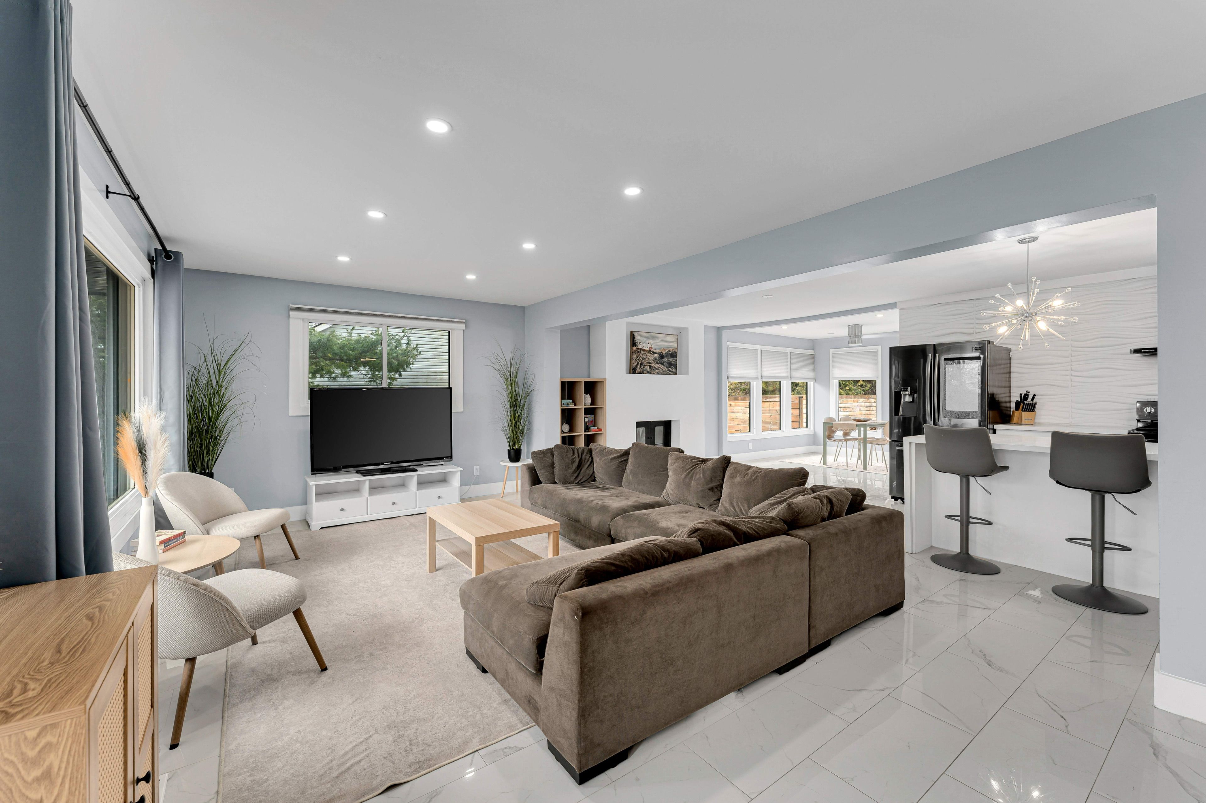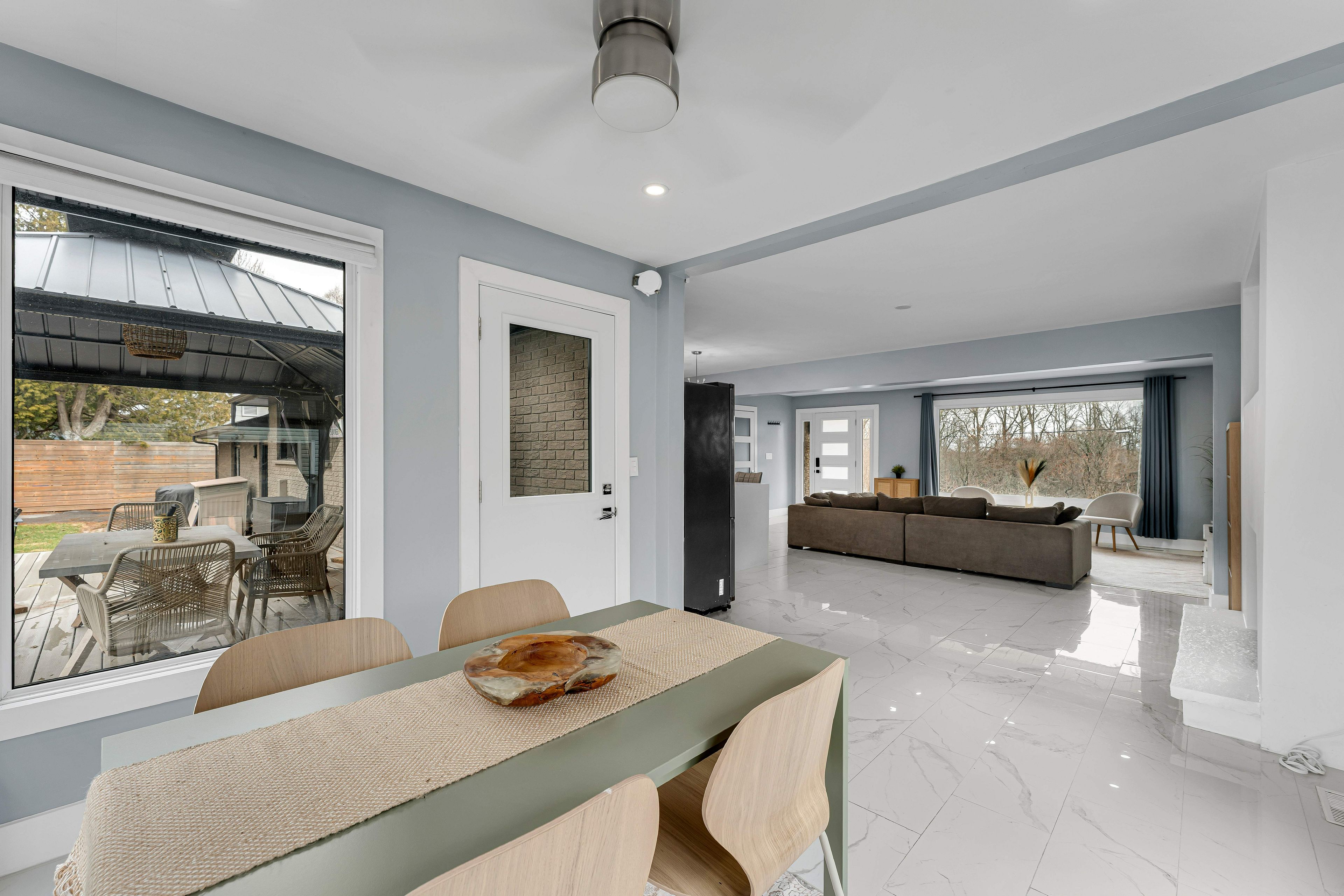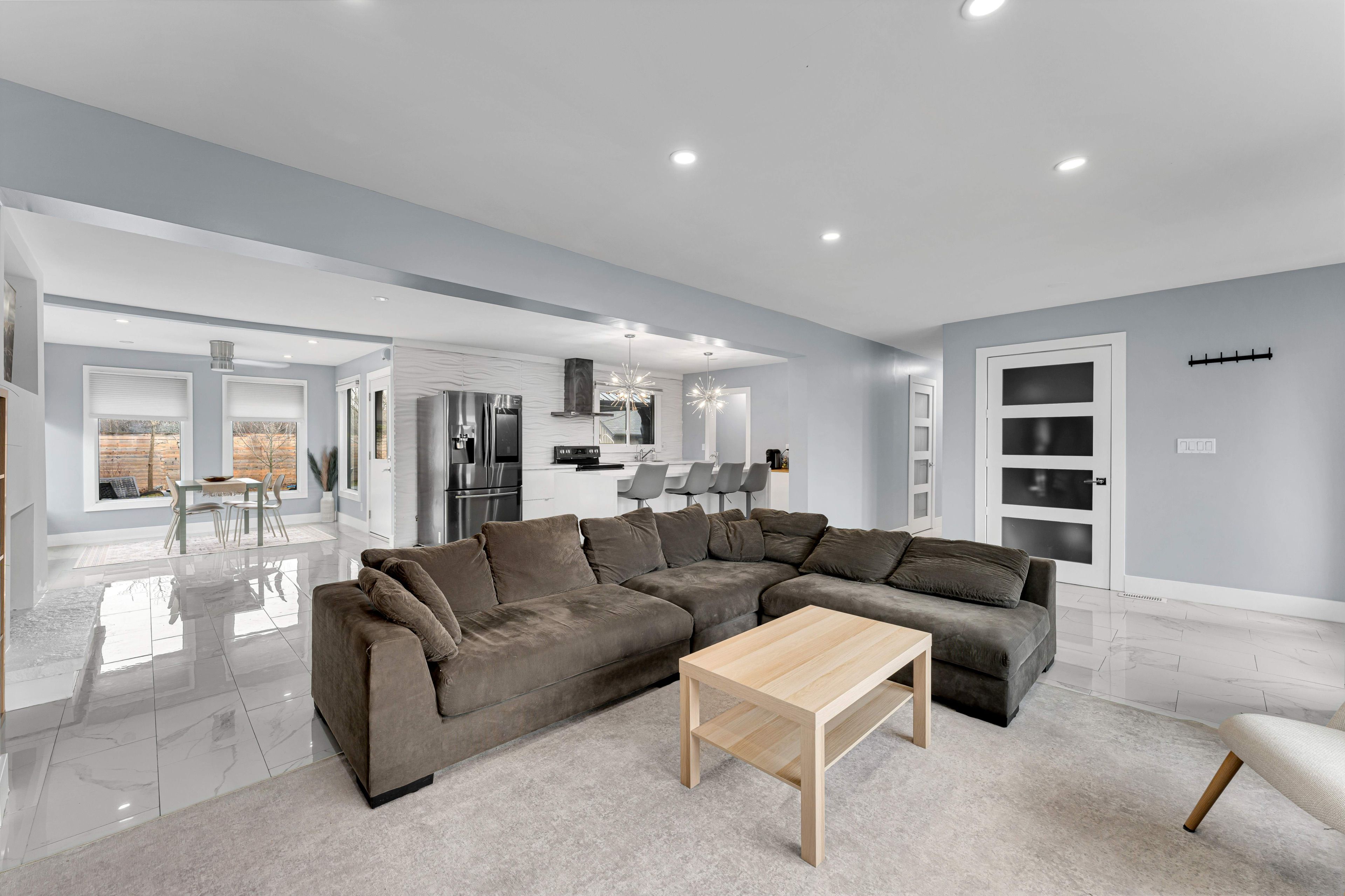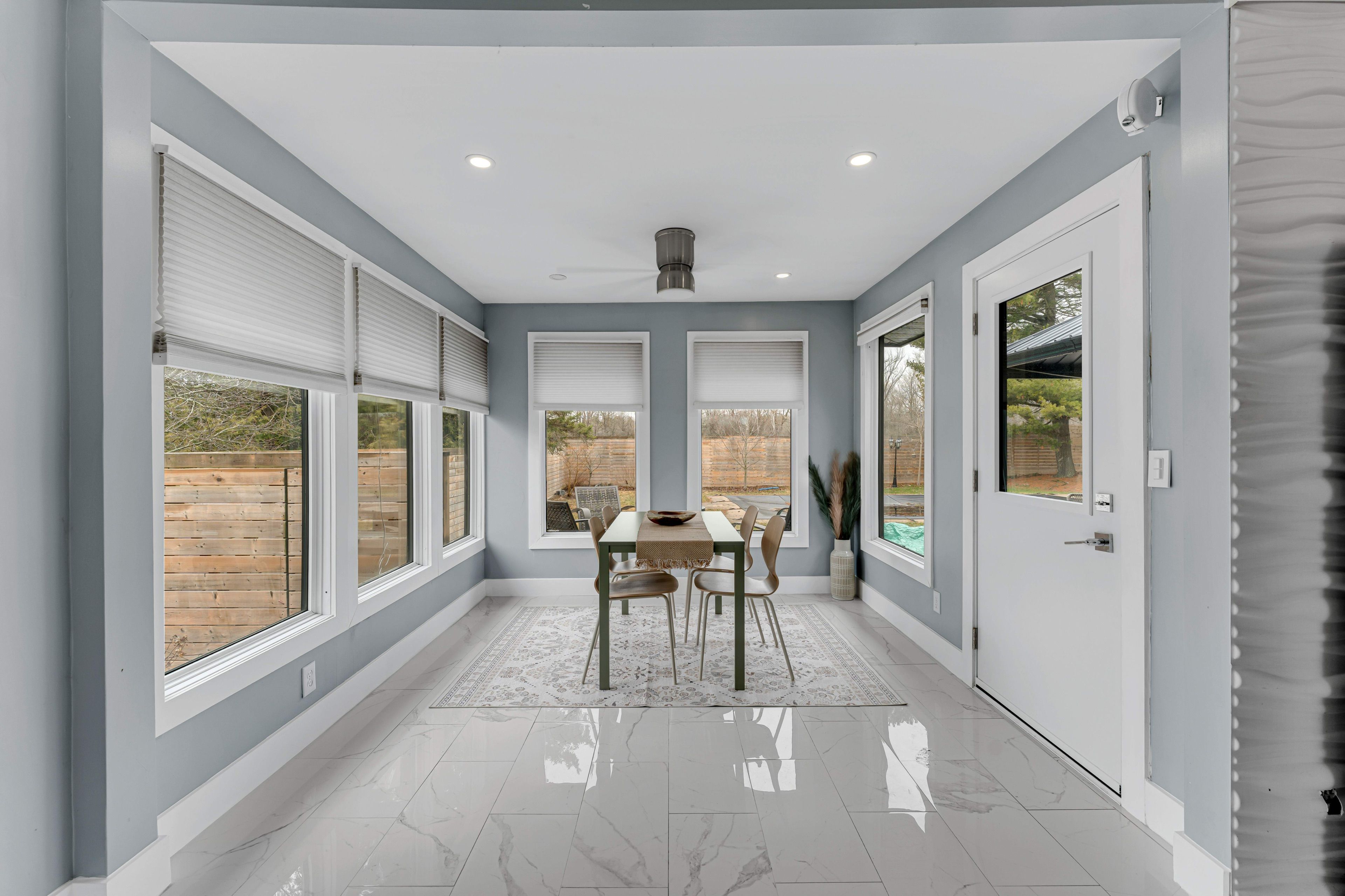 • Bright open-concept main area leading to a sunroom.