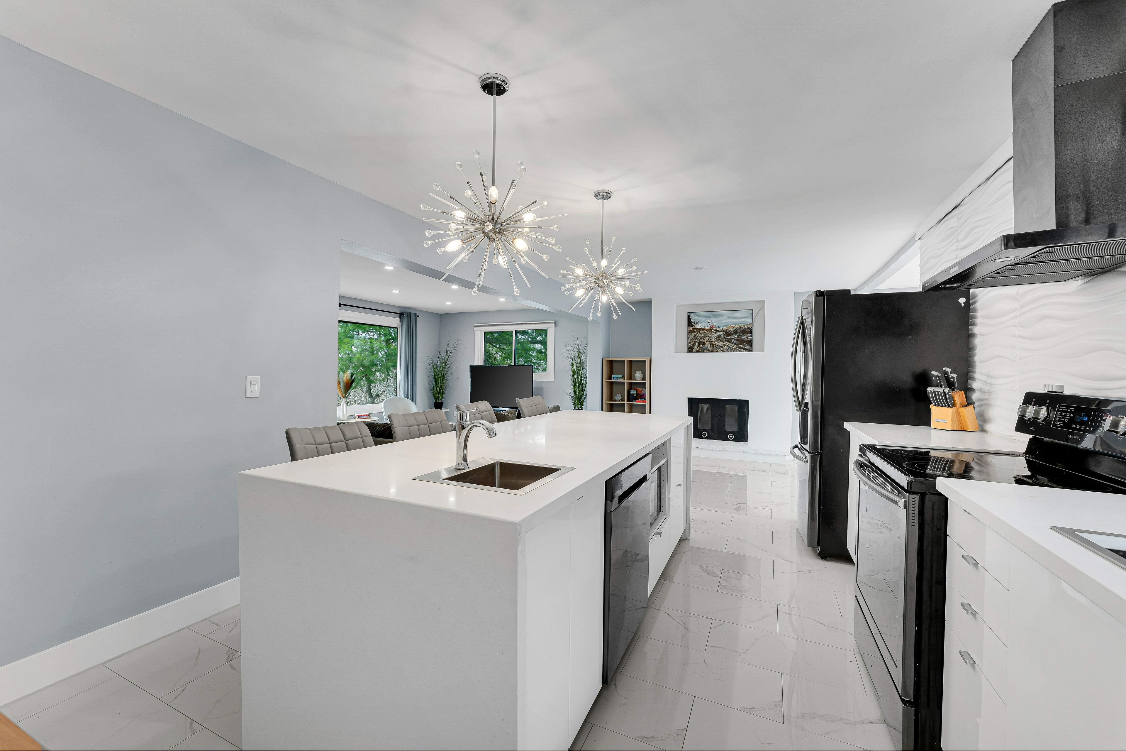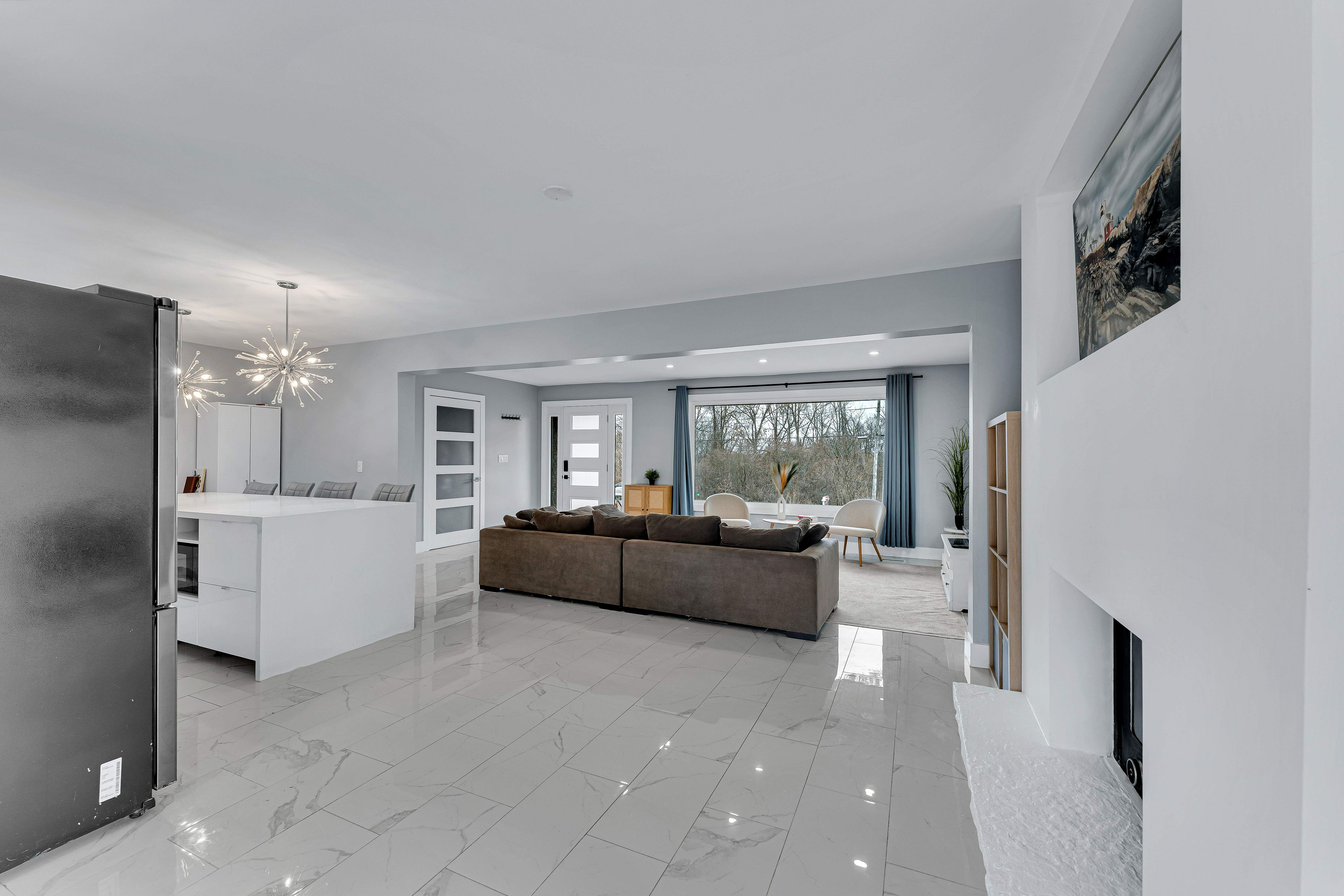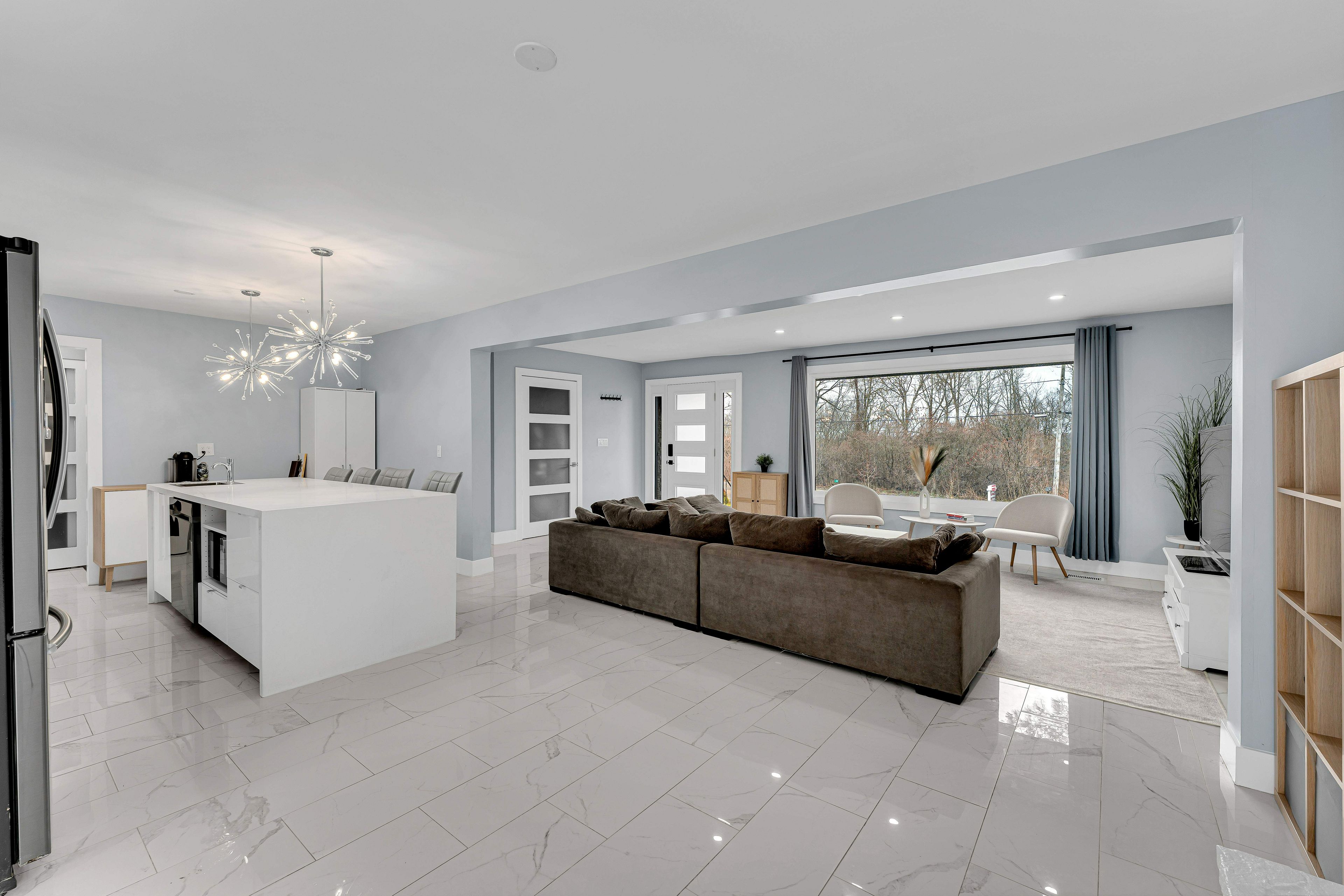 • Bright open-concept main area leading to a sunroom.