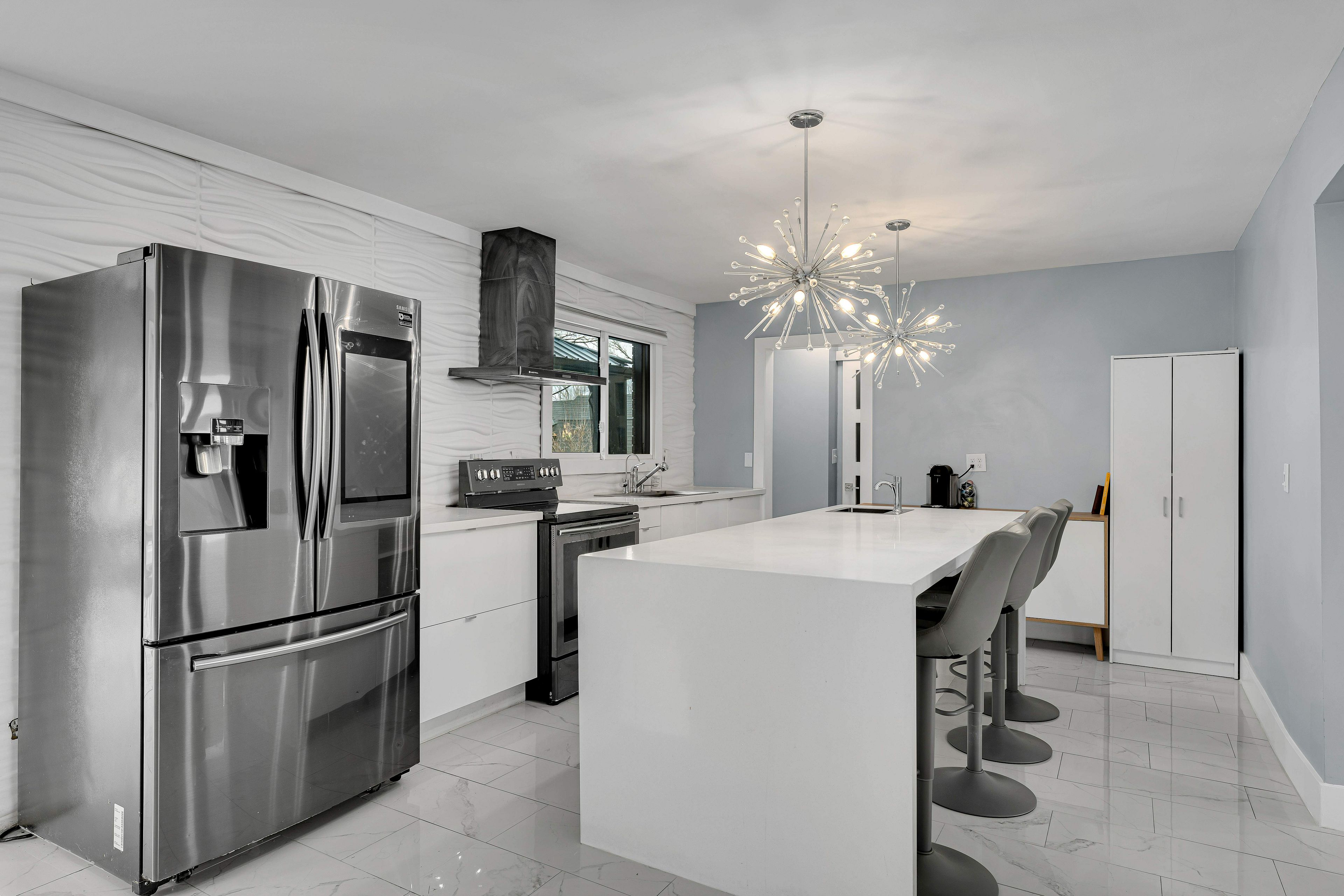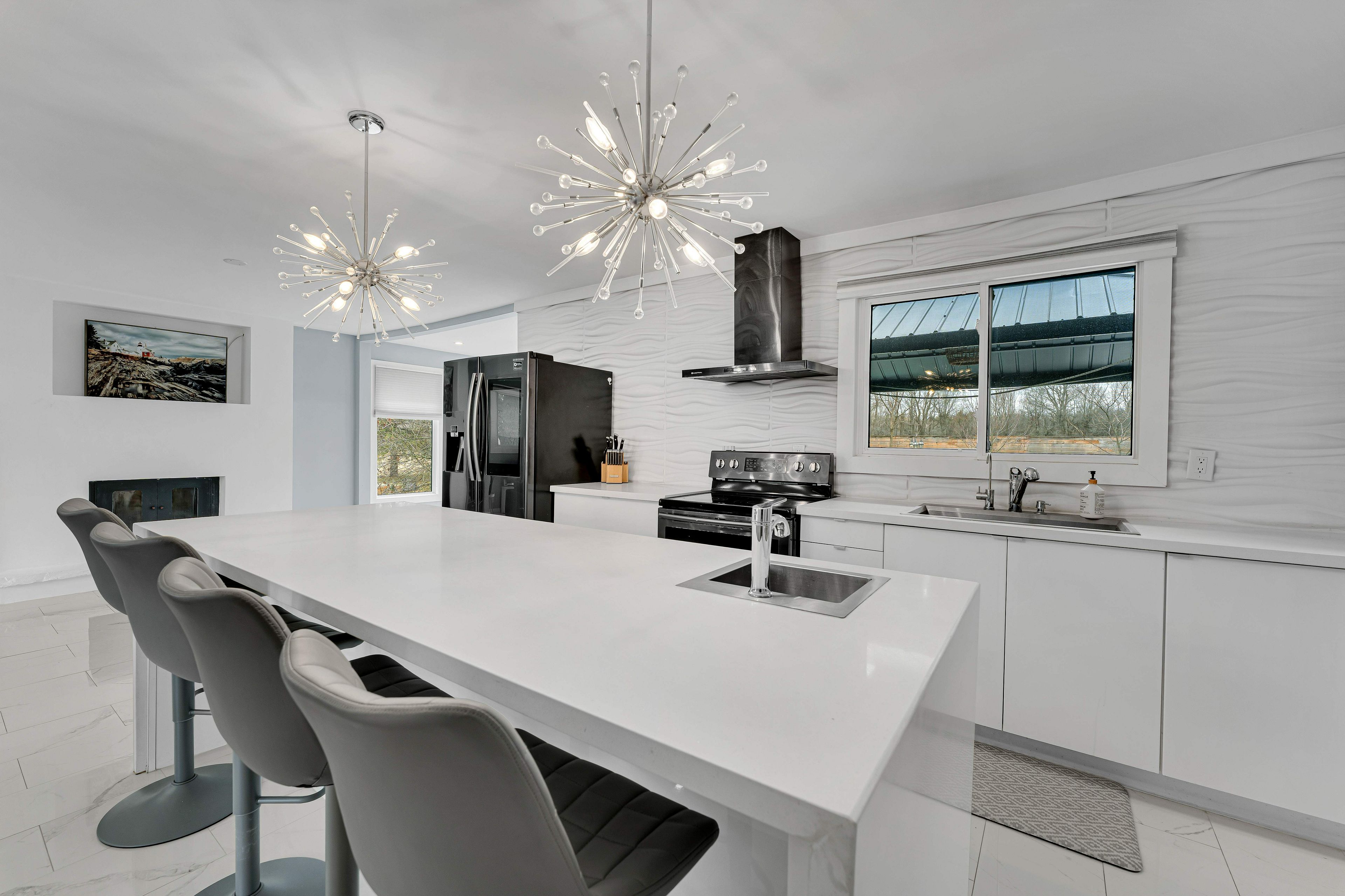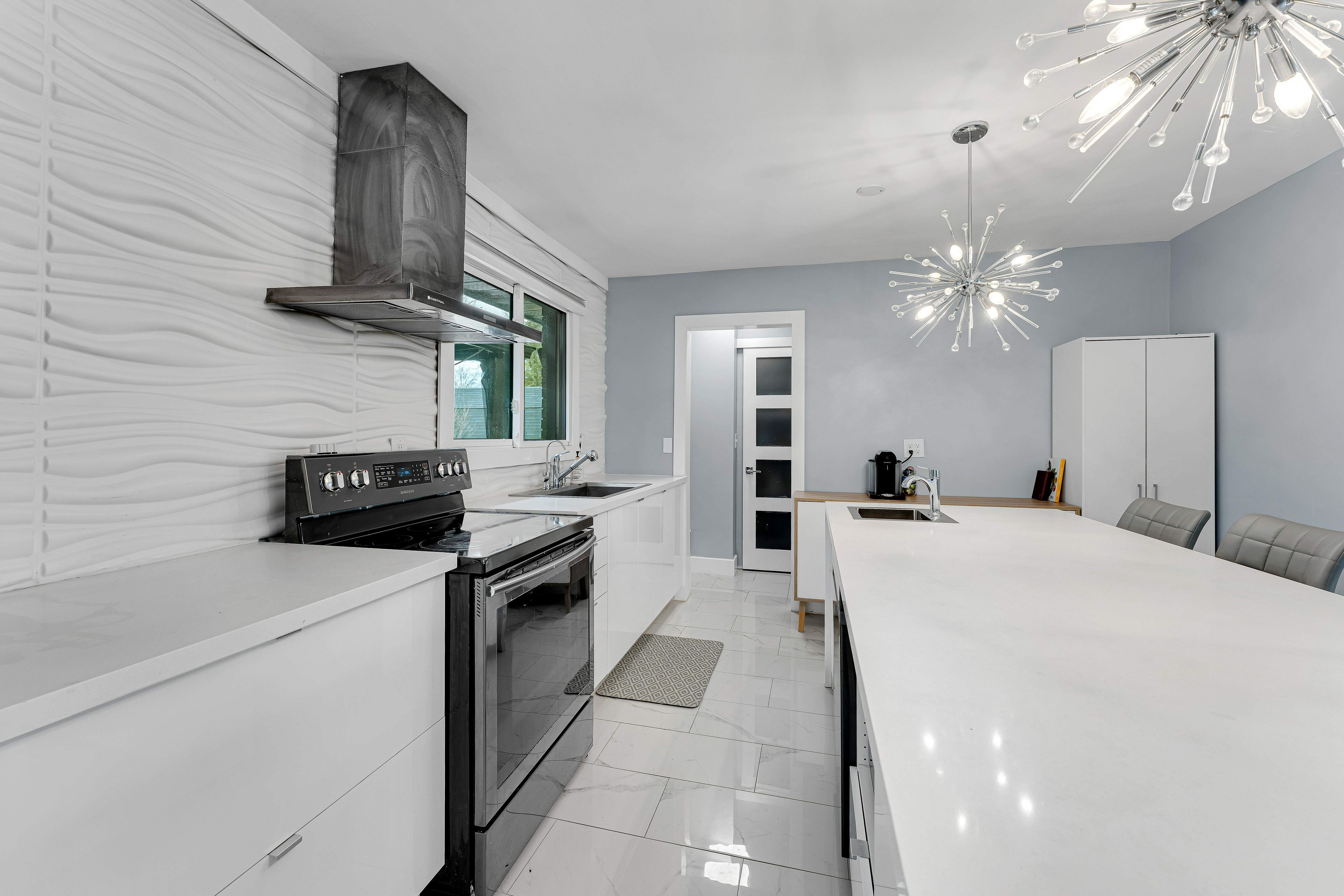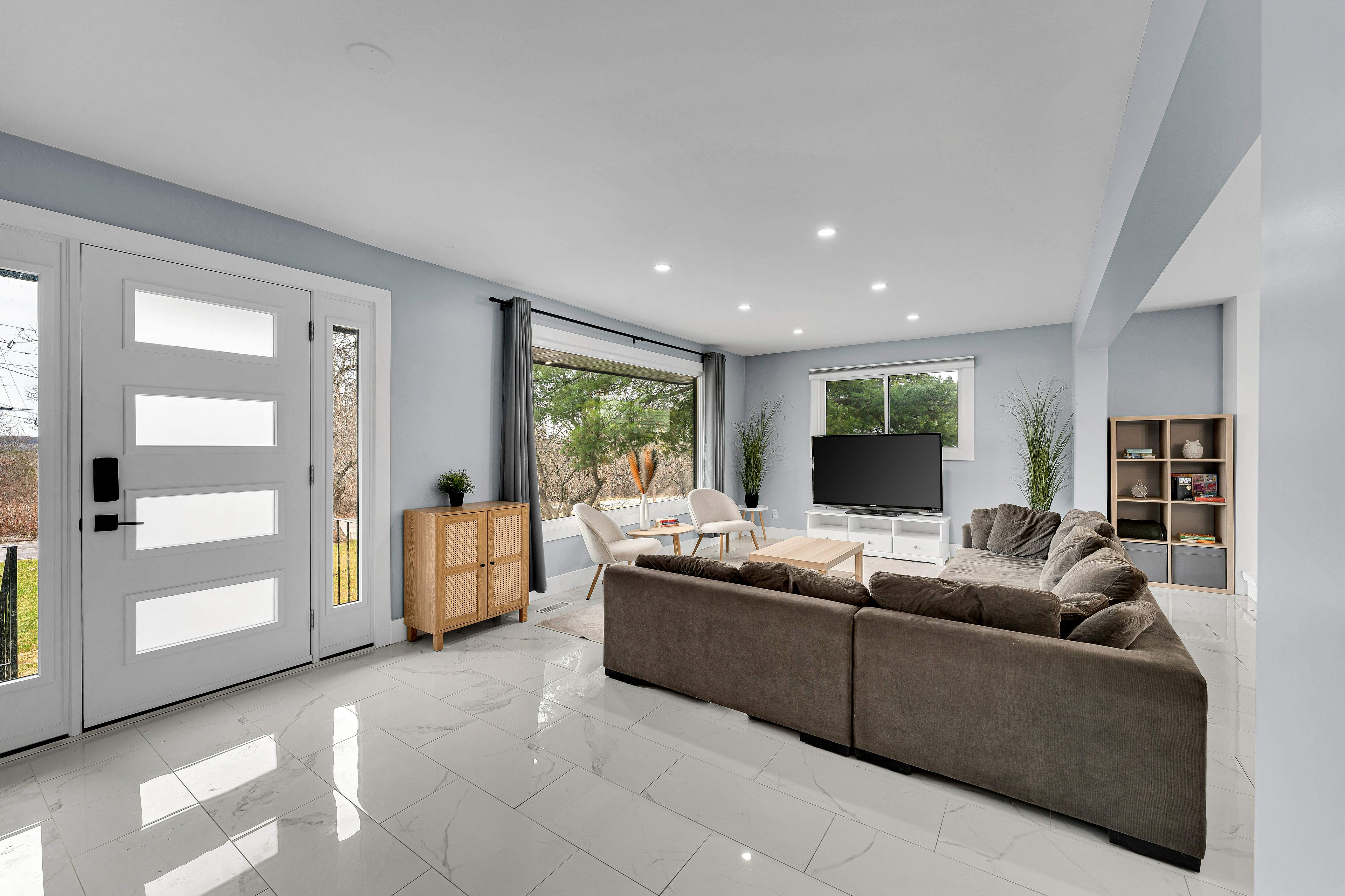 • Bright open-concept main area leading to a sunroom.