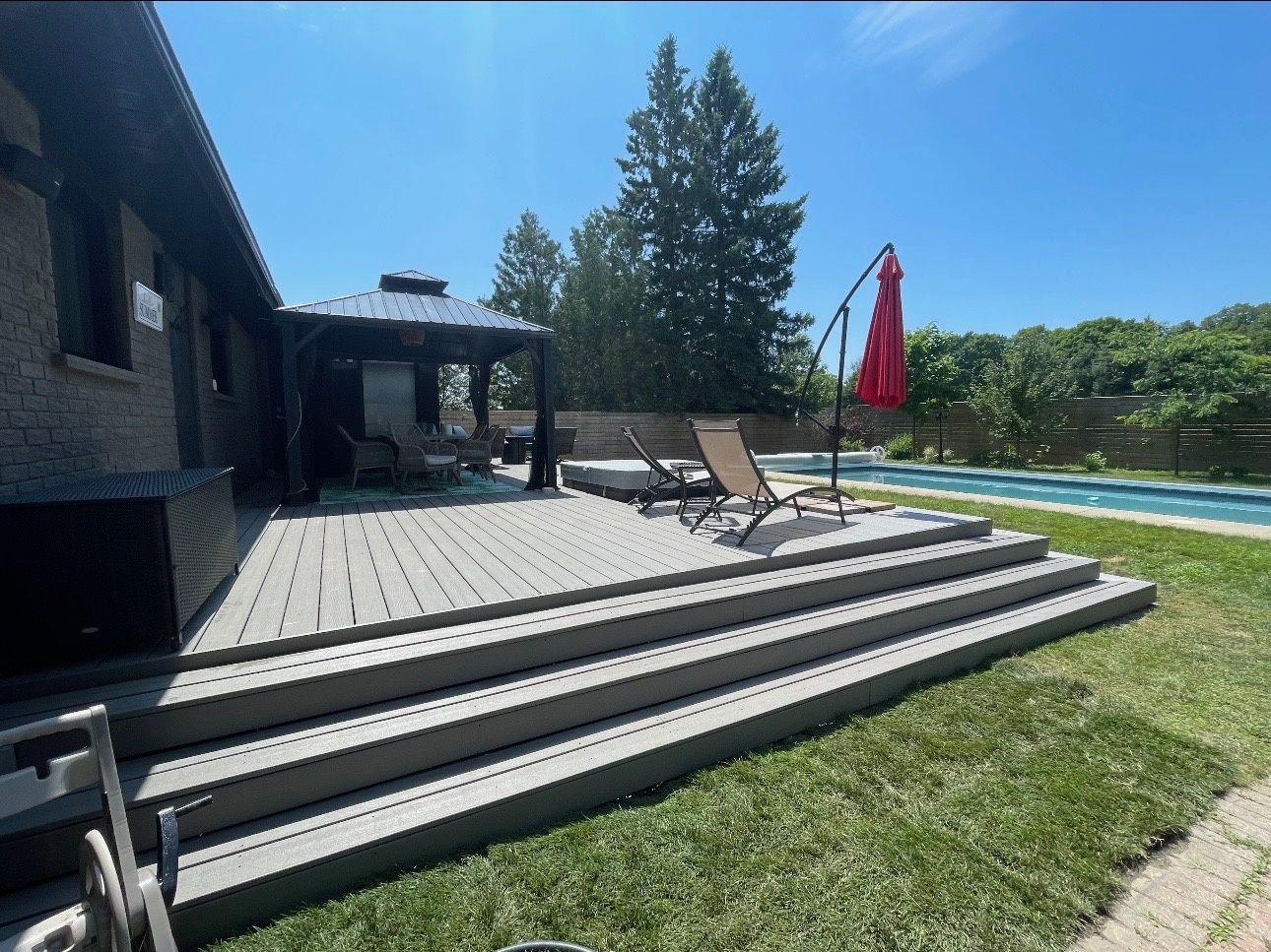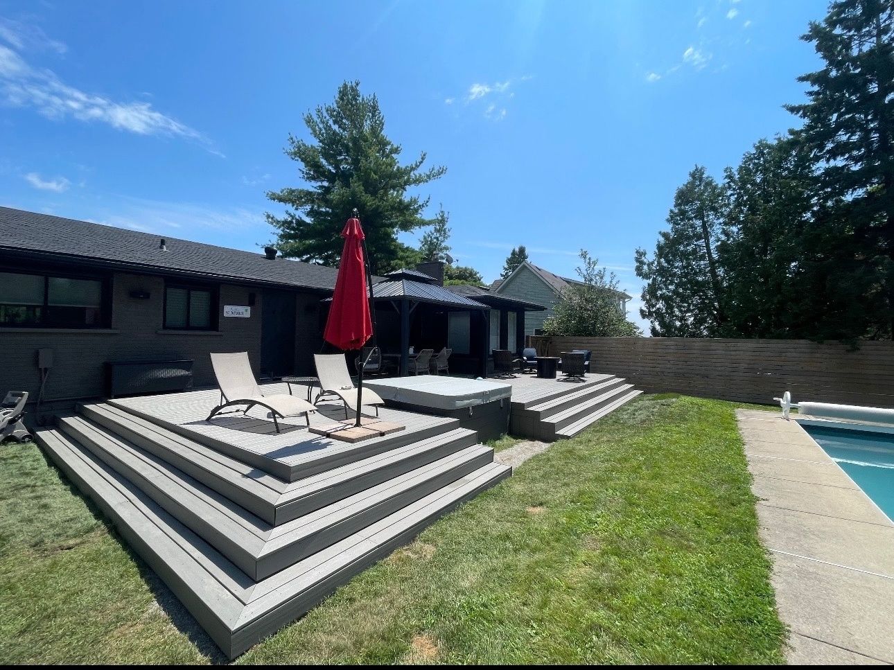 • Private backyard oasis featuring an in-ground pool and hot tub.