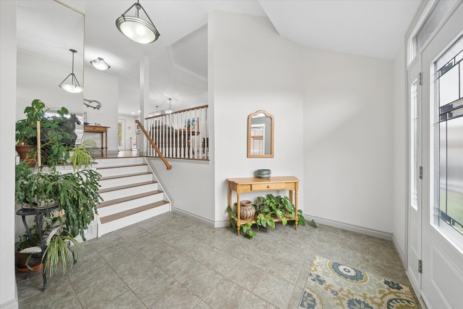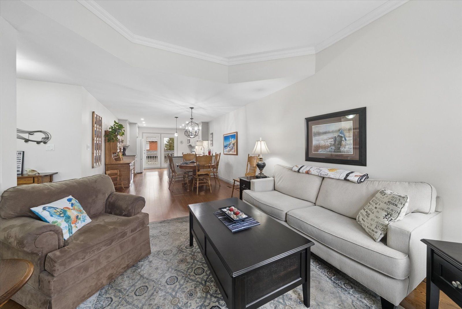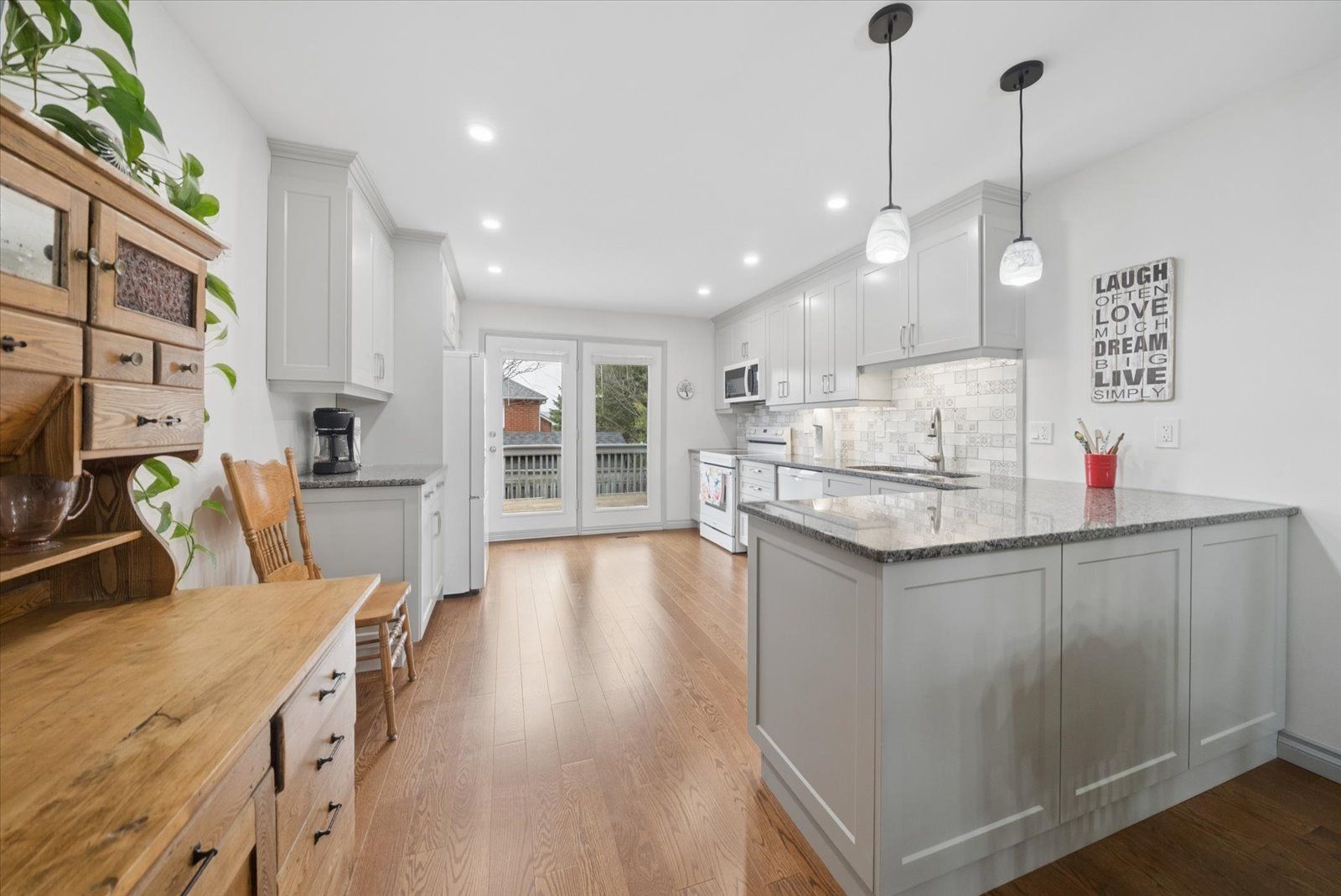 • Bright open-concept main floor with stylish kitchen and stone countertops.