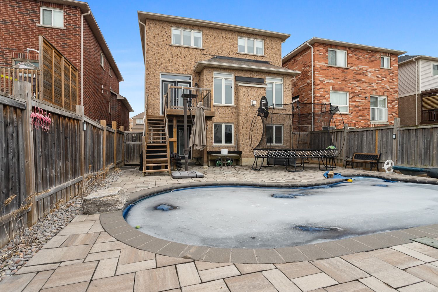 • Private backyard pool oasis perfect for summer gatherings.