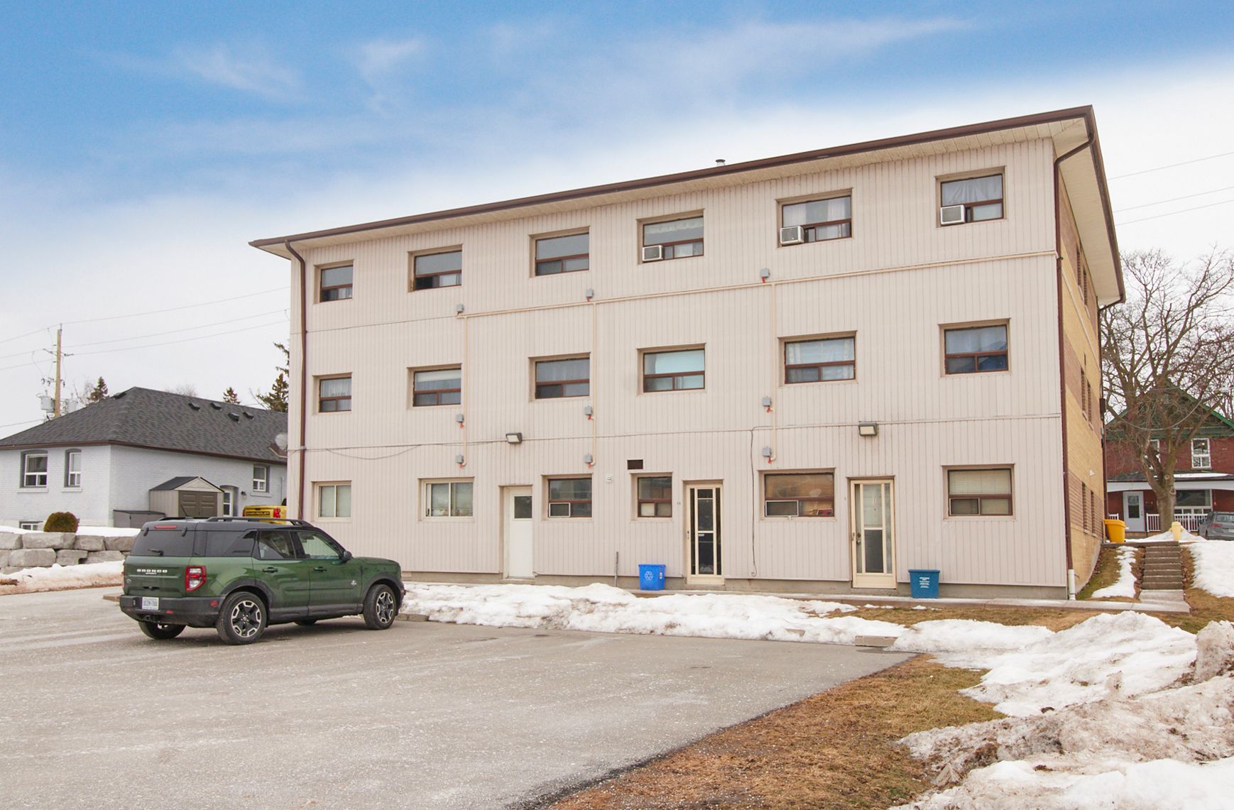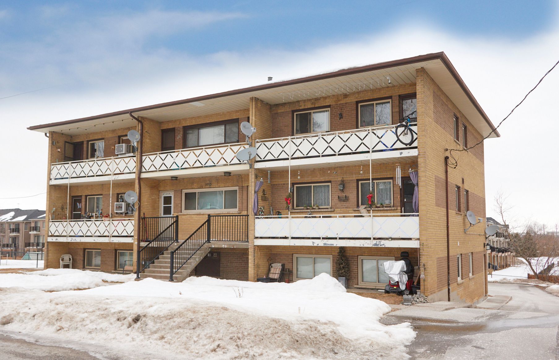 Unlock the potential of a well-located 9-unit multiplex in the heart of port whitby-offering reliable income with future growth appeal. 1613 dufferin street presents a well-positioned walk-up apartment building situated on a generous 90 ft x 150 ft parcel in a neighbourhood experiencing ongoing revitalization and demand. The property features a functional unit mix comprised of four spacious two-bedroom suites and five one-bedroom apartments, catering to a broad tenant base and supporting consistent occupancy. On-site coin-operated laundry is located within the lower-level common area, providing an additional income stream for ownership. Ample private parking adds everyday convenience for tenants, while an additional 7 storage lockers located within the laundry room offer further utility and potential ancillary income. Positioned in an established residential neighbourhood, the property is just minutes to whitby go station, close to lake ontario waterfront & marina, and offers quick access to hwy 401-enhancing its appeal for commuters and long-term tenants alike. Proximity to retail & daily amenities further supports a transit-supportive location, making this asset a strategic addition to any investment portfolio with long-term appreciation potential.