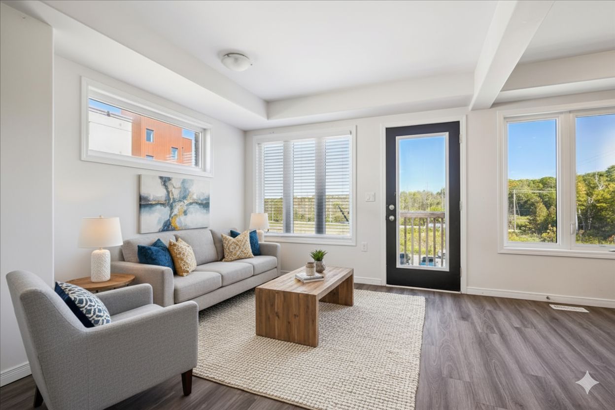 Ome cownno thi stunning end located in one of peterborough most denafamily-friendly communities. This elegant home offers the perfect blend of comfort, style, and convenience. Featuring 3 spacious bedrooms and 3 modern washrooms, it is thoughtfully designed to meet the needs of today's lifestyle. The upstairs laundry adds convenience to daily routines, while the grand living area, filled with an abundance of natural light, creates a warm and inviting atmosphere for gatherings with family and friends. The home sits on a premium ravine lot with no neighbors behind, providing both privacy and serene views. The walk-out basement offers incredible potential with a rough-in washroom, giving you the opportunity to customize and create additional living space tailored to your needs. With its end-unit location, you'll enjoy extra windows, more light, and a greater sense of openness throughout the home. Ideally situated, this property is just minutes away from trent university, public transportation, shopping, dining, and all major amenities, making it an excellent choice for families, professionals, or even investors looking for a prime location. Combining elegance, practicality, and a desirable setting, this home truly has it all. Don't miss your chance to own this beautiful and well-appointed townhouse in one of peterborough's most sought-after neighborhoods!