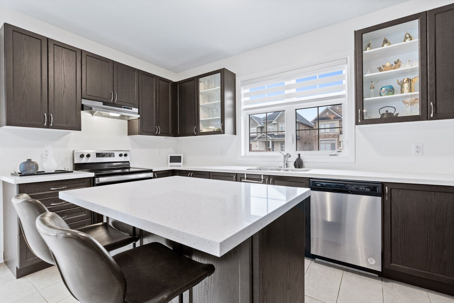 • Upgraded kitchen features custom cabinetry and granite countertops.