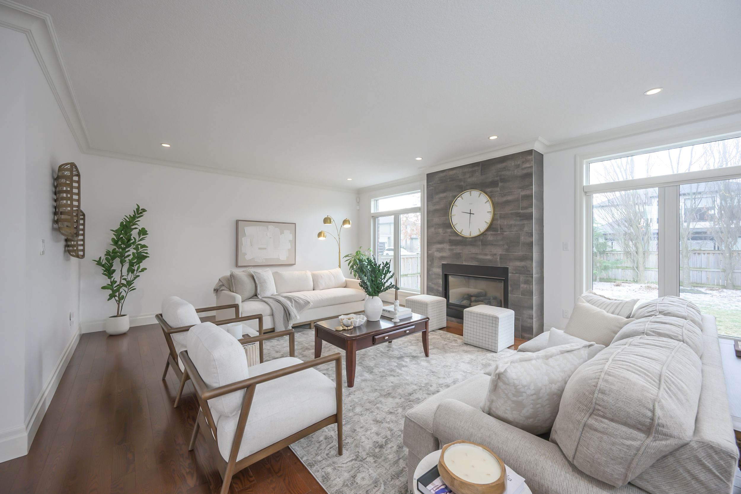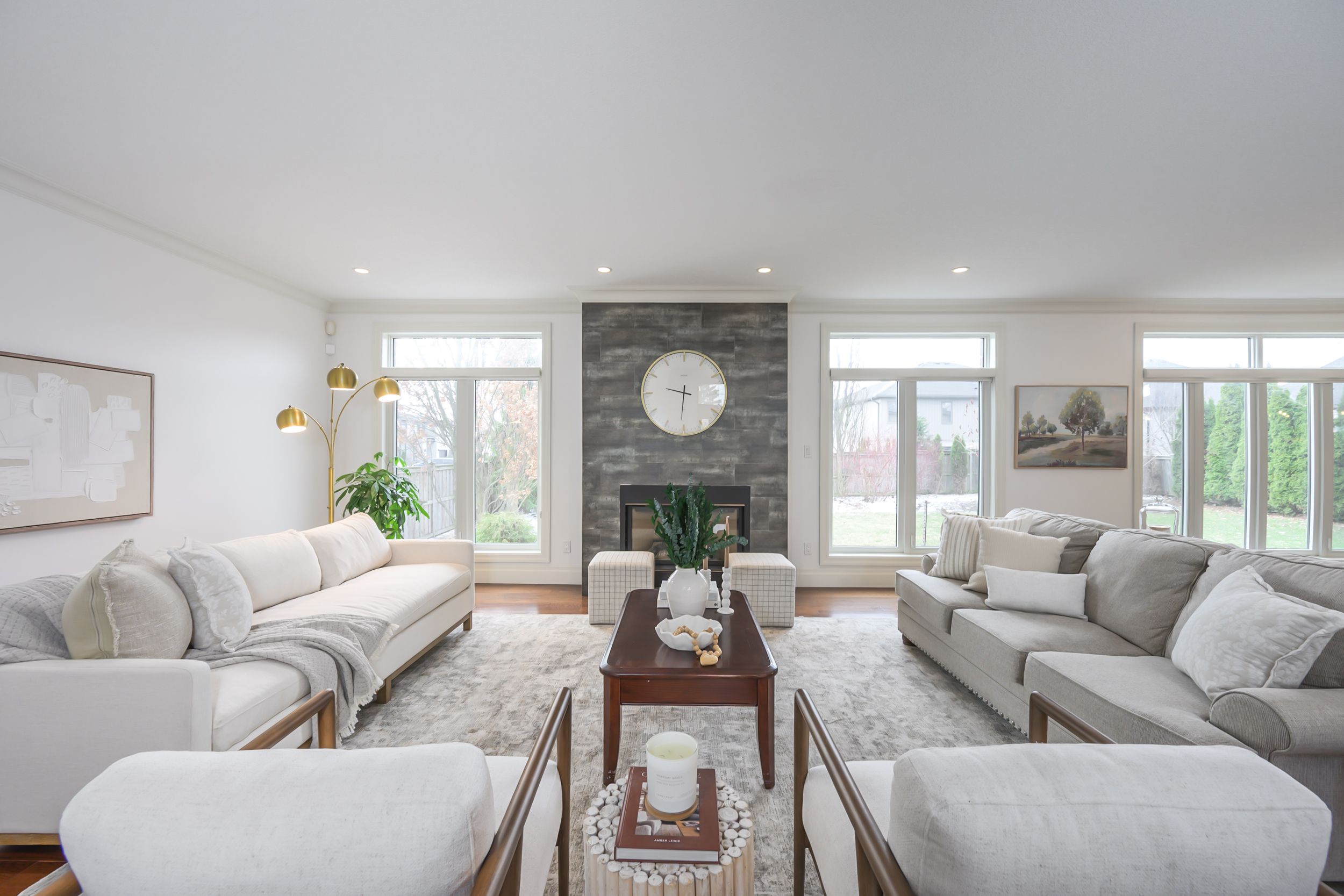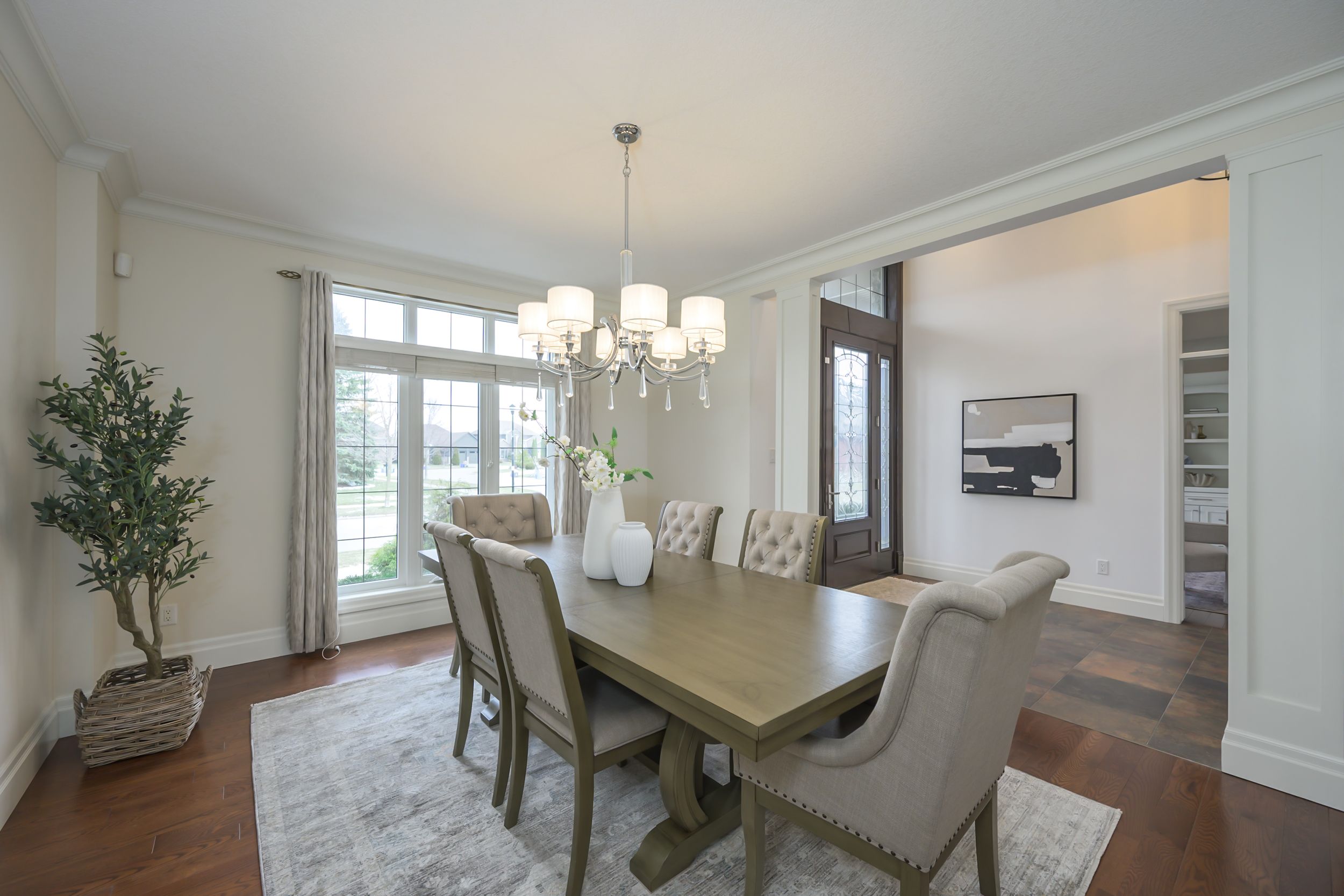 A rare combination of scale, presence, and setting begins at the covered front porch, where substantial columns, stonework, and a stately entry create an immediate sense of arrival. A triple car garage and wide driveway reinforce the home's presence from the street. Inside, the two-storey foyer rises with natural light, framed by an arched opening and statement lighting-introducing the volume and architectural detail that define this home. The main level is anchored by expansive principal rooms that feel both open and intentional. Rich hardwood, substantial crown moulding, and custom millwork carry throughout, while a wall of windows across the back of the home draws in natural light and connects seamlessly to the outdoor living space. The living area is centred around a fireplace, with clear sightlines into the kitchen and dining spaces-designed for both everyday function and larger gatherings. The kitchen delivers on both presence and practicality, with extensive cabinetry, a large centre island with prep sink, gas range, and a walk-in pantry. A wet bar/servery enhances flow to the dining area. A private office is located off the foyer, along with convenient main floor laundry. Garden doors lead to a covered patio with an integrated wood-burning fireplace-an outdoor space that feels private and purposeful. Upstairs, a wide landing overlooks the foyer below. Four well-proportioned bedrooms include a primary suite with space to unwind, complemented by an ensuite with soaker tub, glass shower, double vanity, and skylight. The fully finished lower level adds flexibility with a large media/games room, fireplace, bedroom, full bath, and workshop.. A separate staircase from the garage supports multi-generational or private use. A fully fenced, pool-sized yard and wide corner lot offer added frontage, privacy, and a more open streetscape, set in wickerson heights at the edge of byron village. Nearby trails, thames river, west 5, riverbend golf & hunt club golf.