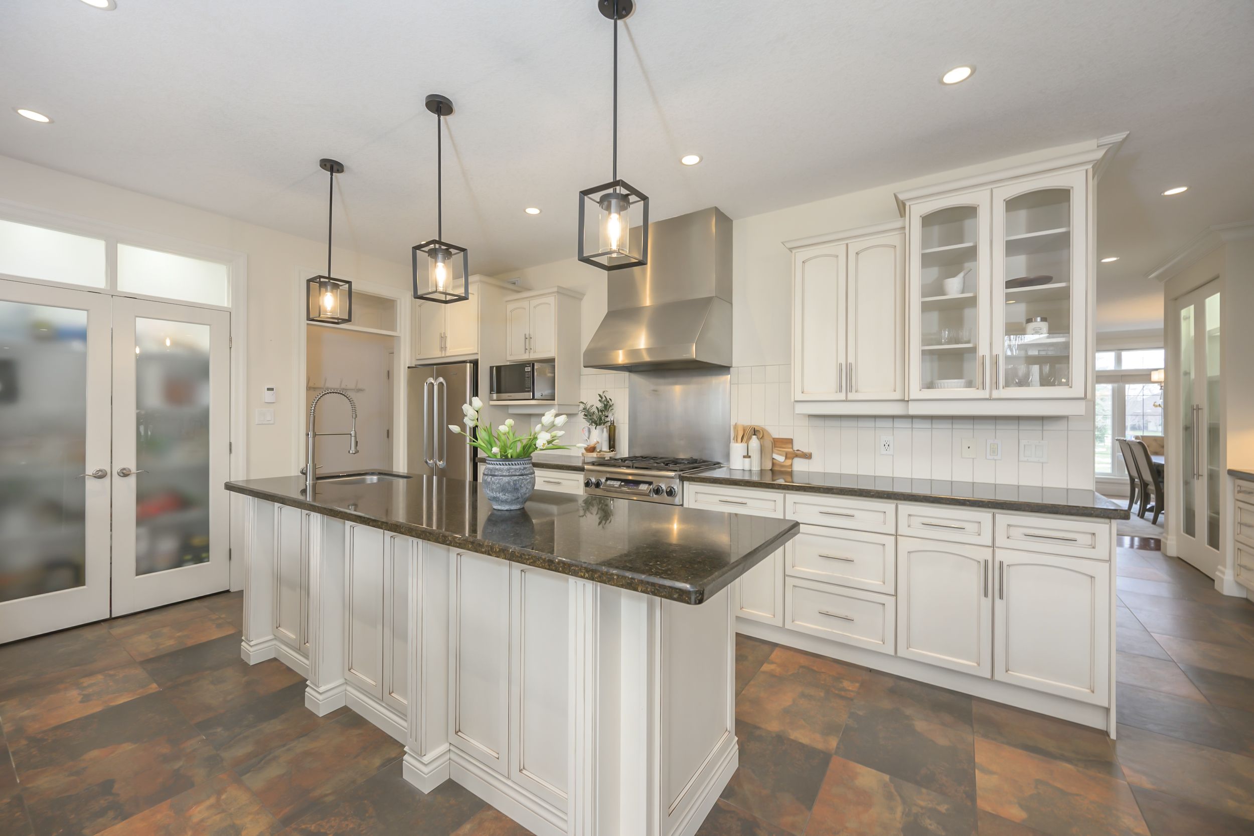 • Three-car garage and wide driveway enhance curb appeal and convenience.