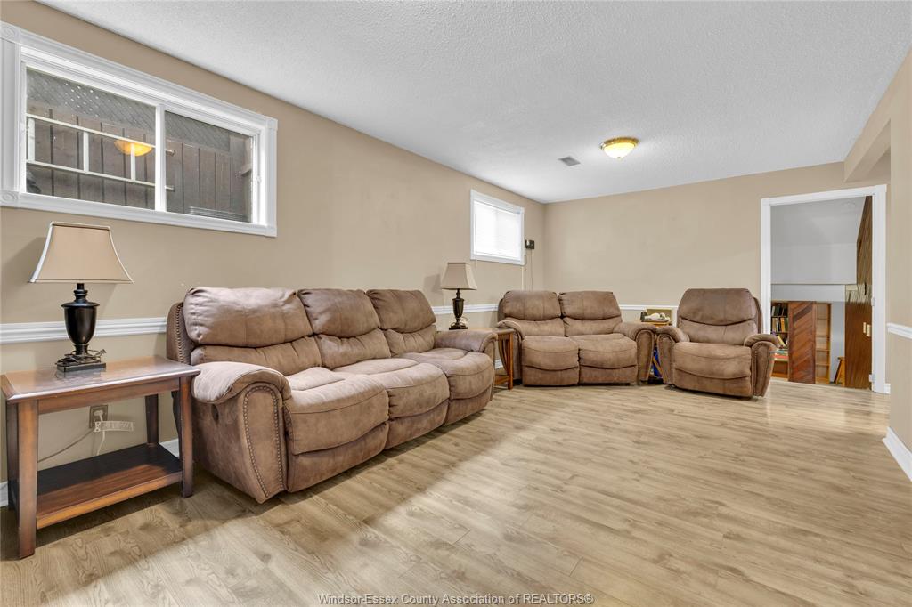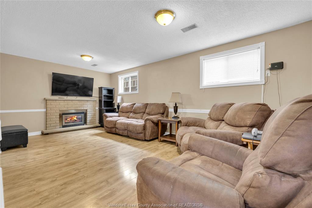 • Comfortable lower-level family room equipped with a gas fireplace.