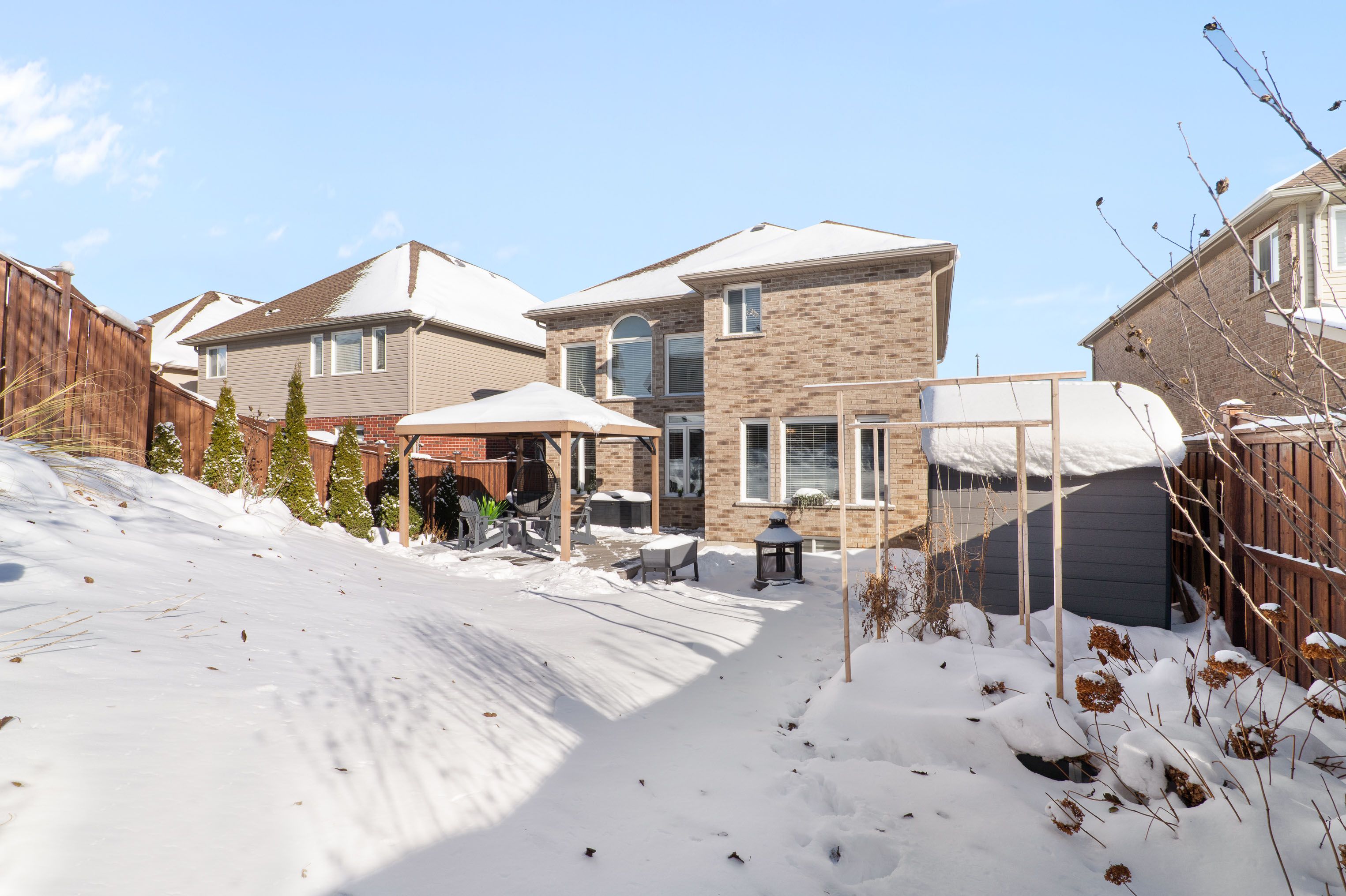 This carpet-free 3-bedroom, 3. 5-bathroom home offers three finished levels and a private backyard. Check out the top 7 reasons why this home could be the one for you: #7: curb appeal: with an interlock natural stone driveway, an all-brick exterior, & a double-car garage with an ev charger rough-in, this home delivers a warm first impression. This quiet, walkable neighbourhood is perfect. #6: carpet-free main floor: the bright main level features hardwood & tile flooring, expansive windows & an impressive great room with 17-ft ceilings. You're also treated to convenient laundry & a powder room, while the office space adds a functional touch. #5: kitchen & dining: the bright, spacious eat-in kitchen features stainless steel appliances, ample cabinetry, a 5-seater island with a breakfast bar, & an excellent dinette with direct access to the peaceful backyard. #4: private backyard: enjoy a fully fenced outdoor space with room to relax. With a composite deck, gazebo, & storage shed already in place, it's turn-key & ready for the summer. With southwestern exposure, you'll enjoy tons of natural light in the afternoon and evening. #3: bedrooms & bathrooms: upstairs, there are beautiful hardwood floors, and three generous bedrooms, including a bright primary suite with a walk-in closet with built-ins, and its own 5-piece ensuite with dual sinks, a soaker tub, and a glass-enclosed shower. #2: finished basement: the bright and spacious finished basement provides additional living, working, or relaxing space. The large rec room features plenty of windows, cove lighting, and a bright four-piece bathroom with dual showerheads, plus ample storage. This level offers flexibility to suit your lifestyle. #1: huron south location: this home sits in one of kitchener's most in-demand family neighbourhoods - steps to parks, community centres, schools, and minutes to the brand new rbj schlegel park, longos, starbucks, shoppers, and scotiabank. Plus, you're only minutes from highway 401.