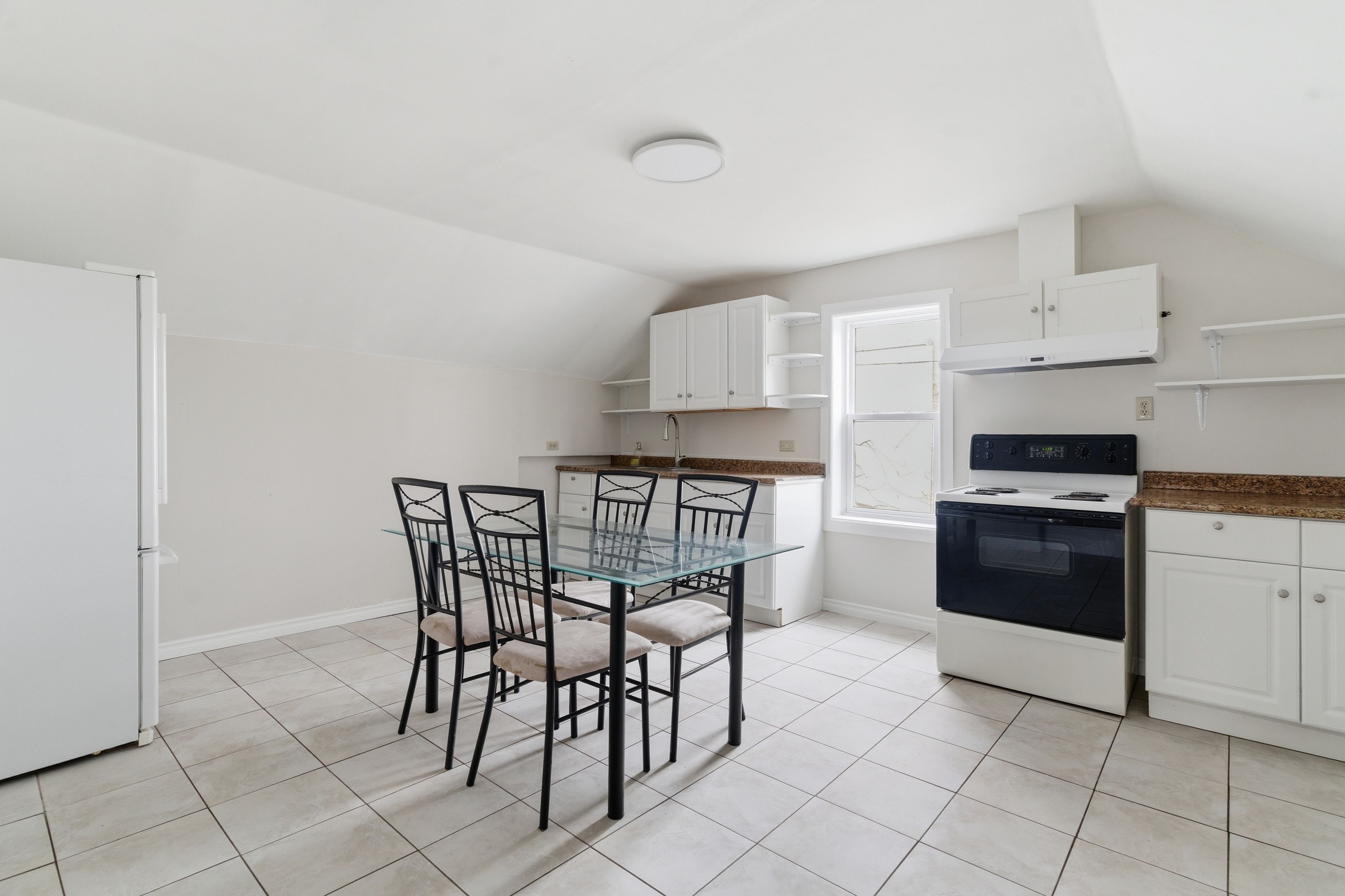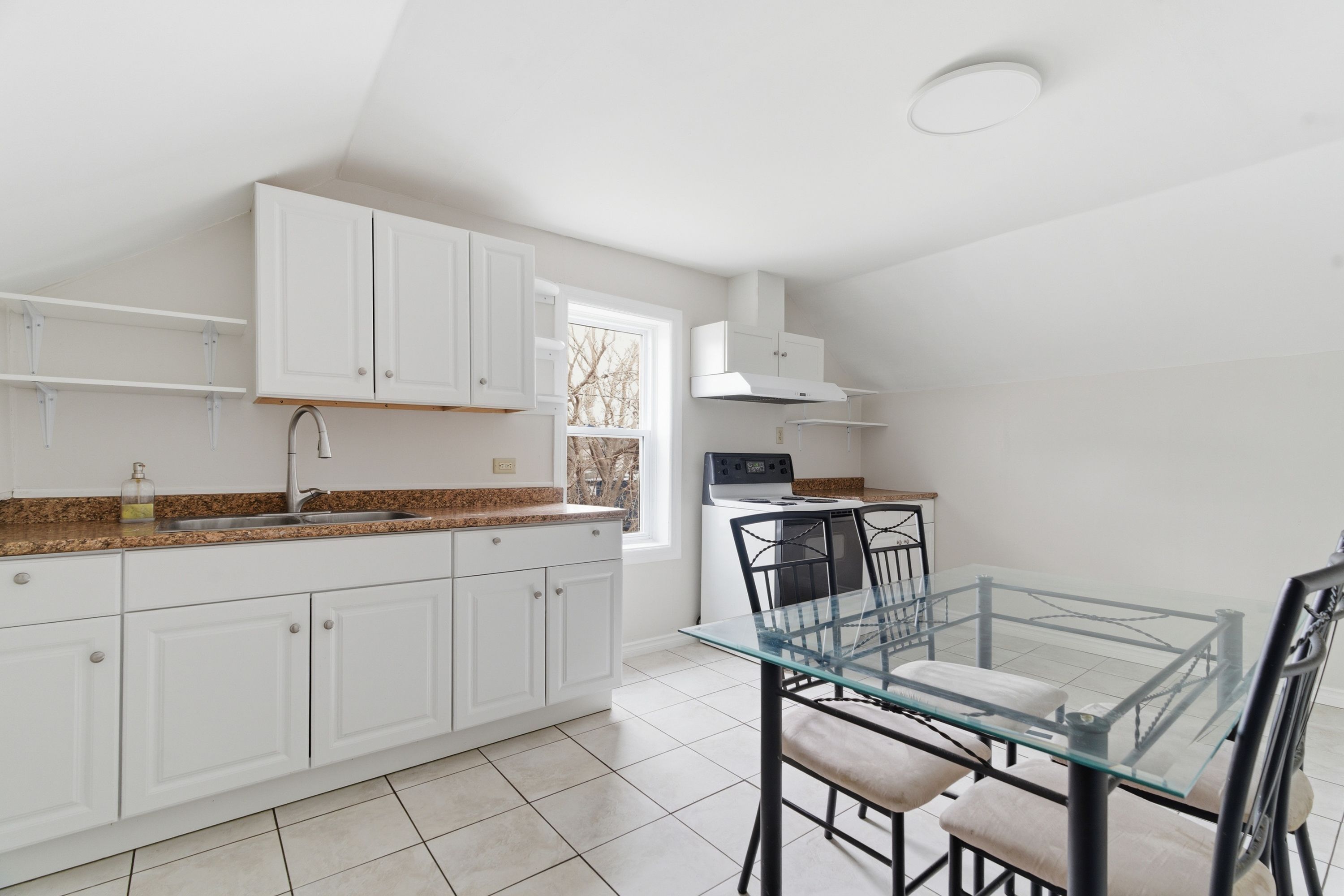 • Bright upper-level unit with high ceilings and oversized windows.