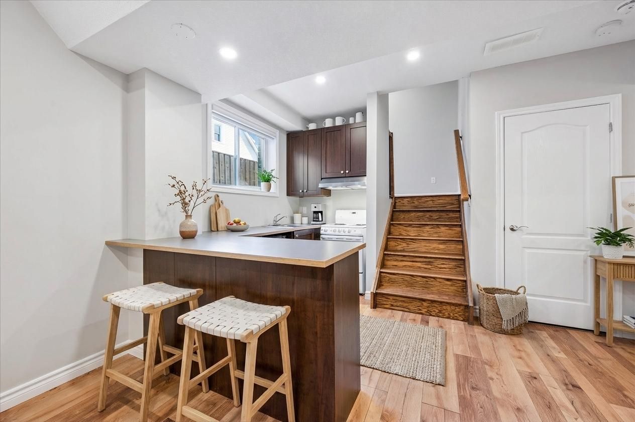 Open house sunday march 8th 2-4pm. Welcome to old westmount - where timeless character meets modern construction. Built in 2016, this beautifully finished home offers style, space, & flexibility in one of old westmount's most sought-after neighbourhoods. The main residence is thoughtfully designed for comfortable everyday living & effortless entertaining. Fresh blonde hardwood flooring carries throughout the main floor, complementing a crisp, contemporary kitchen complete with white shaker cabinetry, quartz countertops, subway backsplash and generous prep space. The spacious dining area flows seamlessly into an oversized living room, creating an inviting setting for gatherings both large and small. Sliding doors lead to a deck and fully fenced backyard. Upstairs, two well-proportioned secondary bedrooms offer flexibility for family, guests, or home office use, including one with a charming juliet balcony. A unique optional butler staircase adds character and functionality. The private primary retreat occupies its own level - a true escape - featuring double closets & a 4-piece ensuite bath. The lower level features a separate, self-contained one-bedroom inlaw suite with large windows and impressive ceiling height, creating a bright and welcoming space that feels open rather than typical of a basement. And then there's the lifestyle. Step outside and enjoy the exceptional walkability that defines old westmount. You're just minutes from the shops, restaurants, cafés, and vibrant energy of uptown waterloo, along with the charm and local favourites of belmont village. Grab your morning coffee, meet friends for dinner, or browse boutique shops - all without starting the car. The nearby ion light rail transit makes commuting across the region simple, while access to scenic trails invites evening strolls, bike rides, and weekend walks as part of daily life. Modern build. Income potential. Walkable, connected location. This is the one that checks every box.