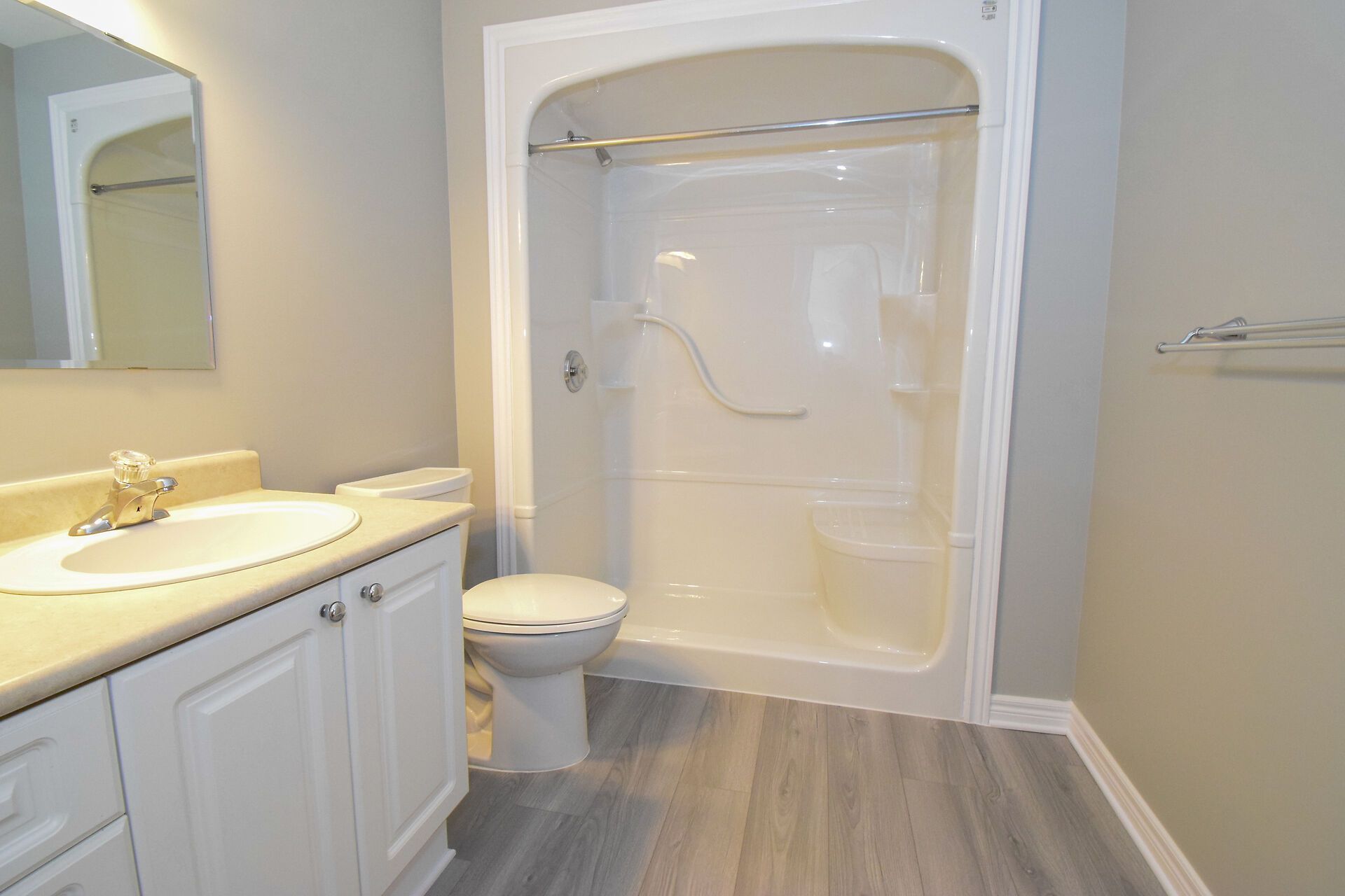 • Hardwood and laminate floors throughout for easy maintenance.