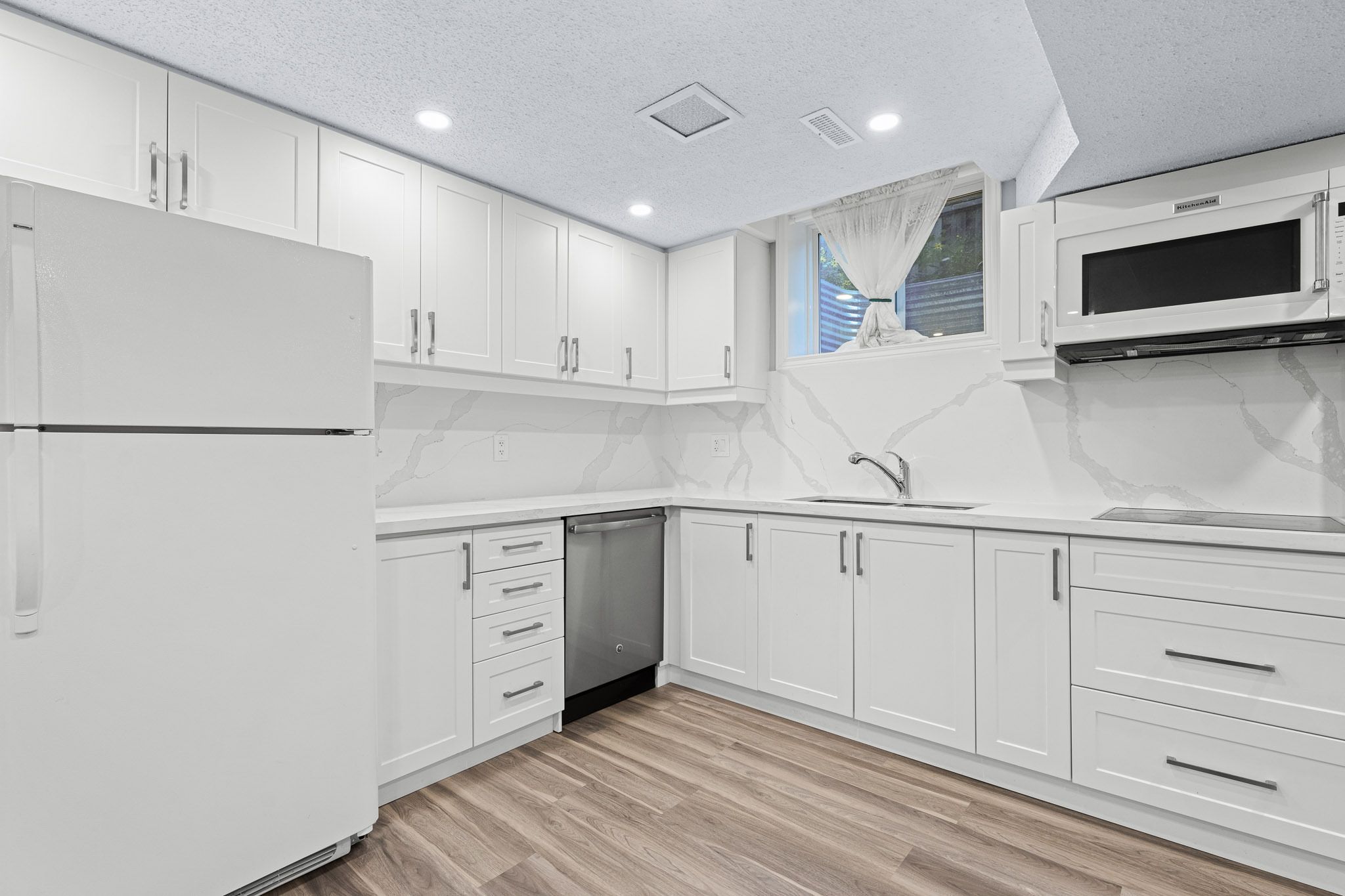 • Modern kitchen with quartz counters, ample cabinetry, and great appliances.