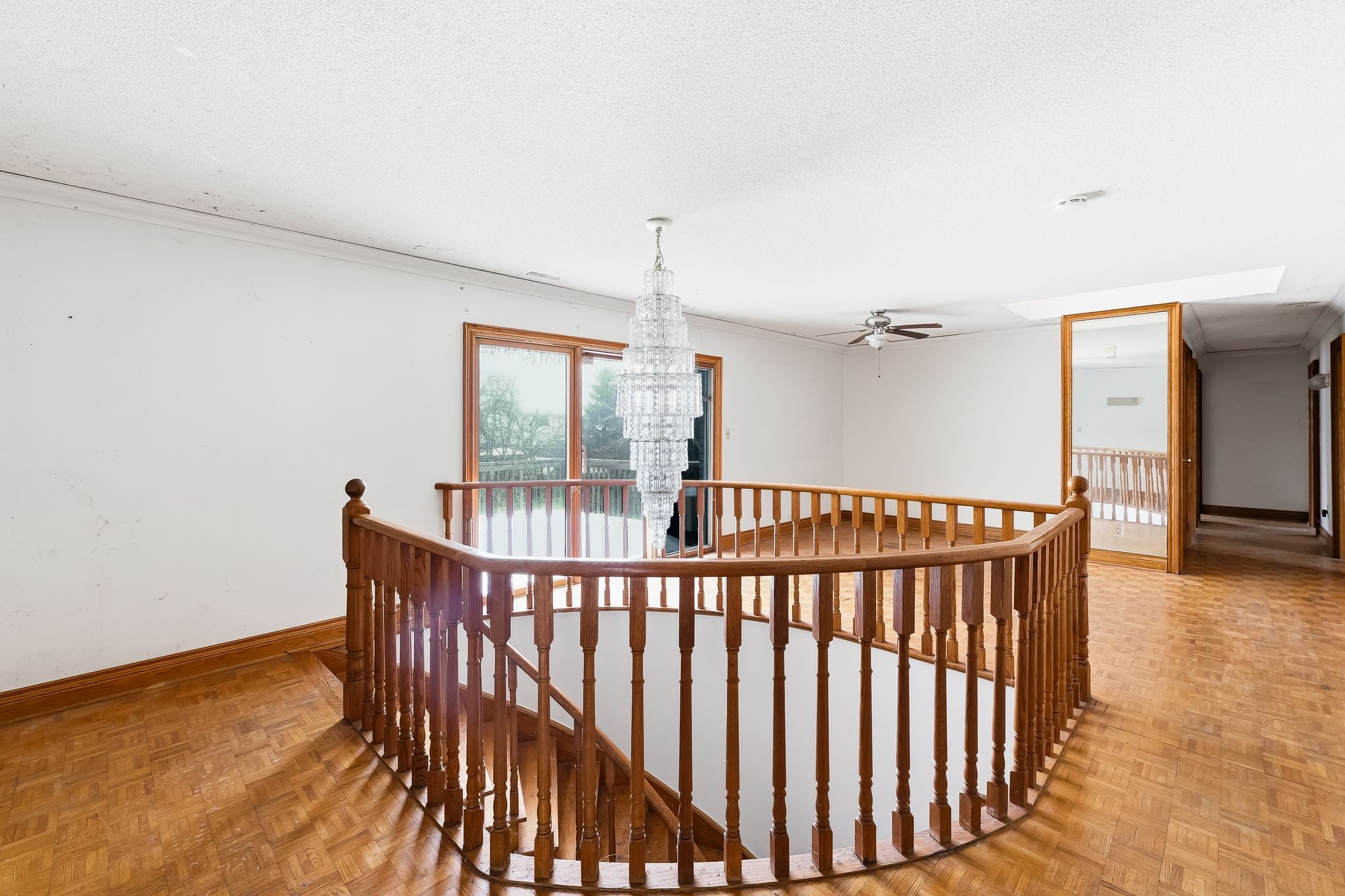 A rare opportunity in whitby offering scale, privacy and future potential. Set on a 0. 61 acre lot, with 2 pin numbers, with a frontage of 109 ft, 277 ft at its deepest depth, and 145 ft across the rear of this l-shaped property. Both the depth and width are almost never found in this neighbourhood. The existing full brick two-storey home spans close to 5,000 sq ft above grade with a triple car garage, circular driveway and an expansive backyard that feels more like a private park than a subdivision lot. Mature trees line the perimeter, creating natural separation while preserving a wide open lawn area ideal for recreation or future planning. Inside, the home offers a grand curved staircase, oversized principal rooms, six bedrooms, six bathrooms and the finished basement offers additional space, a bar and another fireplace - included in as is condition. The scale is there. The structure is there. The canvas is ready for transformation. For buyers thinking bigger, the lot configuration opens the door to multiple possibilities, subject to due diligence and municipal approvals. Explore the potential for a severance along the angled frontage. Consider a detached garden suite or private nanny residence tucked toward the rear. Reimagine the existing footprint into a luxury estate with resort style grounds. Or hold and improve, leveraging the rarity of over a half acre in a mature pocket of whitby. Properties with this kind of land, frontage and flexibility do not come up often. Whether you are a builder, investor or end user with vision, this is a chance to create something exceptional. Ideally located close to the 401/412, go train, schools, durham college, shopping, dining, activity centre, lake ontario and place of worship.