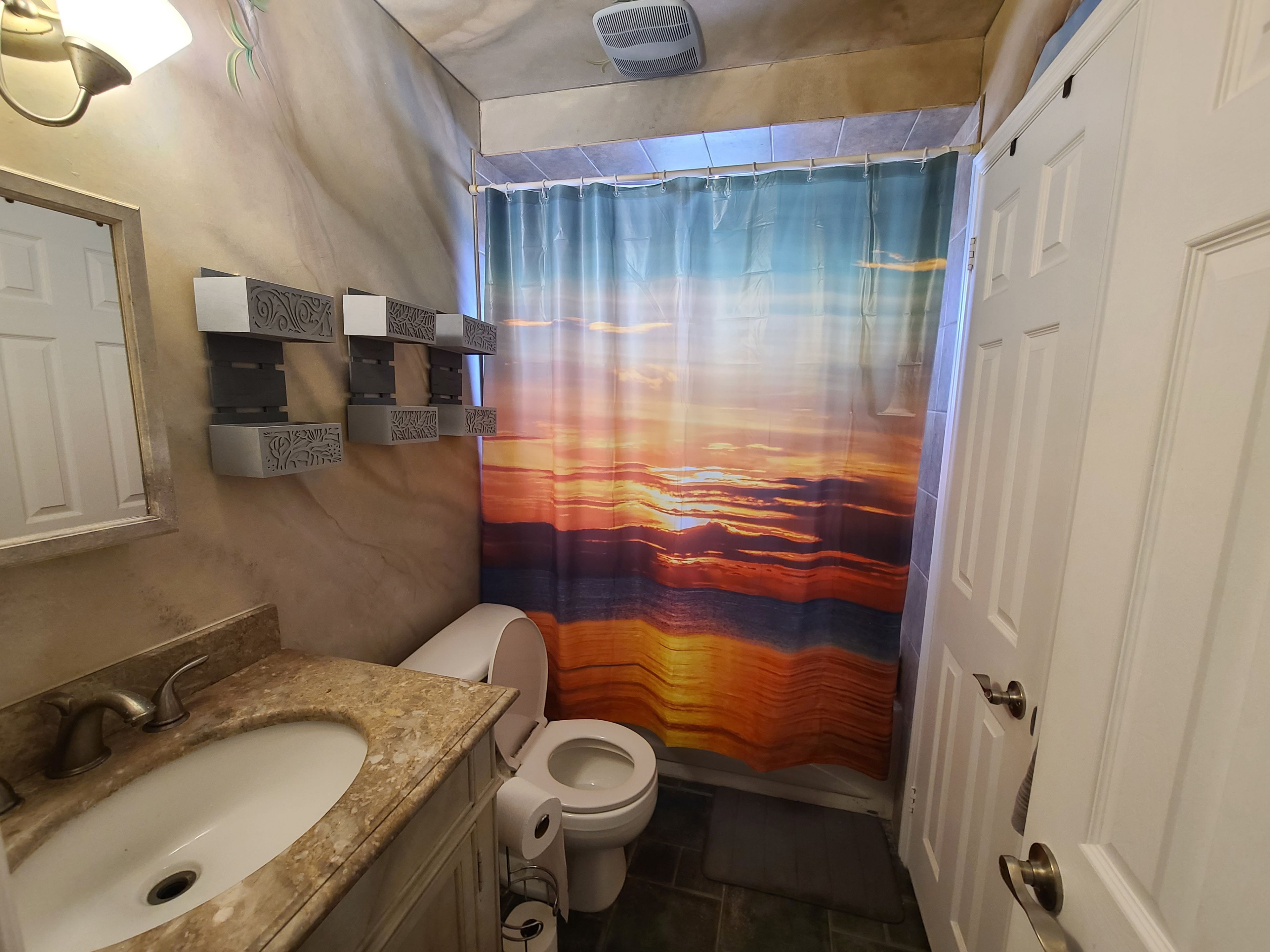 • Unique Venetian plaster and hand-sculpted walls add character and warmth.