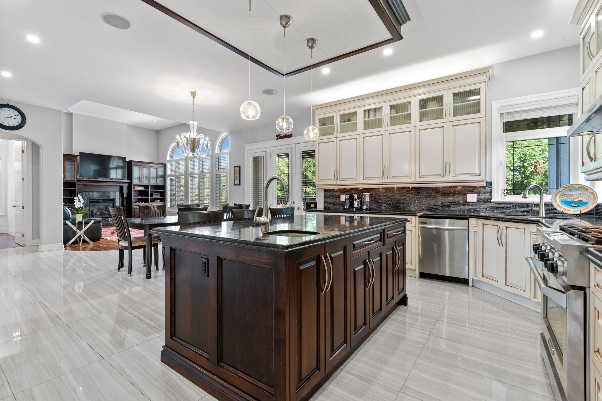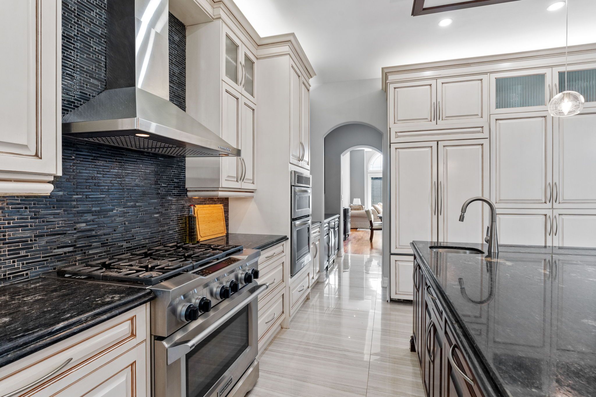 • Gourmet kitchen with custom cabinets and ample storage for cooking enthusiasts.