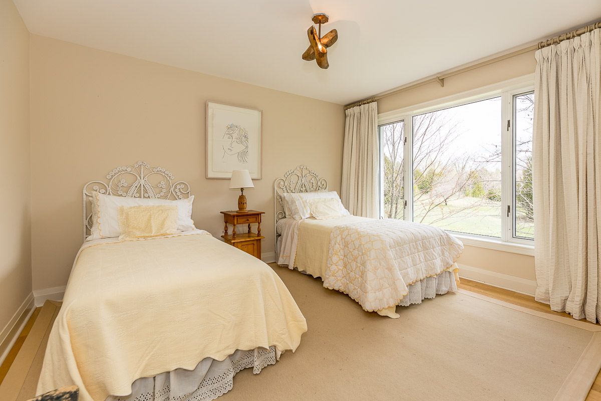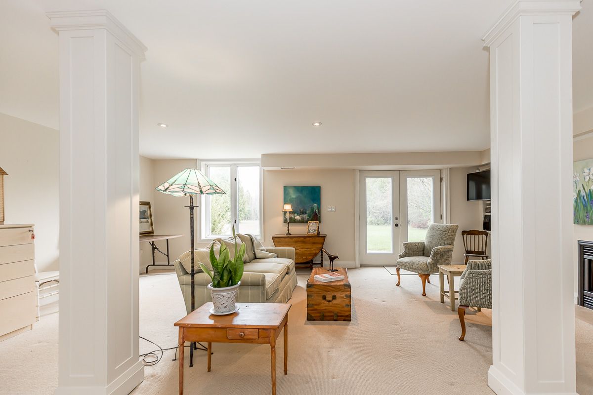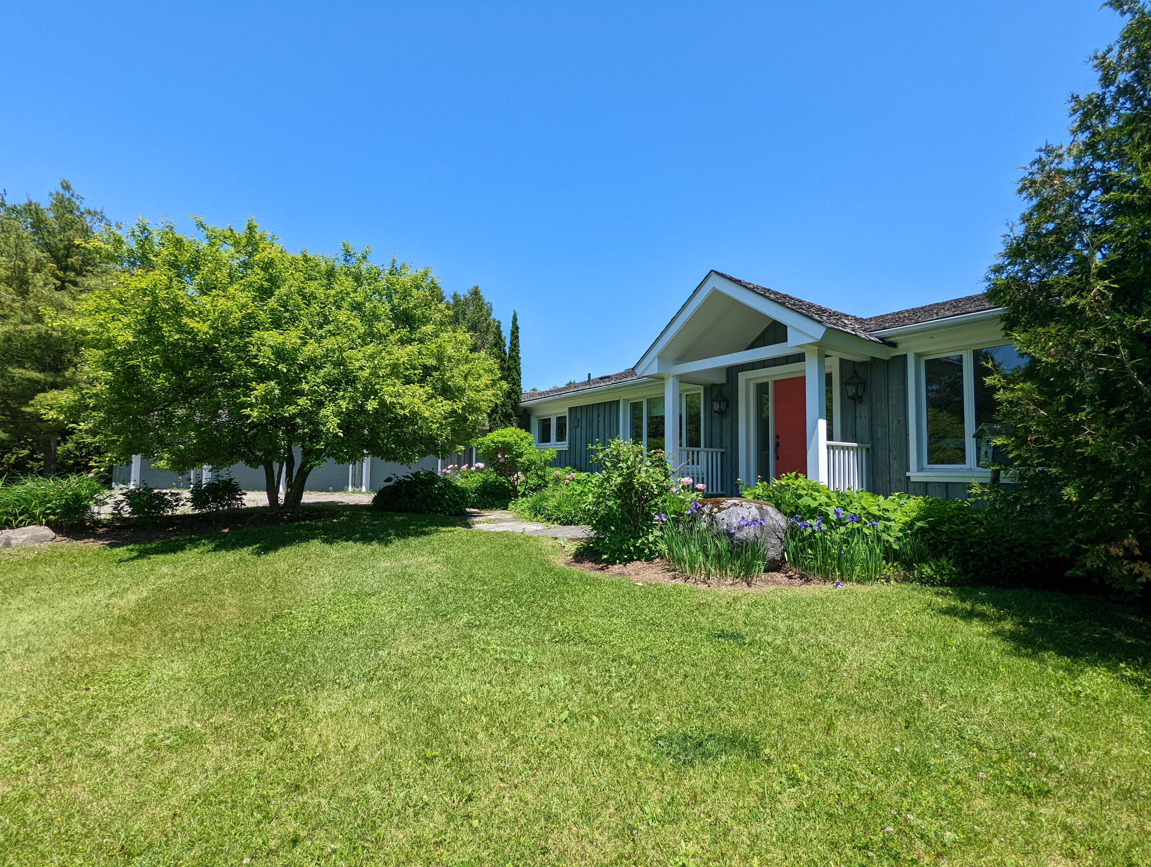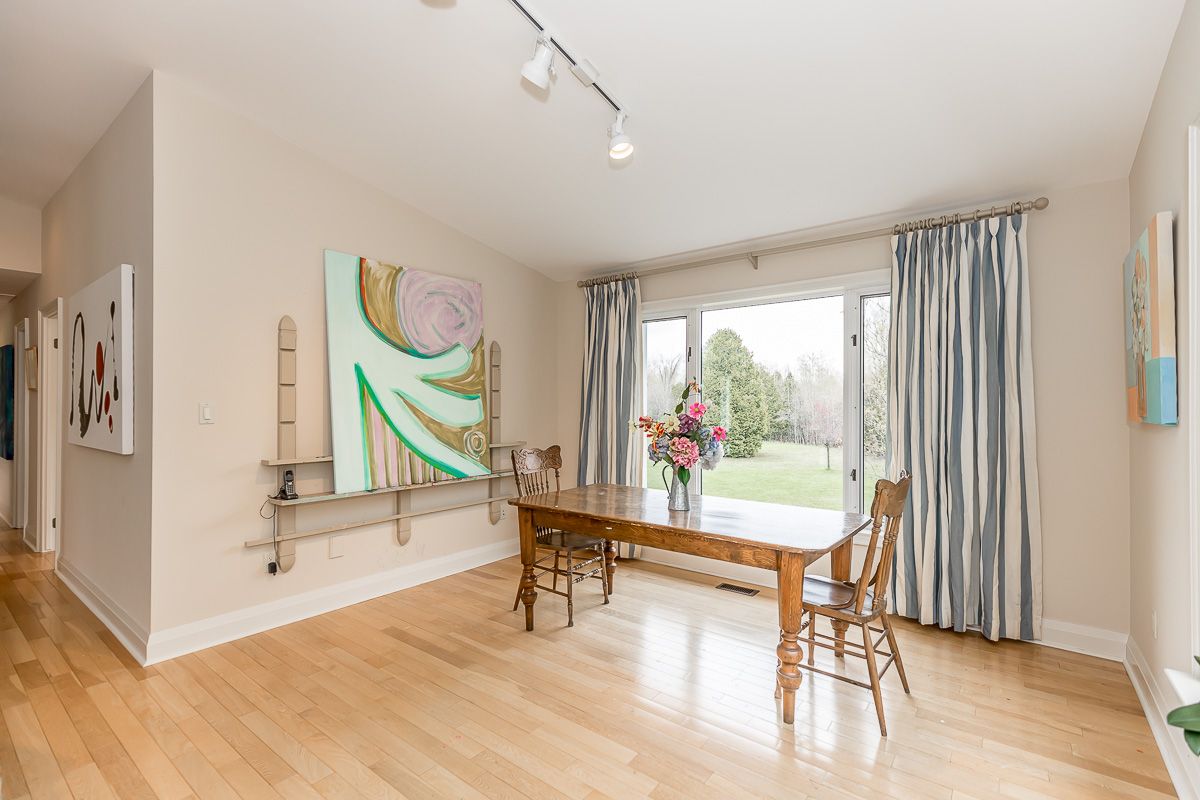 This bright sun-filled bungalow offers the perfect balance of comfort, charm, and quiet privacy! Set on 3. 76 acres of peaceful countryside, with beautiful vaulted ceilings and an open-concept layout, the main floor feels spacious and inviting, ideal for everyday living and family gatherings. The living room features a cozy wood-burning fireplace and expansive windows with lovely views of the property. A spacious kitchen with a dedicated eating area provides plenty of room to create your dream culinary space. Step out to a private, covered deck, a quiet spot to enjoy morning coffee or an evening breeze. The mudroom with built-in hooks and cupboards for easy organization connects the home to an attached 4-car garage. Downstairs, the fully finished lower level offers a large family room with a gas fireplace, built-in entertainment unit, and walk-out access to a level lawn surrounded by trees perfect for kids, pets, or simply enjoying the outdoors. Well-maintained and full of potential, this is a wonderful opportunity to create your ideal family home in a peaceful, private setting.