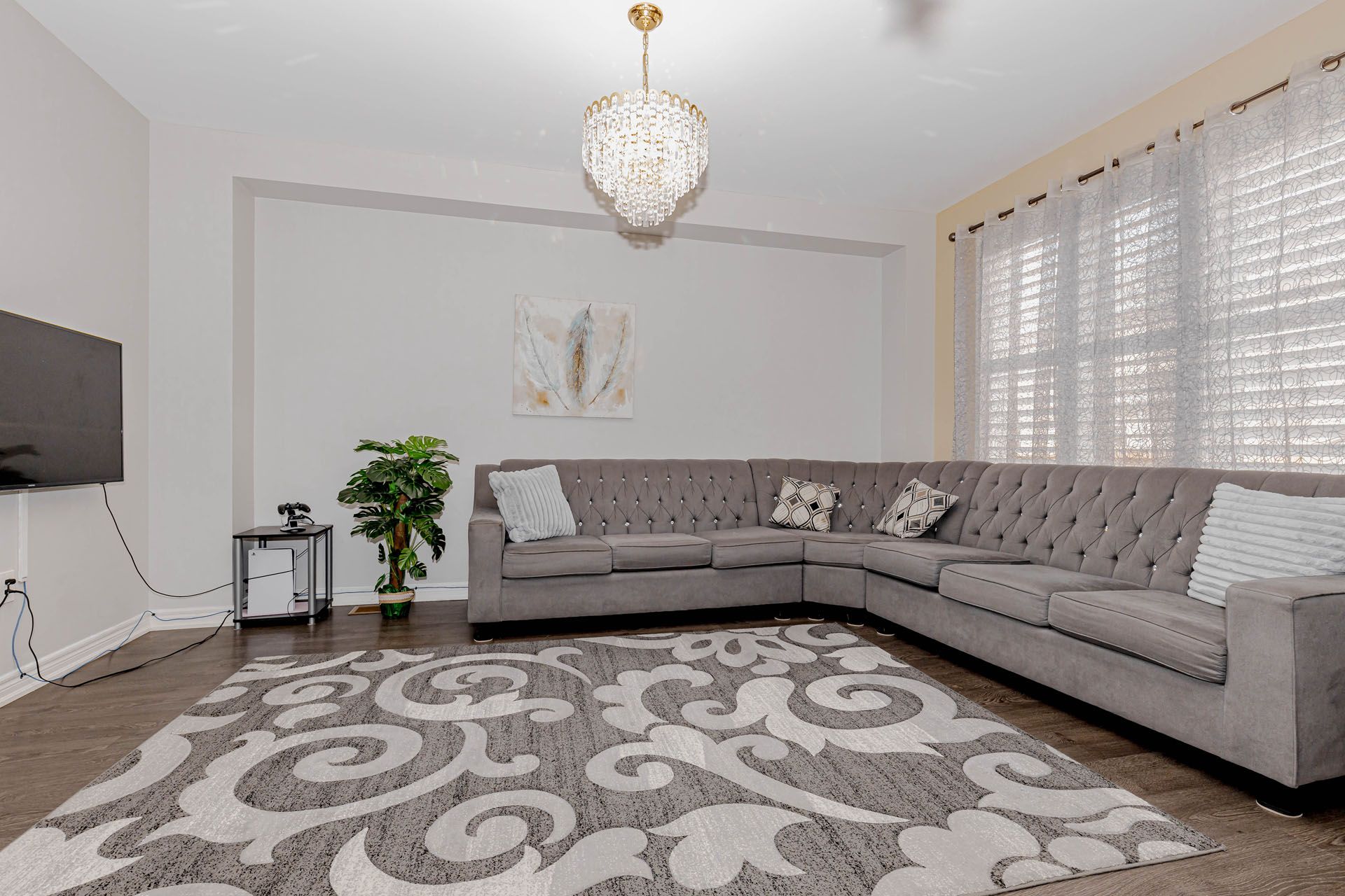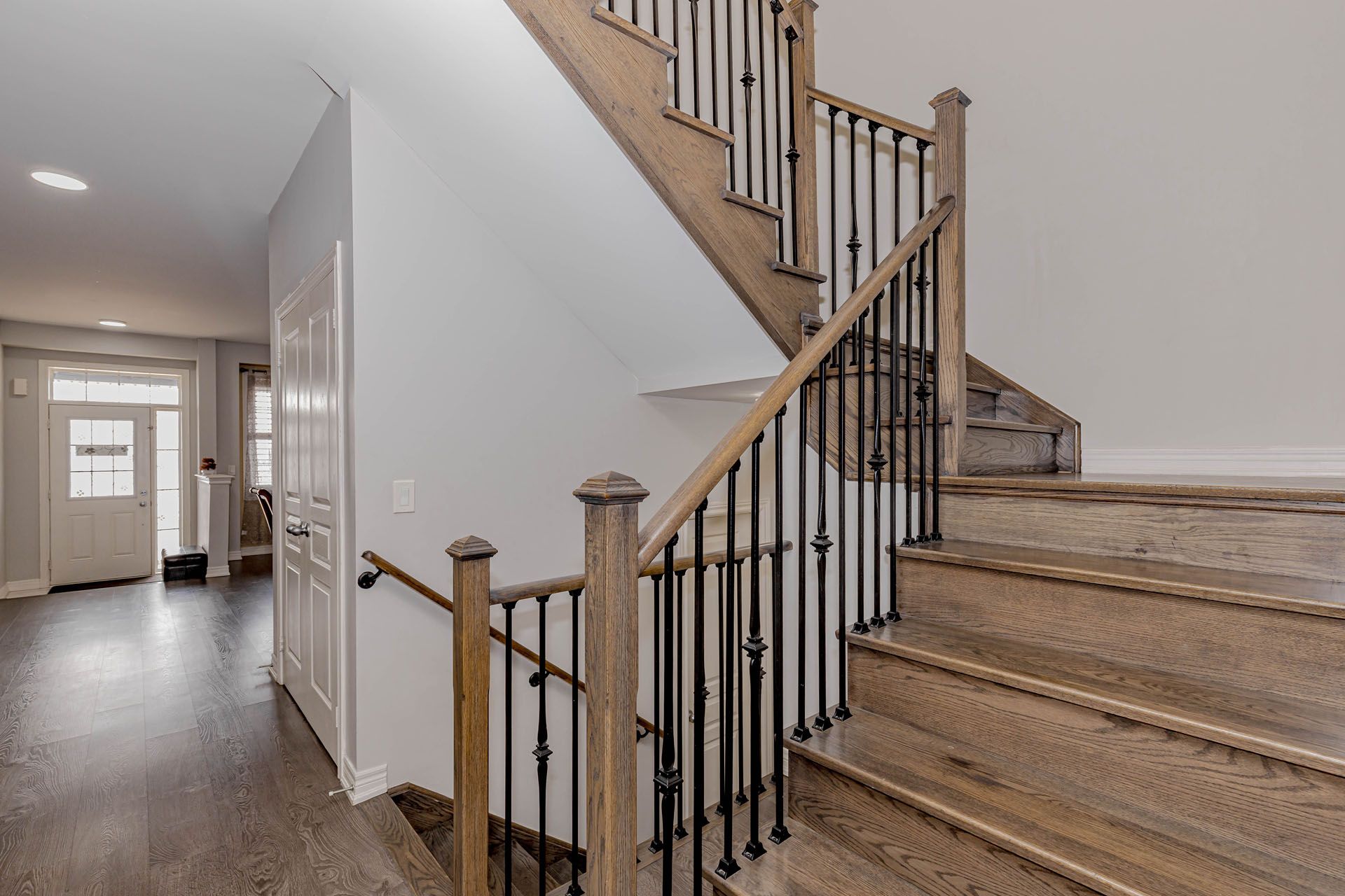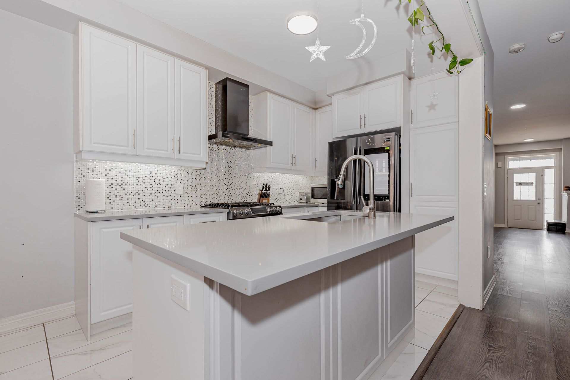 Welcome to this stunning all-brick 2-storey townhome offering an exceptional blend of style, space, and functionality. Featuring 3 spacious bedrooms and 3 bathrooms, this beautifully upgraded home boasts a thoughtfully designed layout rarely found in a townhouse, with separate living and family rooms, a distinct dining area, and a desirable second-floor media loft. The primary bedroom offers a private ensuite complete with a full tub and separate stand-up shower. The upgraded kitchen is sure to impress with extended cabinetry, quartz countertops, backsplash, black stainless steel appliances, gas stove, and upgraded stainless steel range hood. Elegant finishes throughout include led lighting, laminate flooring on the main floor and second-floor landing, and a striking oak staircase with iron pickets. Enjoy the added luxury of fronting onto open space, a full-sized fenced backyard, and an expansive unfinished basement with incredible potential for a future rec room, home gym, or additional living space. Ideally situated close to parks, schools, shopping, transit, and everyday amenities, this is a rare opportunity to own a spacious and refined townhome in one of milton's most desirable newer communities