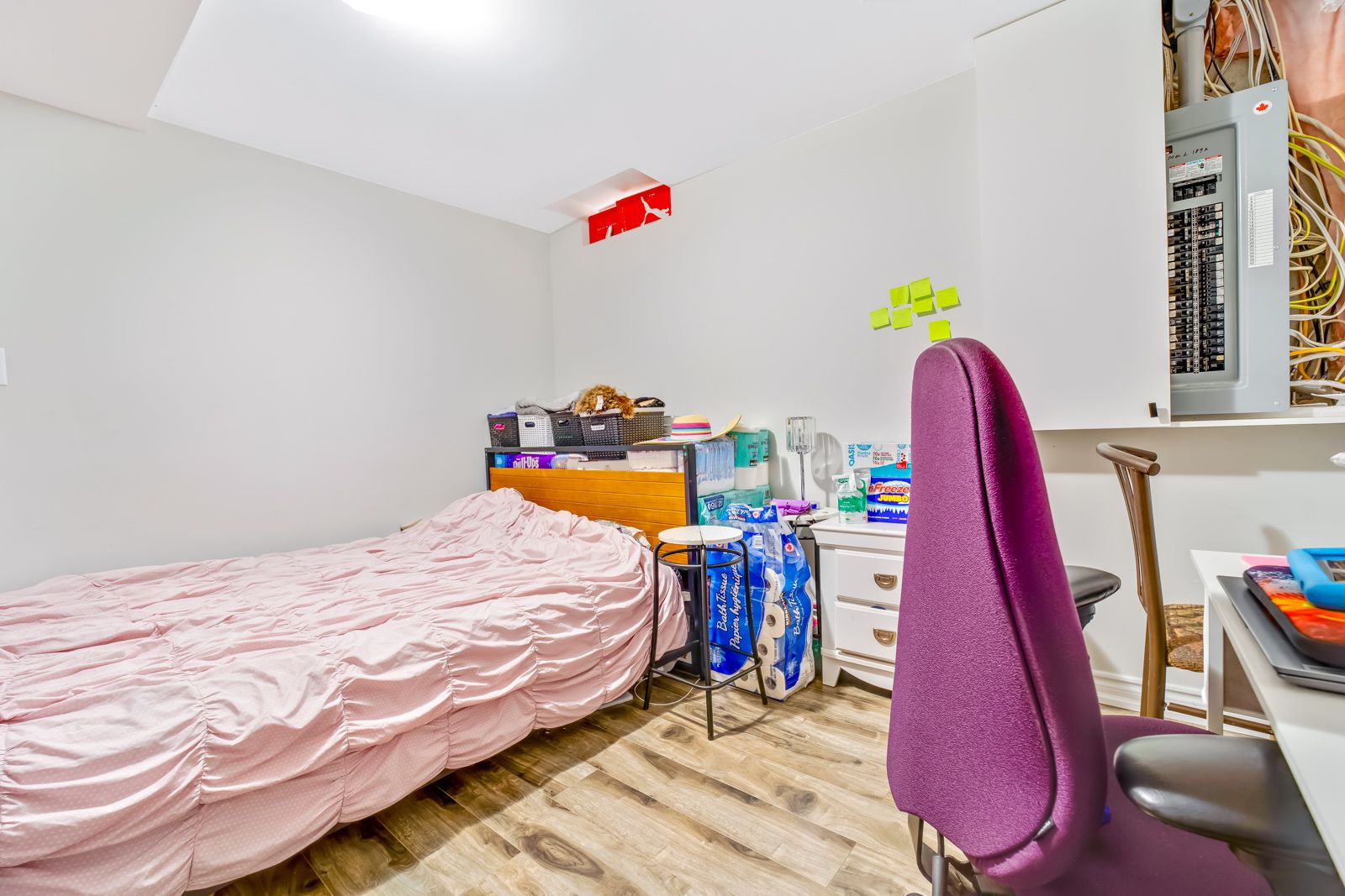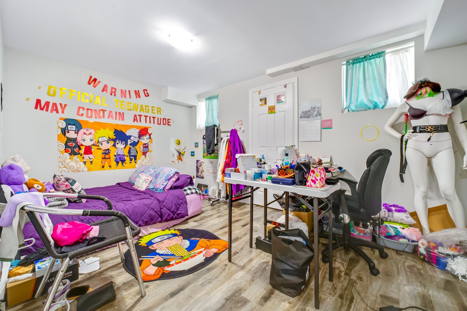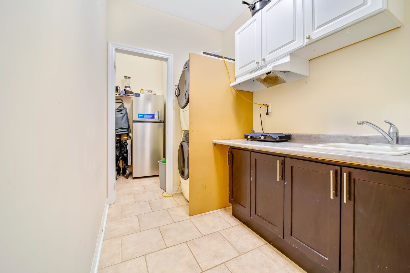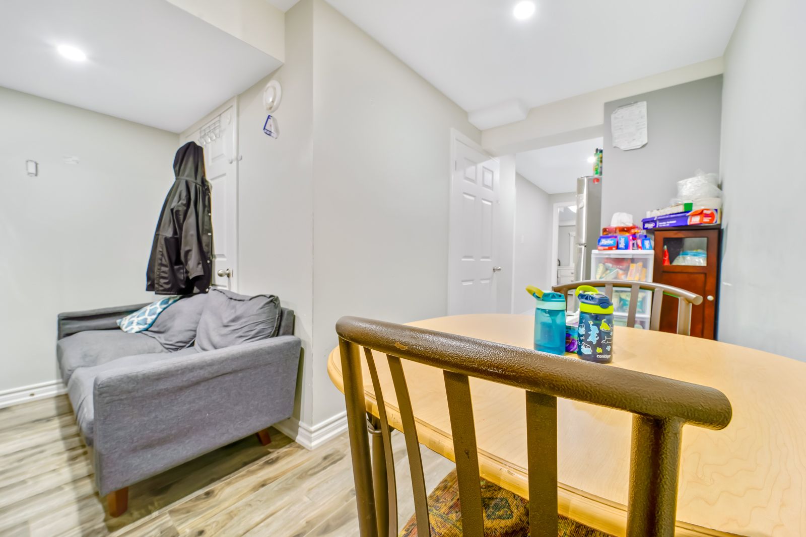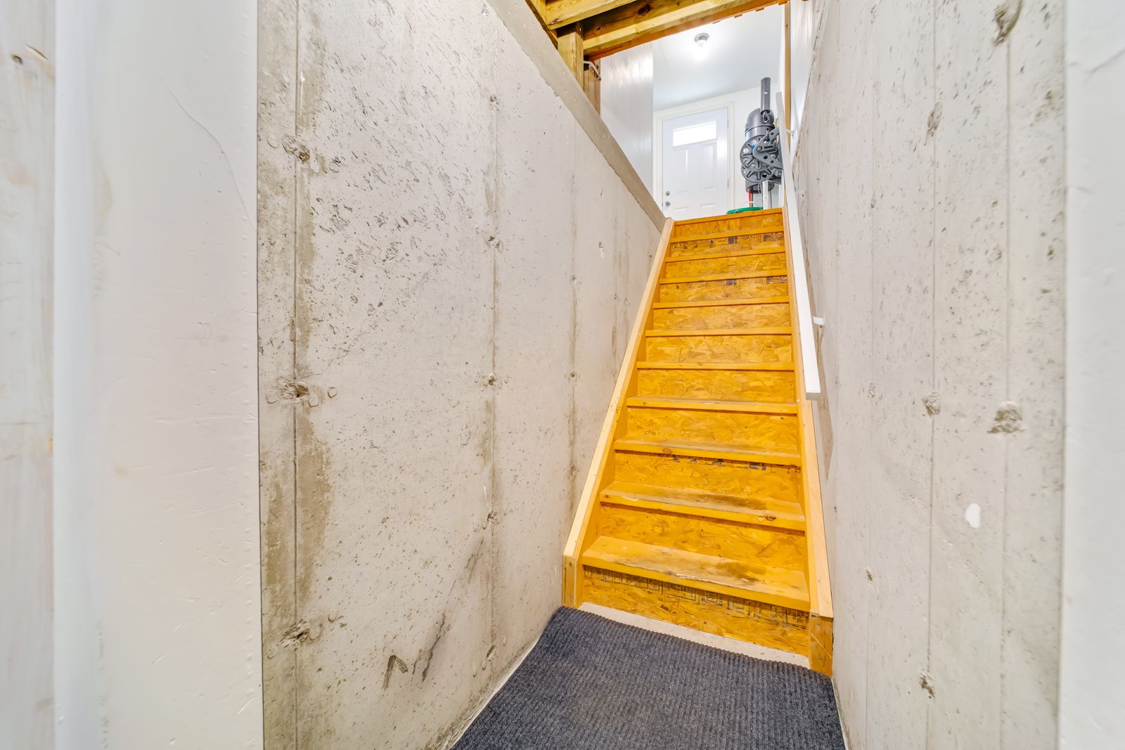 • Finished basement includes two separate apartments with large windows.