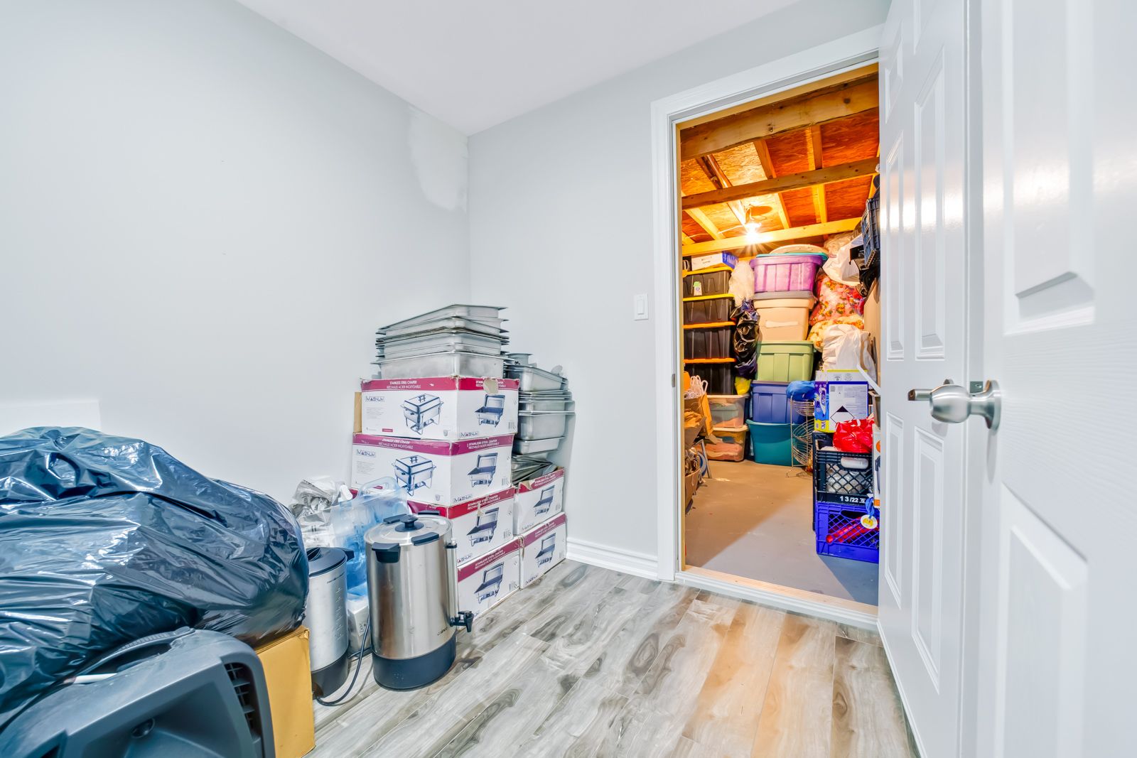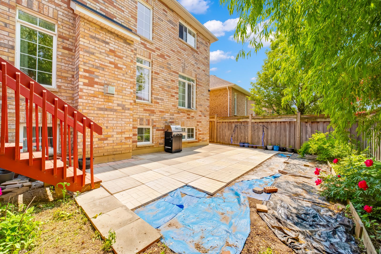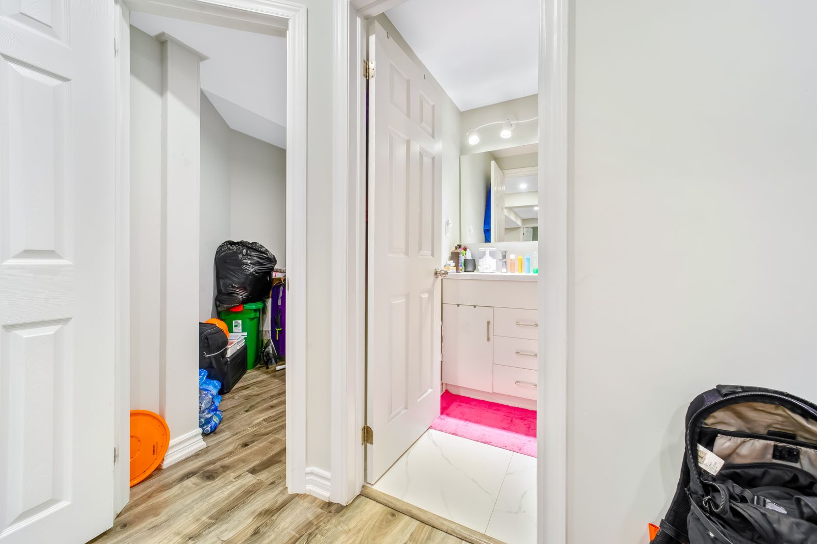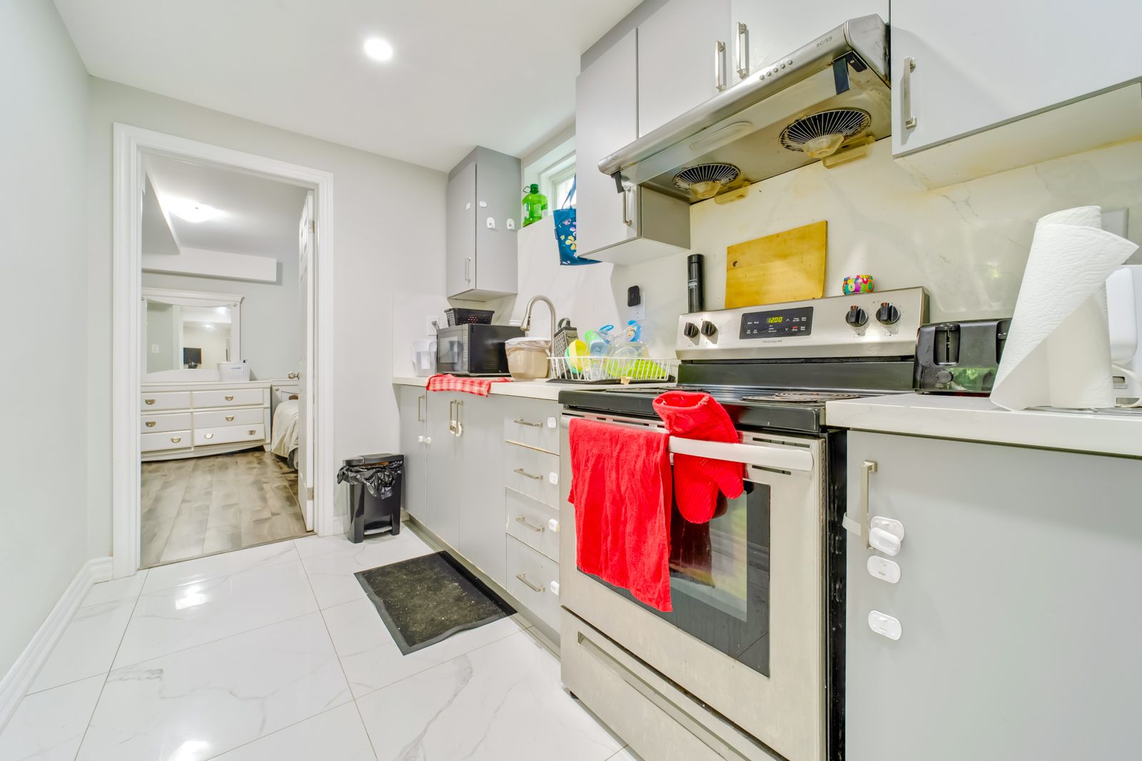 • Finished basement includes two separate apartments with large windows.