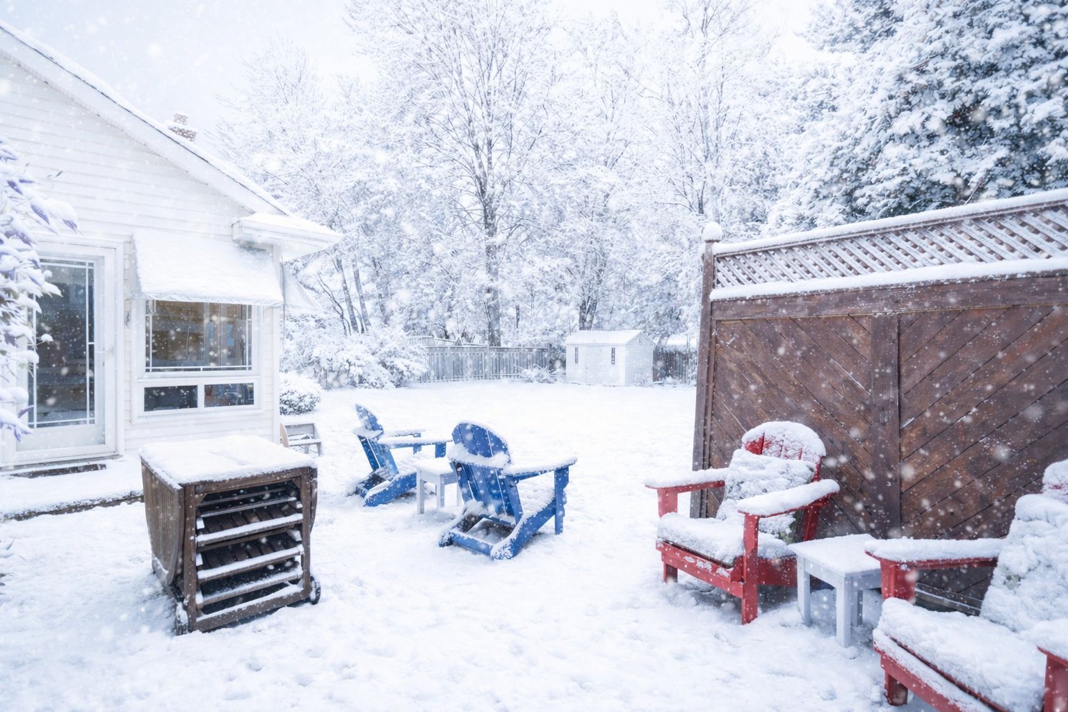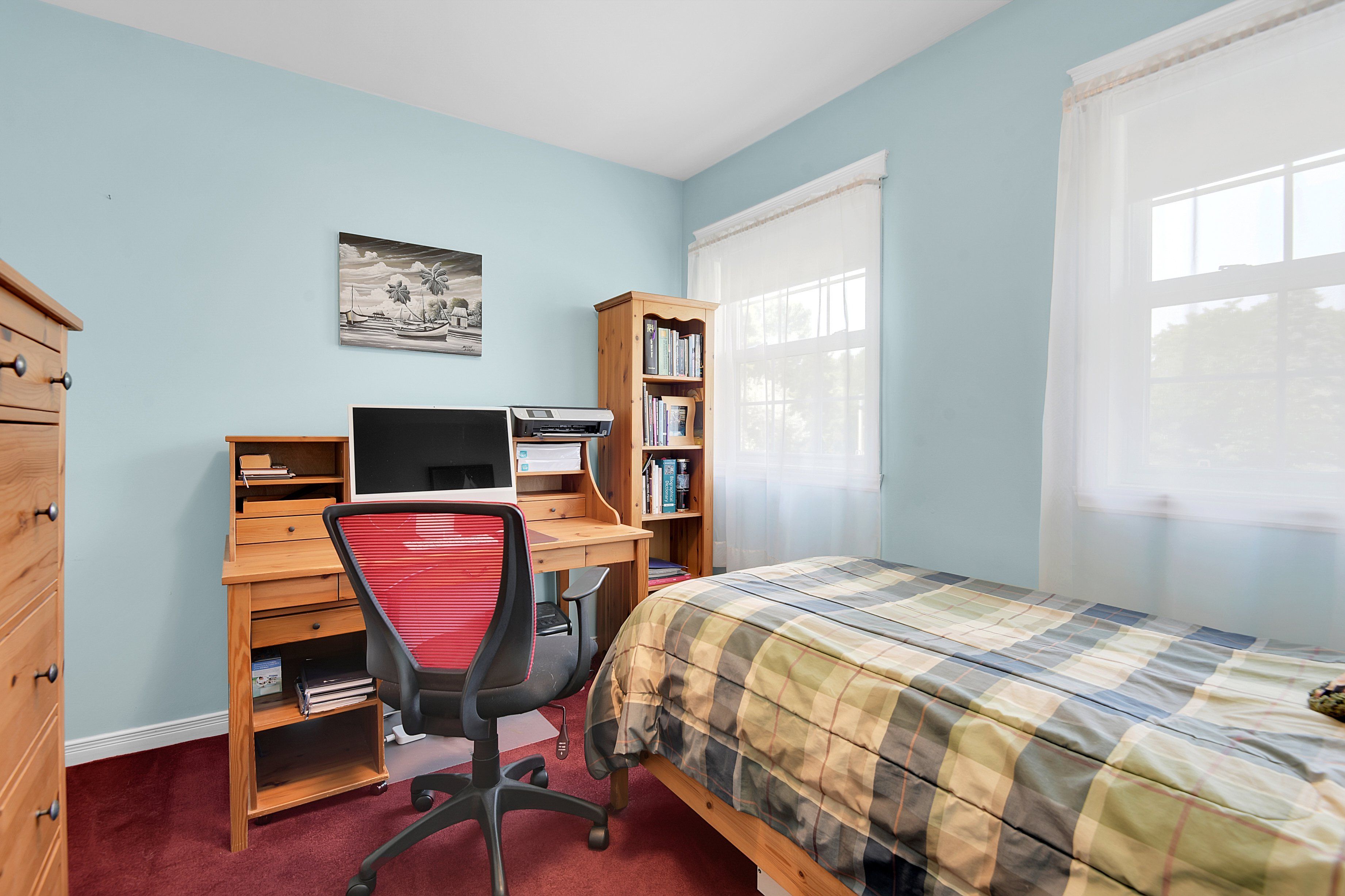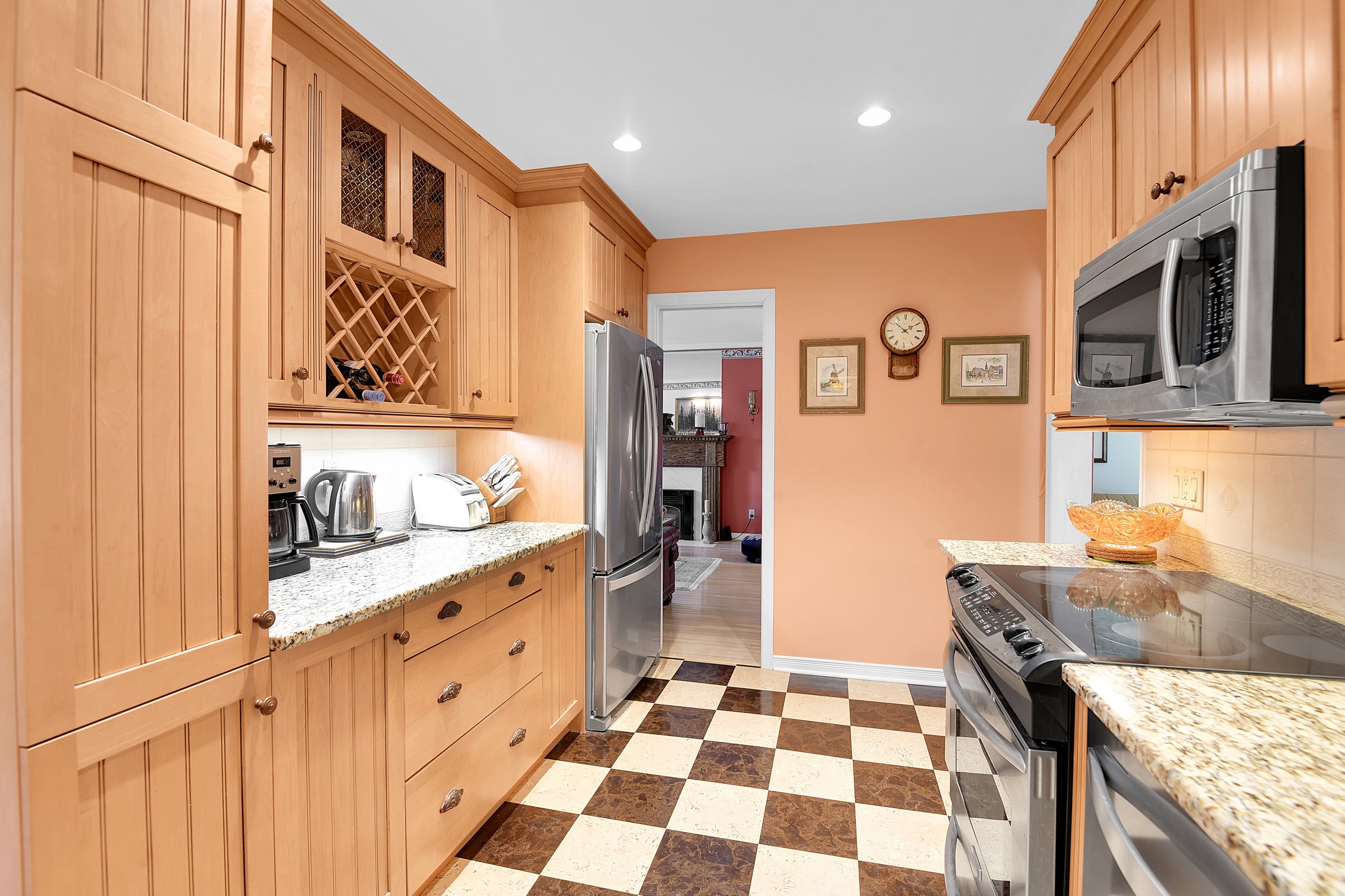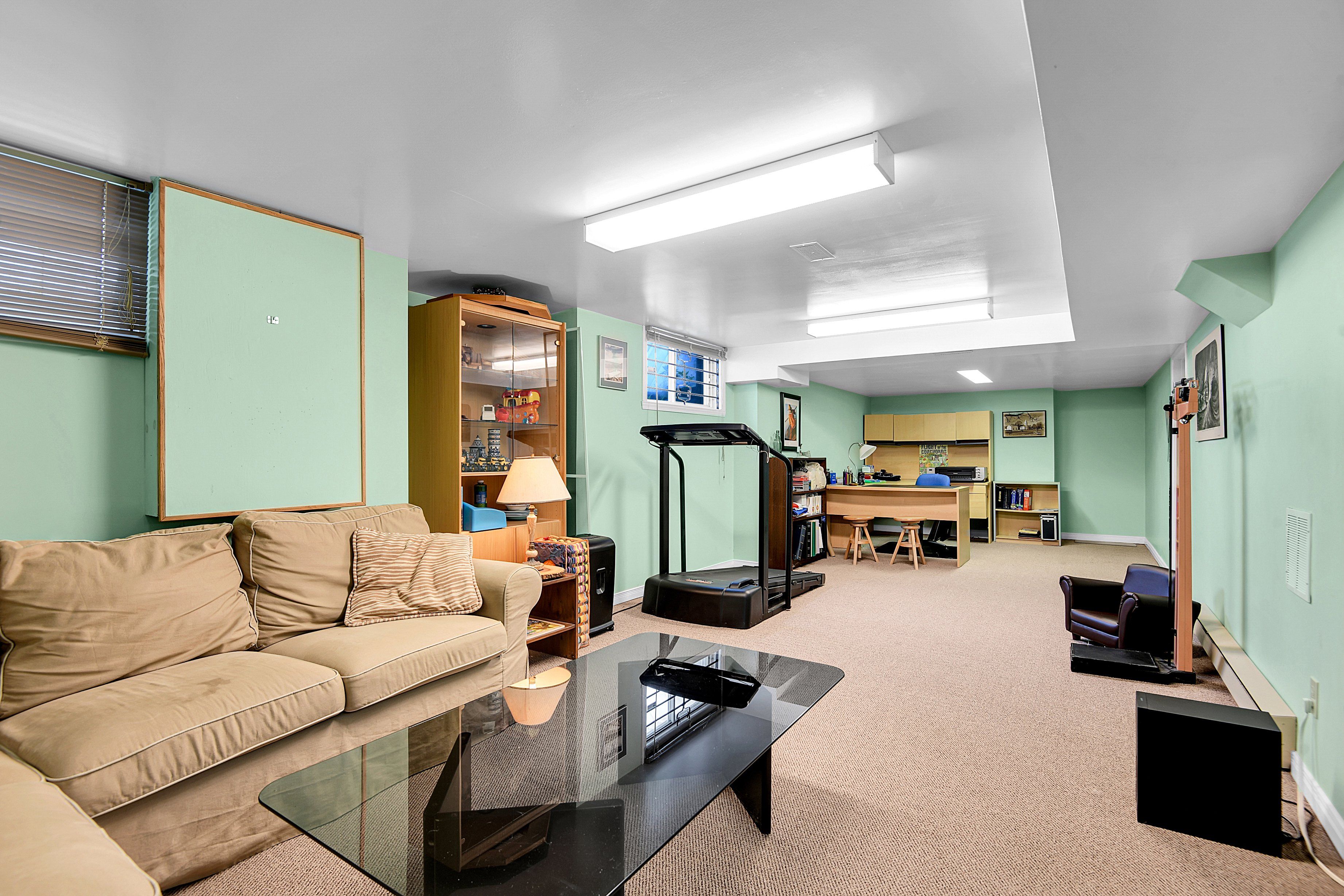 • Four-season sunroom offers views of a private backyard for year-round enjoyment.