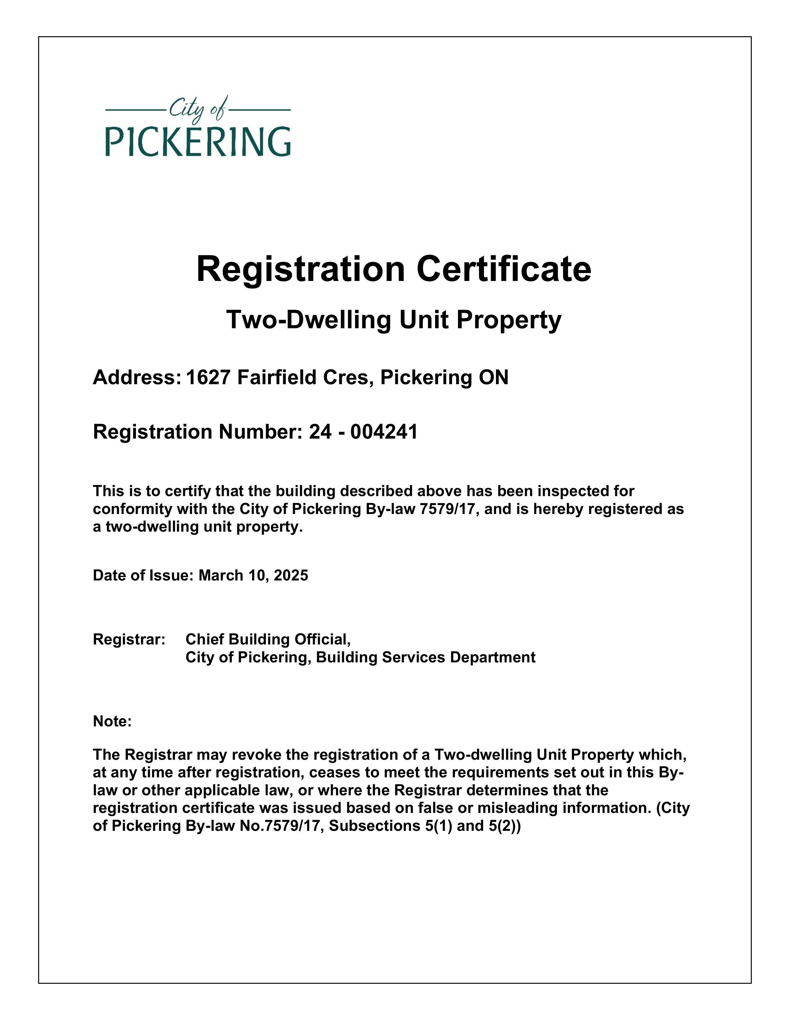 Address1627 Fairfield Crescent