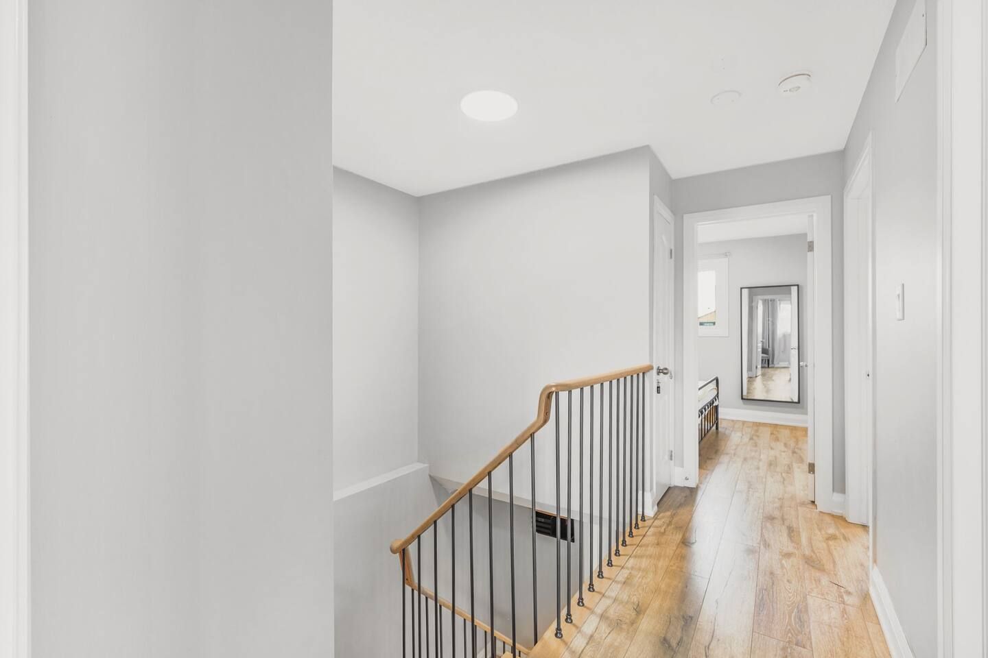 • Open-concept main floor with modern flooring and custom details.