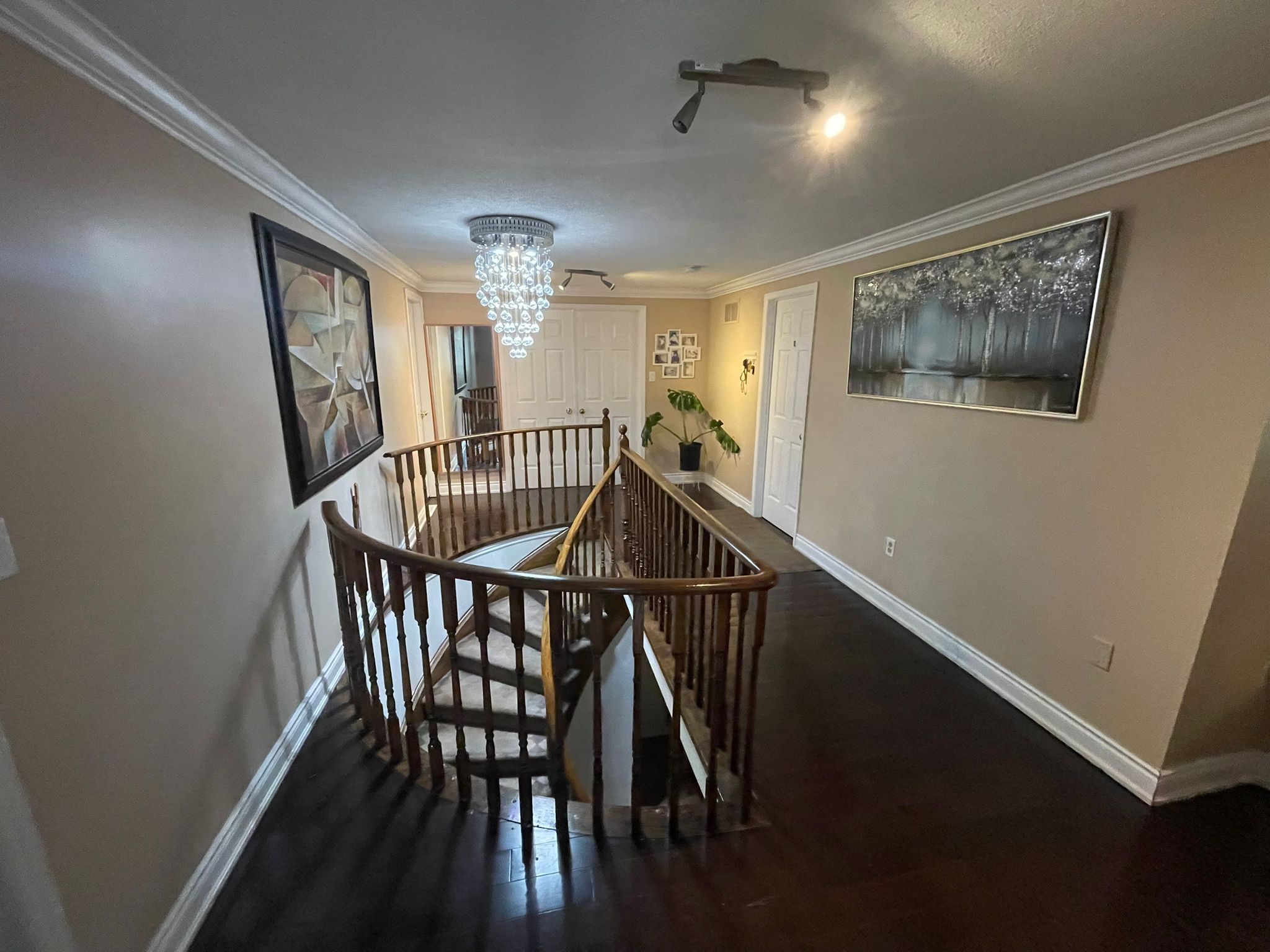 Calling all investors & those looking to live and rent! Perfect for a large or an extended family! Beautiful home, ideal for a multi-generational family w/ rental income. Welcome to 1627 middleton st situated on a 40x164 ft pie-shaped lot located in an in demand pickering location, brock ridge community. A rare oversized lot has a detached house that offers 5 + 2 + 2 bedrooms and 6 bathrooms. On the second floor, 5 bedrooms and 3 bathrooms, a family room with an electric fireplace, and a spiral staircase that connects to a rec room with a gas fireplace, a powder room and a 2nd kitchen in the basement. On the main floor, 2 bedrooms, one with an electric fireplace, 3 piece bathroom, and a walk-in closet fully accessible for the disabled or elderly, a living room, a kitchen combined with a dining room that walks out to a huge balcony overlooking the backyard. In the walk-out basement, a kitchen, and 4 piece bathroom ideal for rent. Huge irregular private backyard with a built-in pond surrounded by beautiful trees and a large detached garden shed perfect for storage. This home features over 3600 sq ft of living space. The location of this property provides convenience to all amenities, close to schools, shopping, public transit, parks, short drive to 401. Front enclosed porch. Main floor laundry. This home features hardwood floors. Fully finished basement w/ 2 separate units, one perfect for the in-laws or home office or gym and the other for rent. Private double driveway w/ double car garage. *motivated seller*