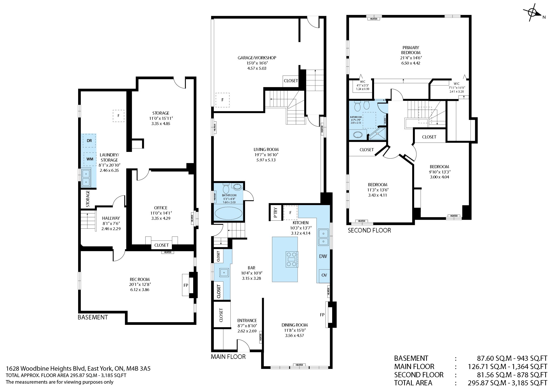 Discover this beautifully updated 3 + 1 bedroom, two-storey home offering nearly 3,200 sq. Ft. Of total living space (basement and garage workshop included) on a bright corner lot in the prestigious parkview hills community. Surrounded by a lovingly maintained yard, this residence impresses with exceptional curb appeal and a warm, thoughtful design. The tiled foyer with built-in cabinetry welcomes you into a spacious open-concept living and dining area anchored by one of the home's two fireplaces. The large eat-in kitchen is a chef's delight, featuring a european ceiling-mount hood vent, bar and pantry with a separate sink, and generous space for entertaining friends and family. Upstairs, three bright bedrooms provide comfort and charm, while the inviting primary suite offers two walk-in closets and tranquil views. The partially finished lower level adds versatility with a potential in-law suite and two separate entries, ideal for extended family or future rental use. The heated and insulated double-car garage, currently used as a workshop, previously as a home office and gym, and of course to park cars, includes a convenient rear entrance mudroom with heated flooring, ensuring year-round comfort. Modern mechanicals and updates enhance peace of mind, including a new driveway (2024), roof and skylights (2018), windows (2014), and central a/c via attic pack system (2021). The home features hot water radiant heating powered by an efficient on-demand combi boiler. Just steps from taylor creek park trails, top-rated schools,shopping, and easy dvp access, this parkview hills gem blends comfort, style, and smart functionality in one of east york's most sought-after neighbourhoods