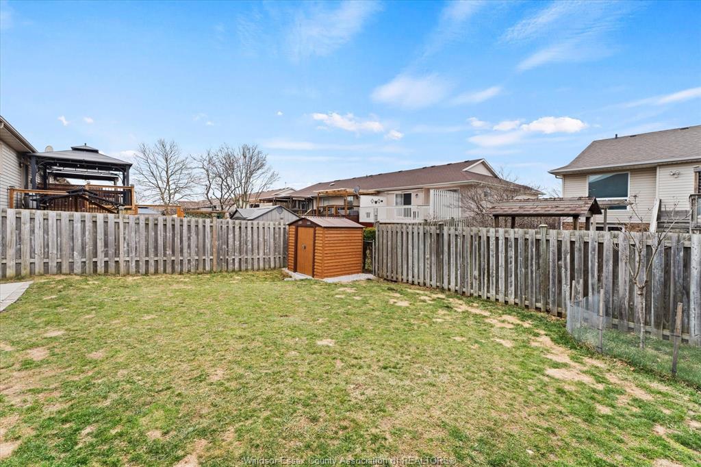 • Fully fenced yard, sundeck, and storage shed for outdoor use.