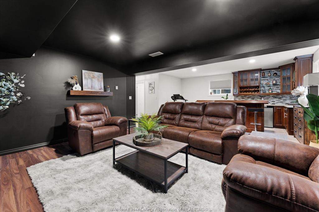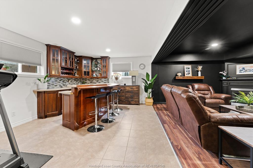 • Chic family/movie room with bar area for entertainment.
