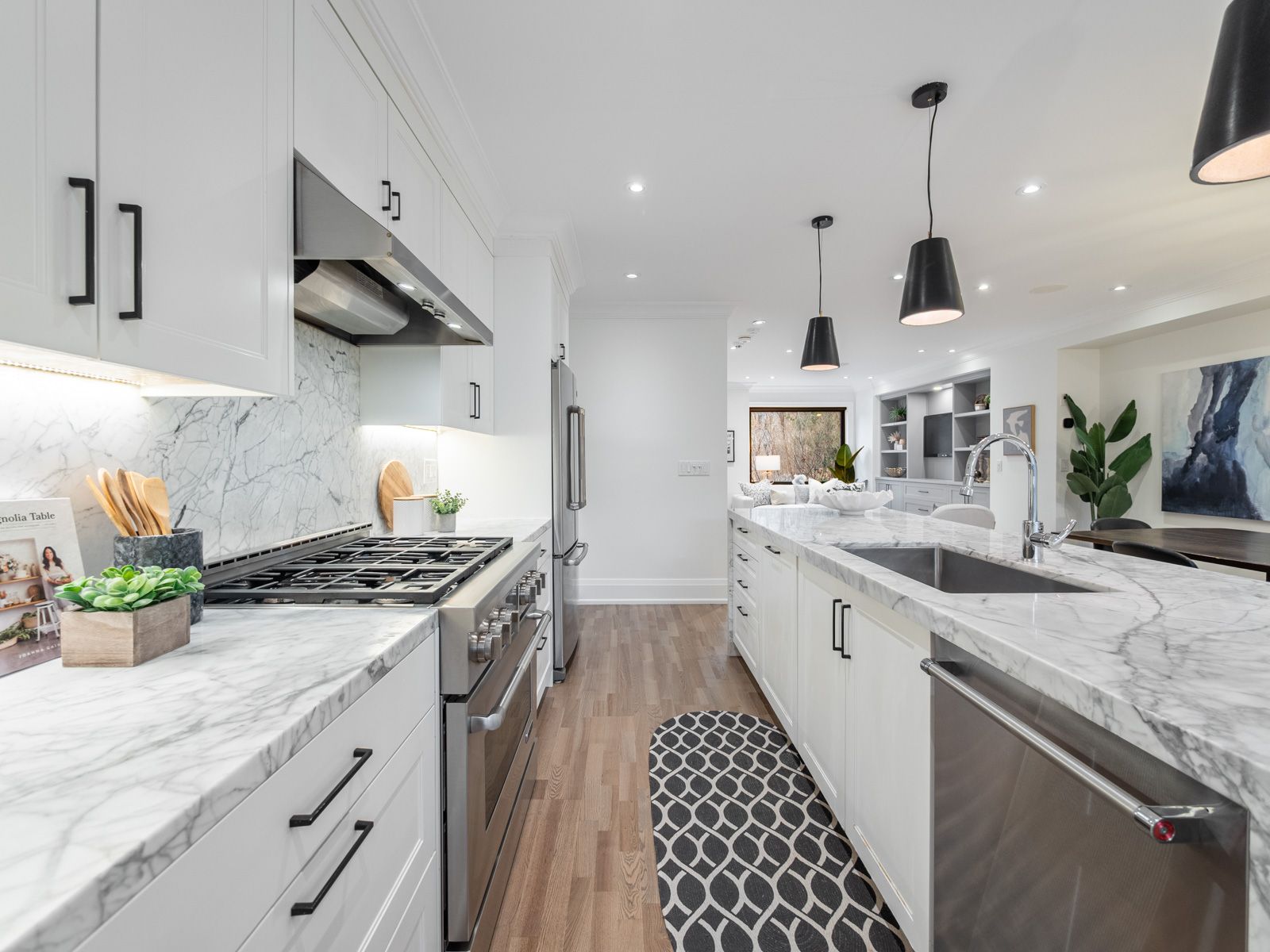 Welcome to 163 arlington ave, a beautifully renovated family home in the heart of humewood. This stylish residence seamlessly blends modern finishes with thoughtfully designed living spaces across multiple levels, offering exceptional flexibility for today's busy lifestyle. The main floor features a bright, open-concept layout with rich hardwood flooring and elegant custom built-ins in the living room. The dining area flows effortlessly into a contemporary kitchen, complete with a custom marble island with ample storage and luxury appliances. At the rear, the inviting family room provides the perfect gathering space, with a walkout to the patio and landscaped backyard. A convenient 2-piece powder room complete this level. Upstairs, the second floor offers three well-proportioned bedrooms, including a spacious primary retreat with a walk-in closet, custom millwork and a luxurious 5-piece ensuite. The additional bedrooms feature generous storage and share a beautifully appointed 4-piecebathroom. The third floor adds incredible versatility with two additional bedrooms and a 3-piecebathroom, ideal for growing families, guests, or dedicated home office space. The finished basement, with a separate side entrance, offers outstanding flexibility. It includes a large recreation room, a sixth bedroom with custom closets and built-in desk and storage, a 4-piece bathroom, laundry room, and ample storage, including a spacious storage area. Additional highlights include a charming covered front porch, private one-car driveway, storage shed, and a landscaped backyard with patio - perfect for outdoor entertaining. A rare opportunity to own a fully renovated home in the highly sought-after humewood community, offering space, style, and thoughtful design throughout.