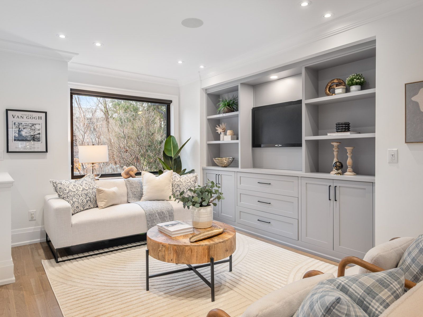 • Bright open-concept main floor with hardwood floors and custom built-ins.