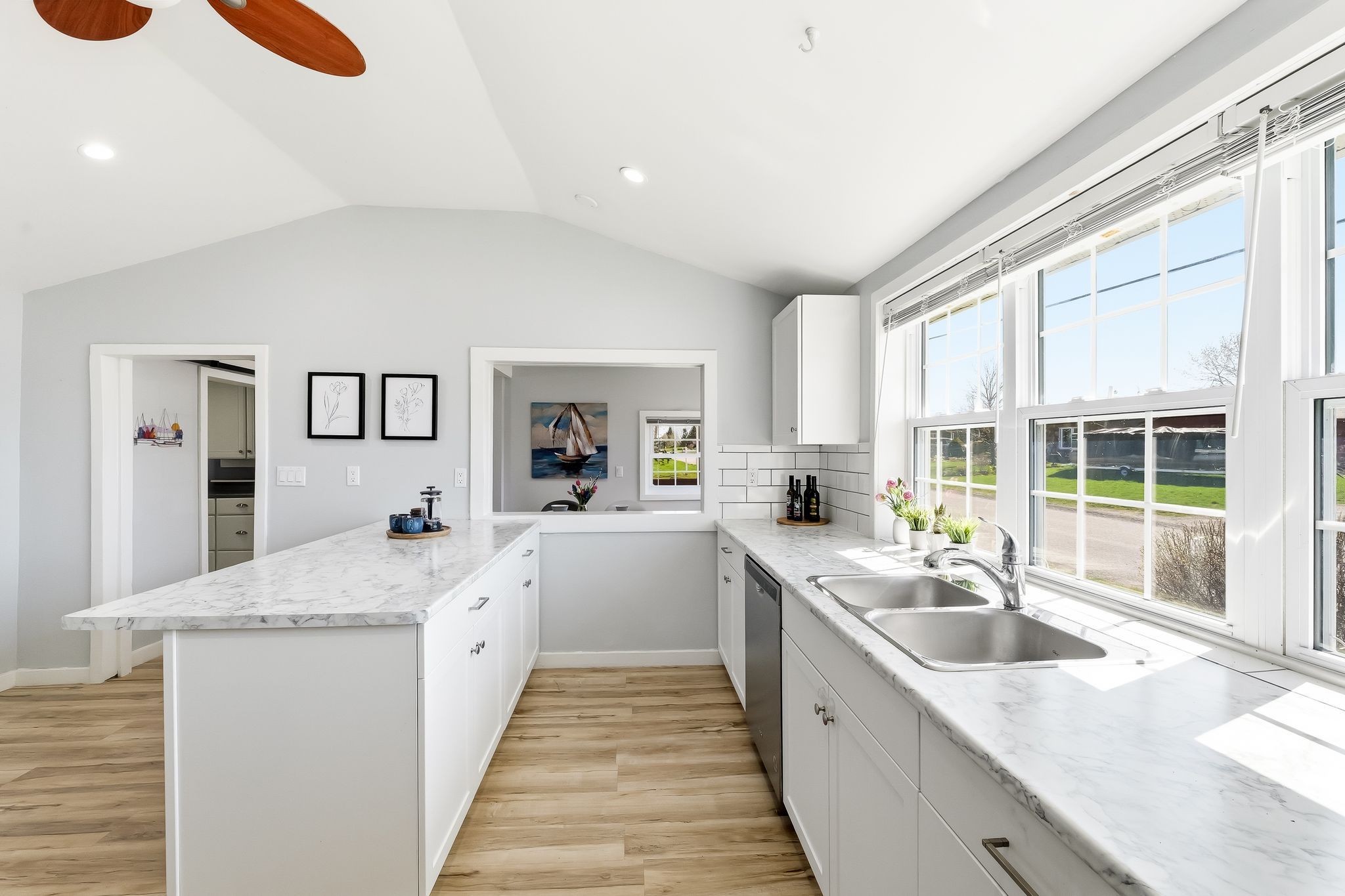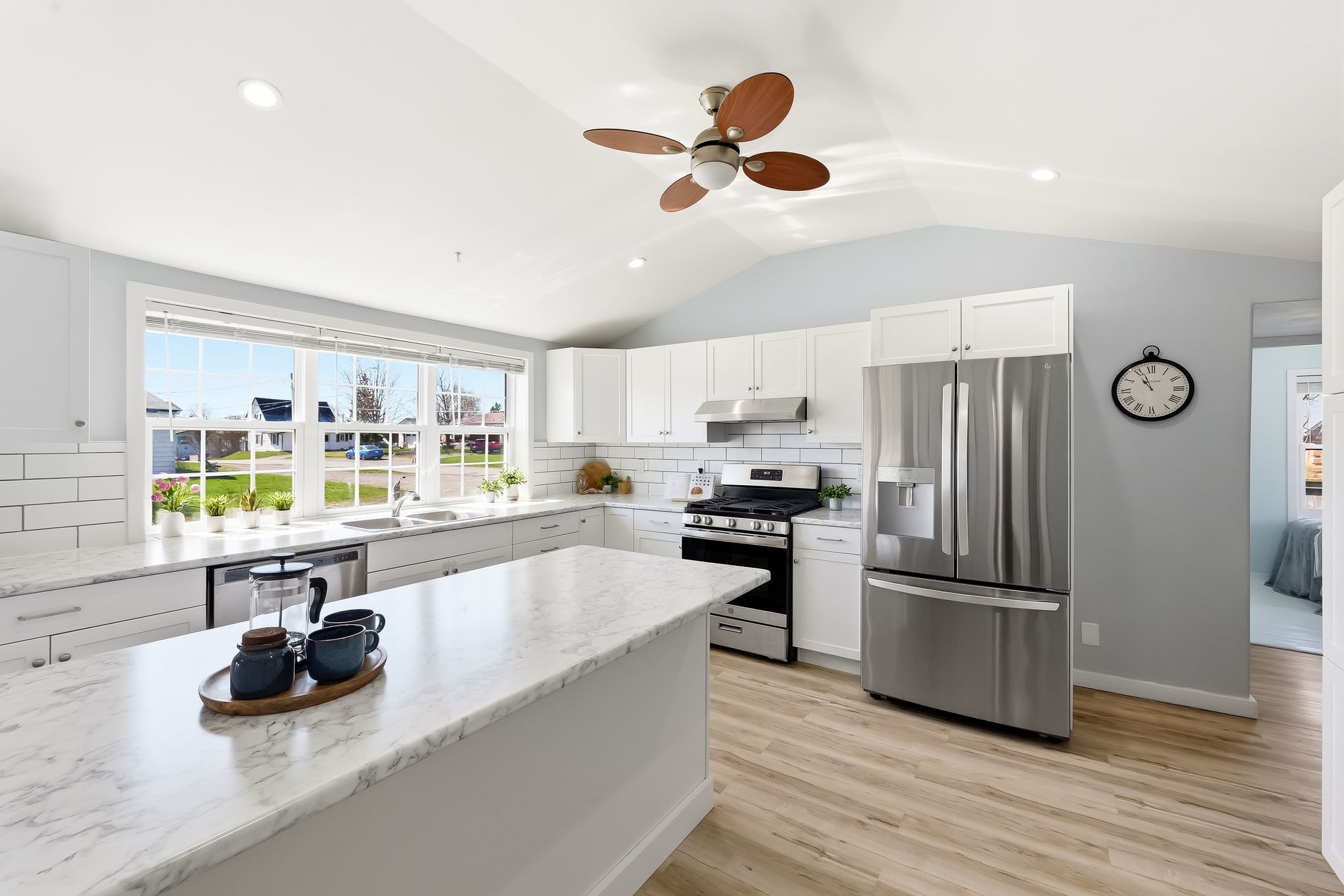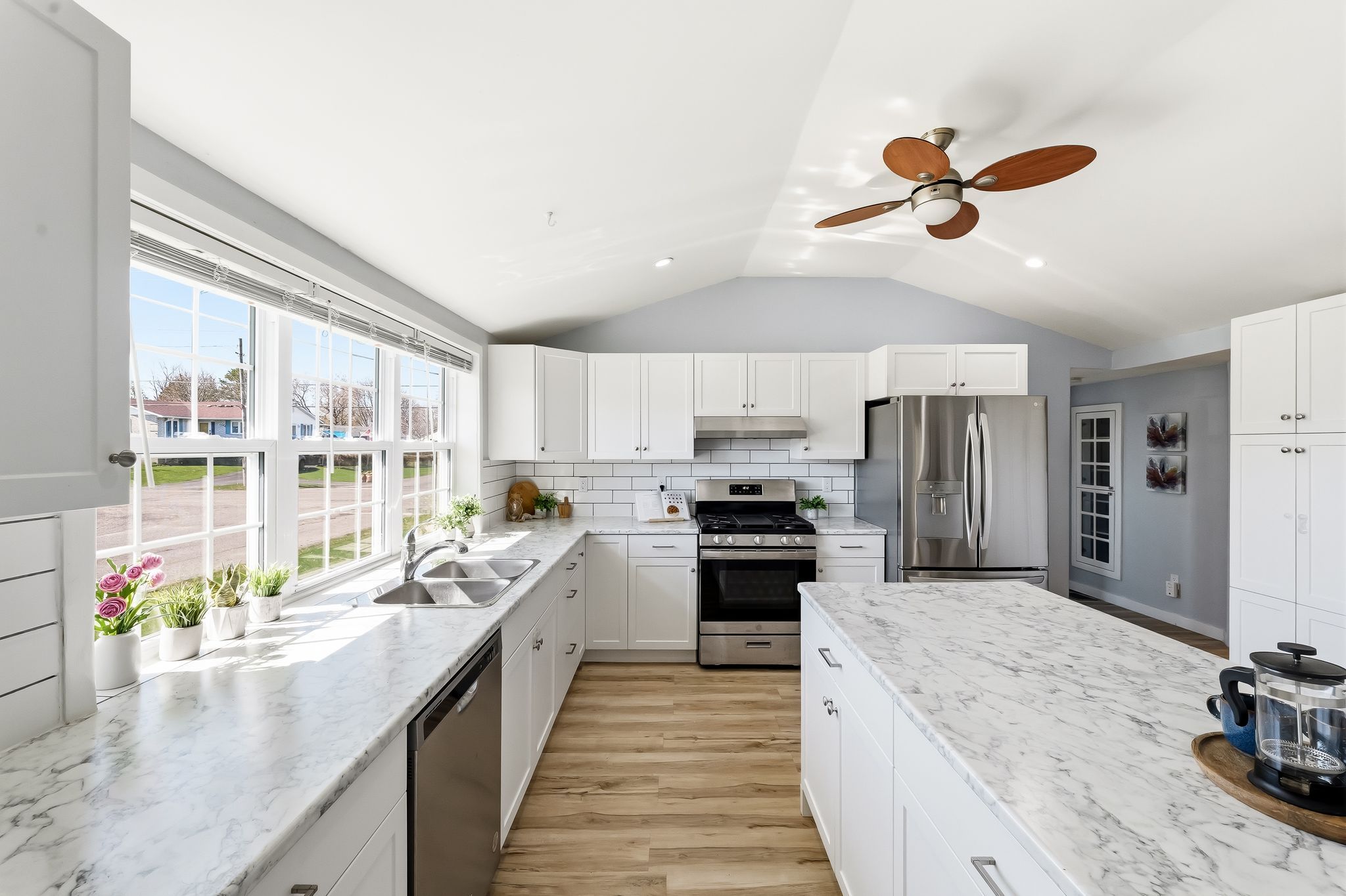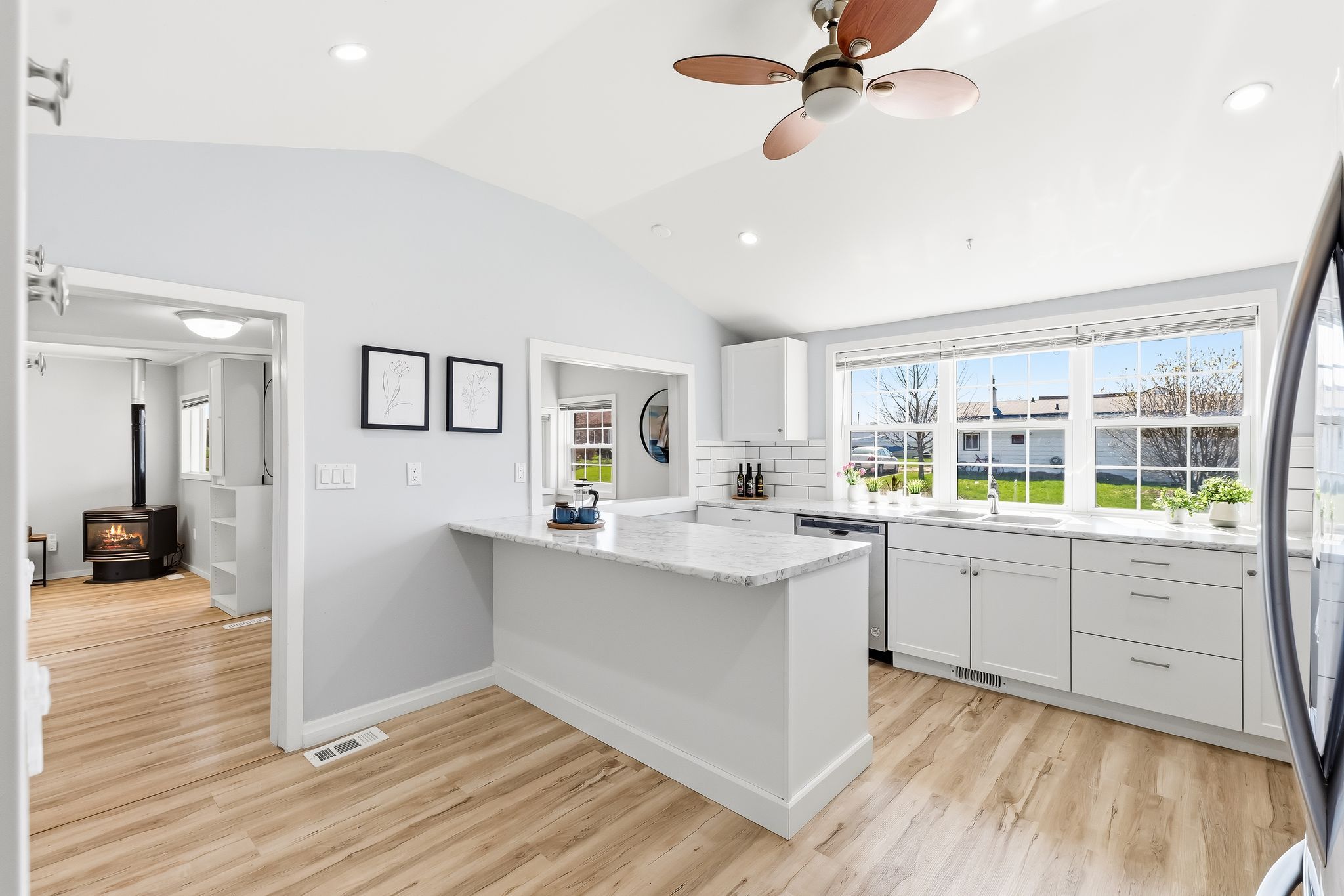 • Bright kitchen with newer appliances and a breakfast island for convenience.