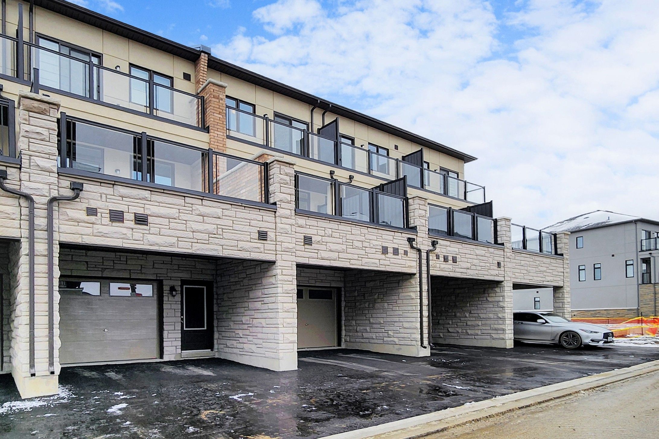 • Brand new freehold townhome with modern stucco and stone exterior.