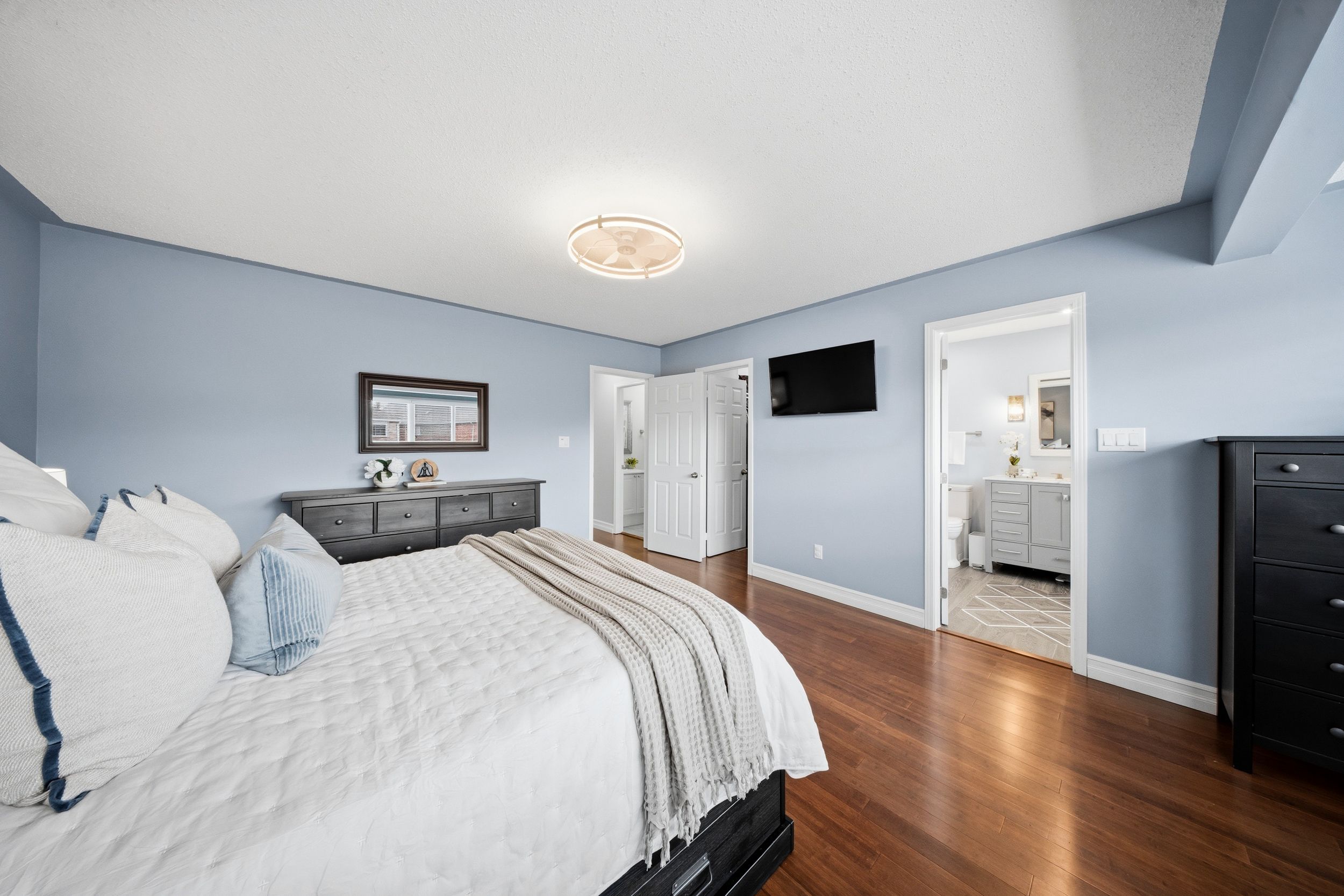• Upper level includes a primary suite with a luxury ensuite bathroom.