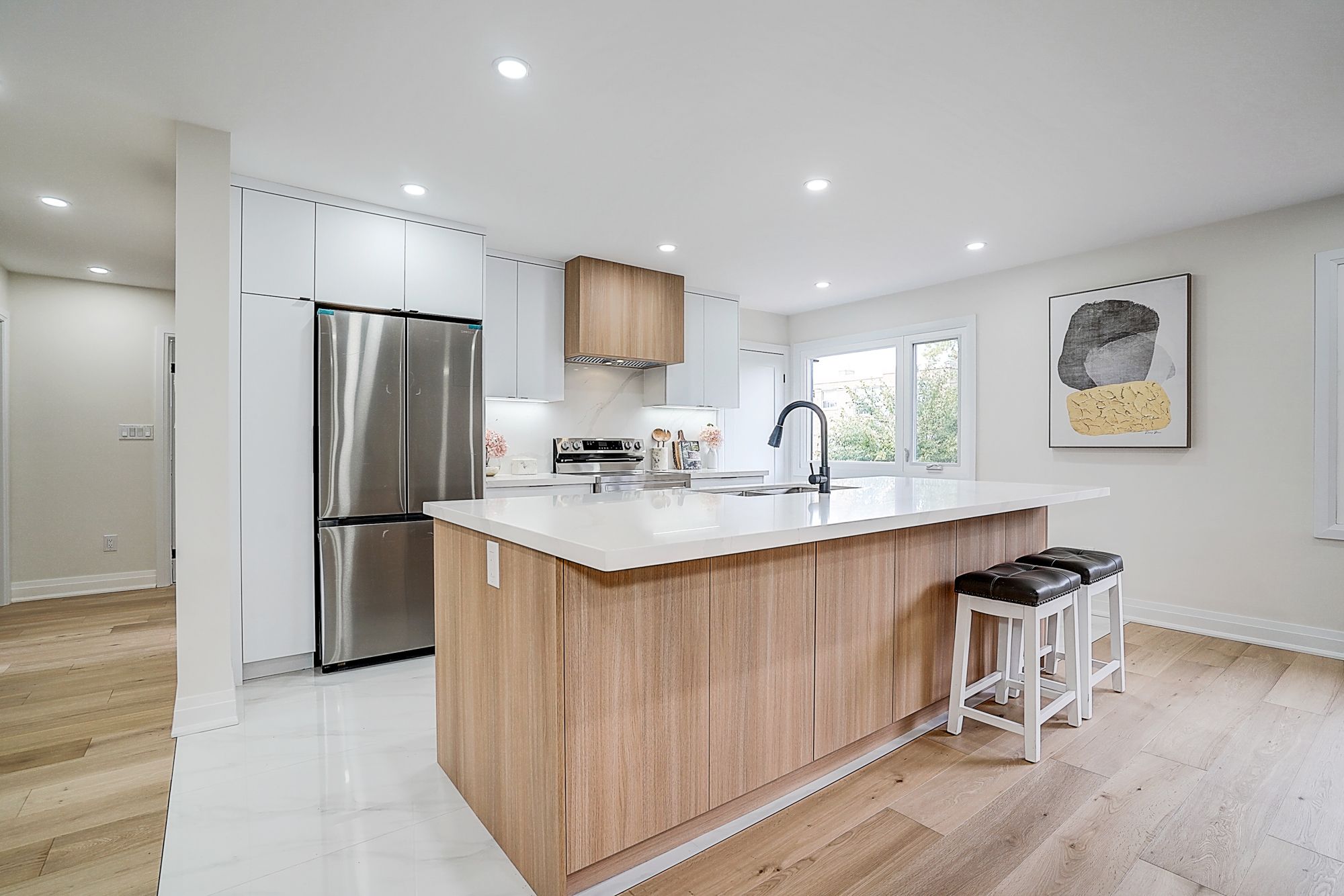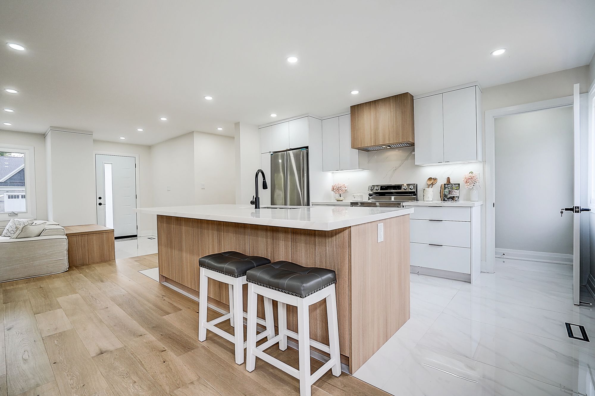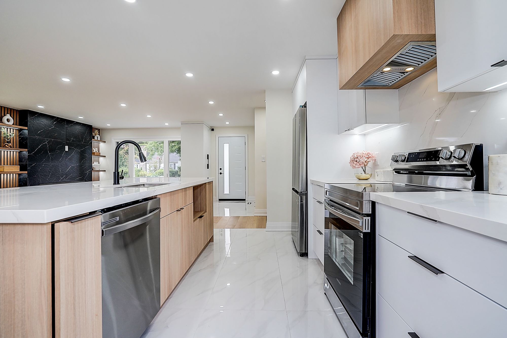 Stylish and modern, this beautifully renovated home in oakvilles sought-after kerr village offers sophistication and versatility. Featuring a stylishly paneled exterior, open-concept design, pot lights throughout, brand new windows and brand new roof. Every detail has been thoughtfully curated. The great room is highlighted by a stunning fireplace mantle flanked by modern shelving. The custom chefs kitchen boasts an oversized island, quartz counters, matching backsplash, and stainless steel appliances. Spa-like bathrooms include elegant glass showers and luxury finishes. The finished basement apartment with separate entrance features a designer kitchen, spacious living, and income potential. Outdoors, enjoy a private backyard with wood deck and detached garage. Steps to lakeshore, downtown oakville, transit, top schools, shops, and dining, with easy access to the 403/qew/407.