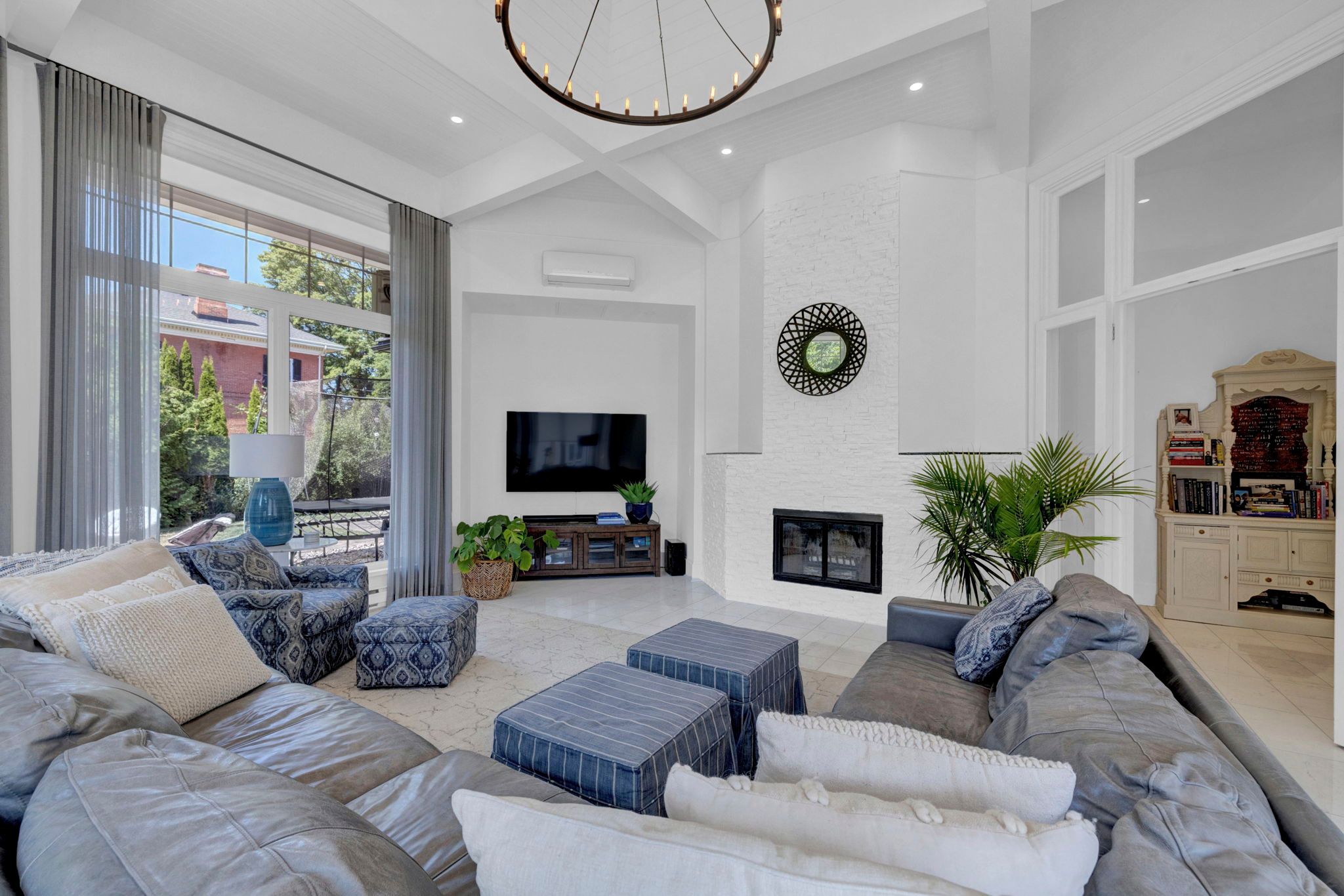 One of four private residences built by the prominent burnet brothers circa 1864 whose chief building legacy was the iconic victoria hall in downtown cobourg. This landmark century home makes a bold statement from the street with its pillared circular drive entry with iron gates & classic crisp white exterior with bold black accents. A gorgeous arched front entry with curved transom window welcomes you to the foyer that leads to the grand centre hall with soaring ceilings, crown moulding & rich hardwood floors. The front formal living & dining rooms are perfectly scaled for entertaining large groups & feature original fireplaces & large windows that fill the spaces with warm natural light. A beautiful & well-appointed chef's kitchen is the heart of the home with its large centre island wolf range & sub-zero fridge/freezer, stand alone wine cooler & designated pantry room. The open breakfast area overlooks the fully fenced rear yard with inground pool, cabana, patios, sports court & sweeping lawns & mature gardens. Large main floor office, separate gym room & a sunken hexagon shaped conservatory/great room with soaring waffled cathedral ceiling, fireplace, floor to ceiling windows & double garden door walkout to rear yard. One of two staircases up to the dream primary suite with dressing room, walk-in closet & 5pc ensuite bath with large glass shower & water closet. Three further well sized second floor bedrooms one with full ensuite while the north bedrooms share a lux jack & jill bath with walk through shower. Fully finished lower level with massive recreation area, large bedroom with above grade windows, wine room & laundry. The lower is very well suited for nanny's quarters or extended family. This stately residence is filled with unique architectural features & is perfectly suited for the active family who loves to entertain. Located on one of the most sought-after streets in cobourg a stone's throw to lake ontario, beach & downtown amenities. See vtour.