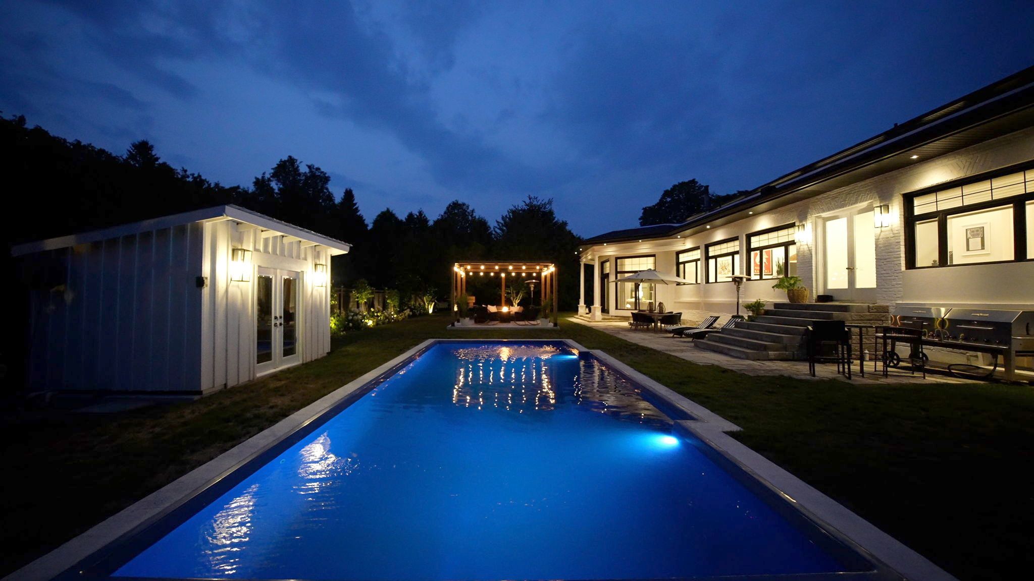 • Private backyard with an inground pool, cabana, and beautifully landscaped gardens.