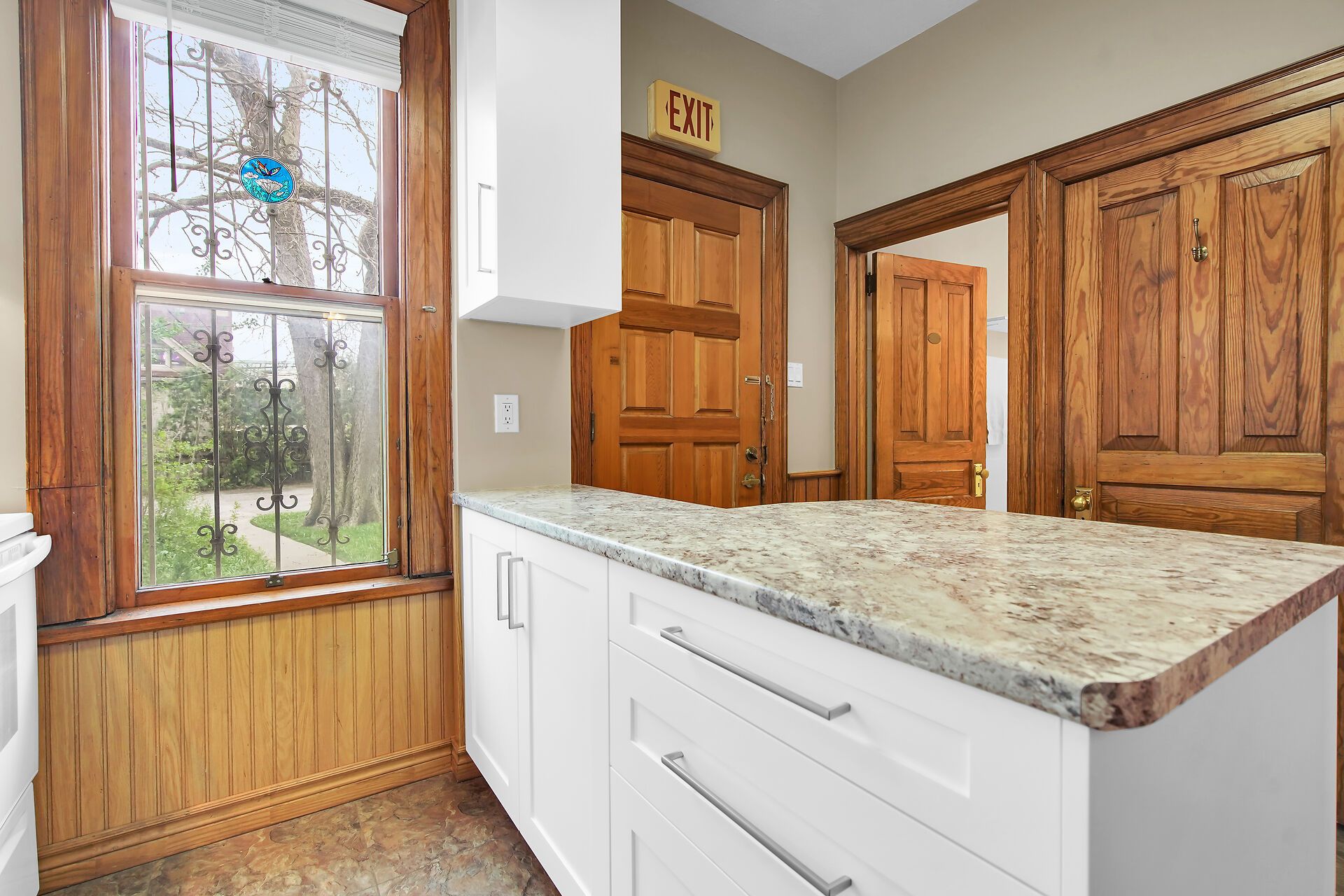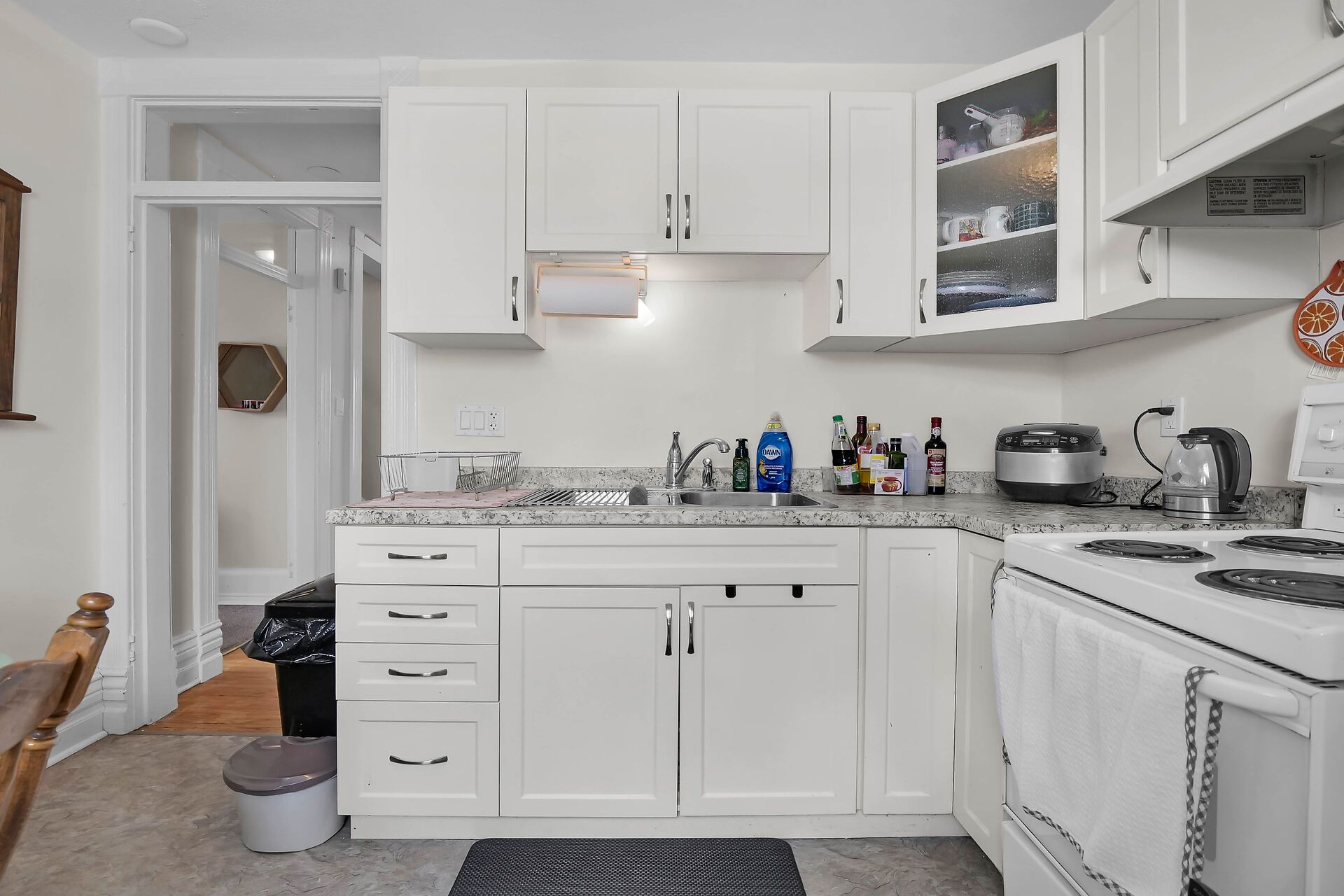• Main floor offers charming 1-bedroom suite with original hardwood and fireplace.