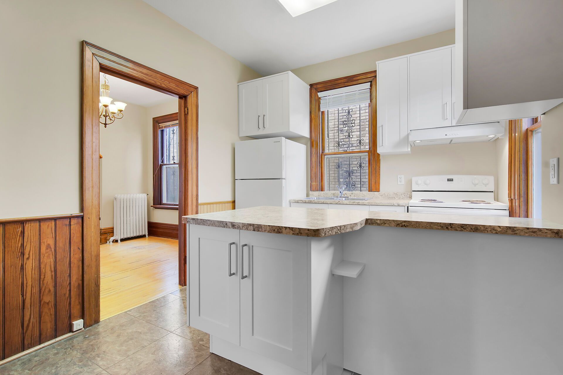 • Upper unit features bright 3-bedroom layout with modern kitchen and den.
