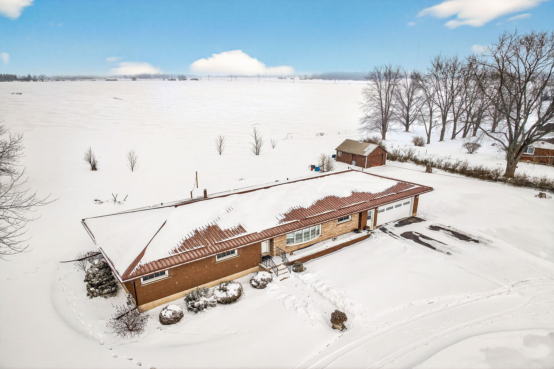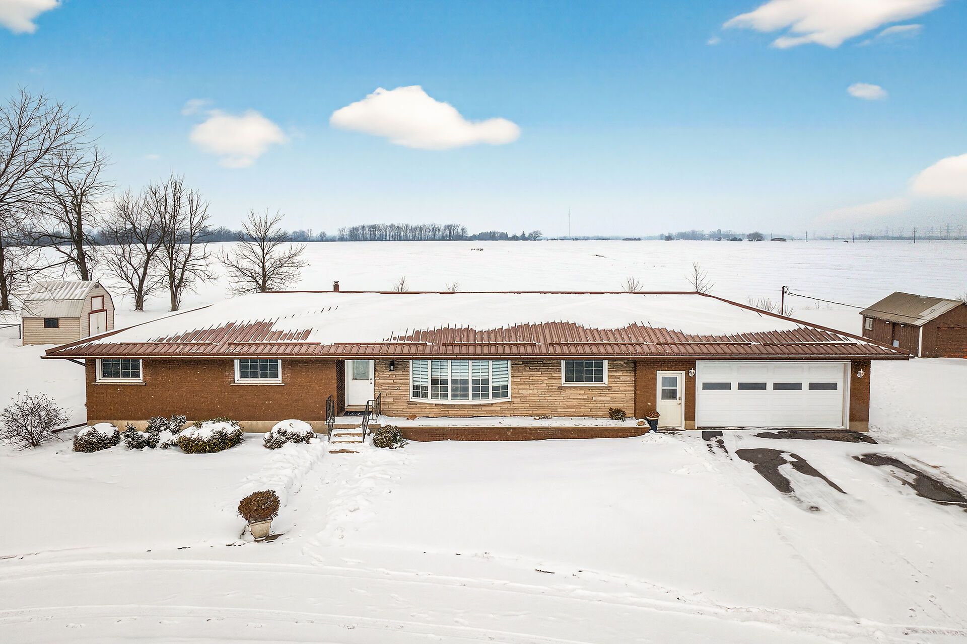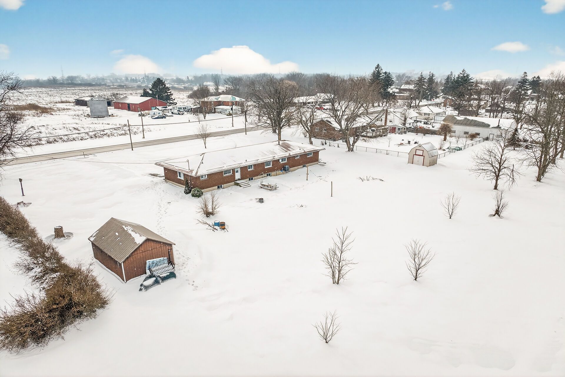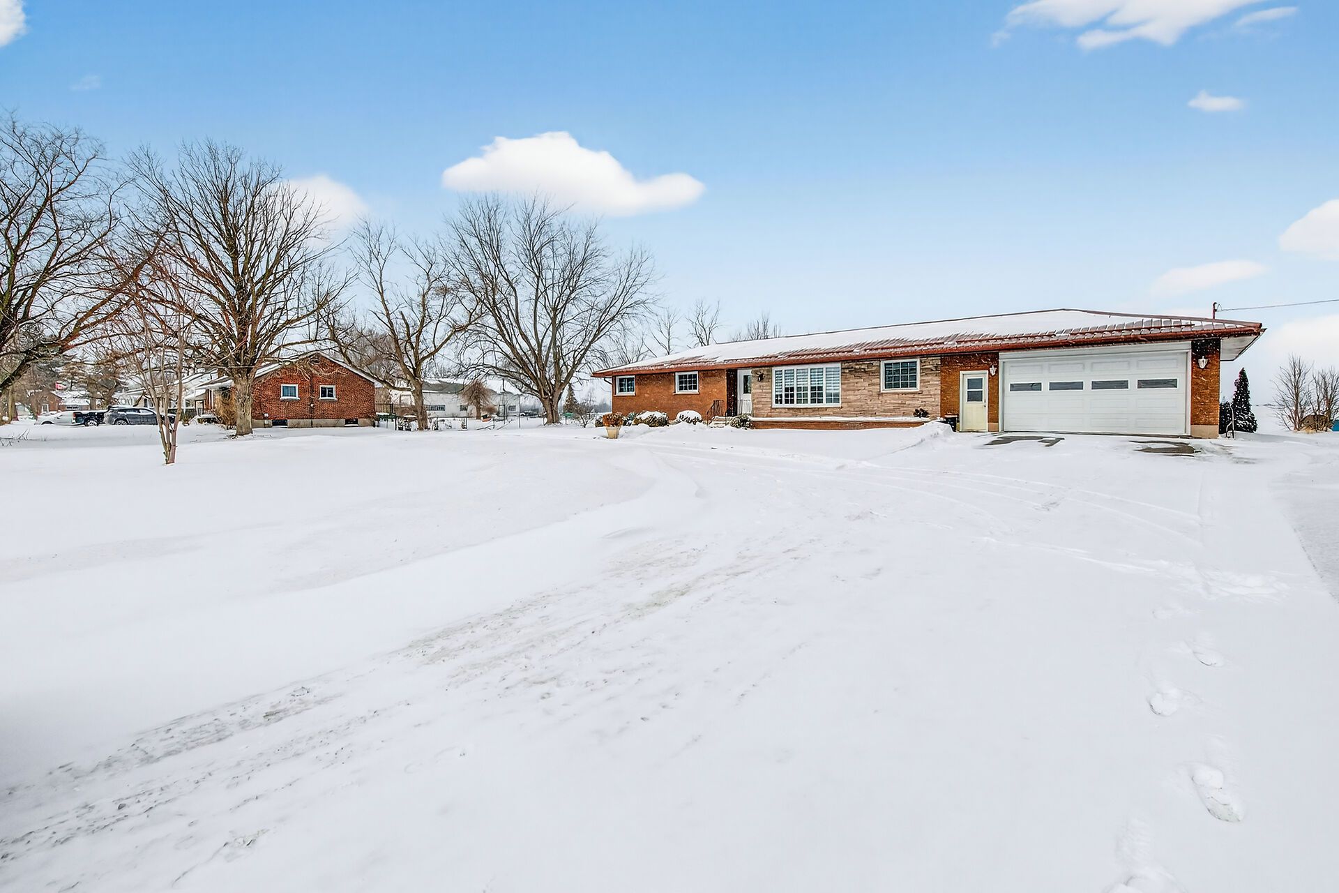 Impressive sprawling brick ranch bungalow located in nanticoke - a friendly hamlet located on banks of lake erie's golden south coast - relaxing 45-50 min commute to hamilton, brantford& hwy 403 - 10 mins e of port dover popular amenities. This freshly painted/redecorated family-friendly home is positioned handsomely on 0. 76 ac lot abutting peaceful farm fields enjoying partial lake views to the south offering 200ft of road frontage highlighted w/paved circular drive enhancing a definite street presence. Introduces over 1800sf of bright/spacious living area, similar sized finished basement, 387sf attached 2-car garage, 12x20 functional shed w/conc. Floor/hydro + 8x12 garden shed. Beautifully renovated kitchen-2016 showcases main floor design sporting custom maple cabinetry, heavy/thick granite counters, breakfast bar peninsula, quality ss appliances & dinette boasting walk-out to multi-purpose 28x28 concrete entertainment patio. Continues to comfortable living room ftrs large bay picture window, formal dining room, inviting front foyer, updated 4pc bath, convenient mud room incs direct garage entry & access to 2pc bath - completed w/bright west wing where 4 roomy bedrooms ensure ample room for growing family or multi-generational situation. Gleaming original hardwood floors compliment clean, crisp neutral décor. New low maintenance vinyl flooring-2022 compliments open concept lower level 670sf rec/games room incs lounge-style room ftrs custom oak bar, sizable 5th bedroom, cedar lined wi closet, laundry room, utility room, storage room & huge cold room. Extras inc roof-2018, facia/soffit/eaves-2018, n/gas furnace/ac-2019, 6000 gal concrete water cistern-2017, initial stage septic tank-2013, 100 amp hydro *breakers*, raised panel interior doors, updated light fixtures, battery back-up sump pump-2022 & so much more! Experience relaxing rural lifestyle with a lake twist!