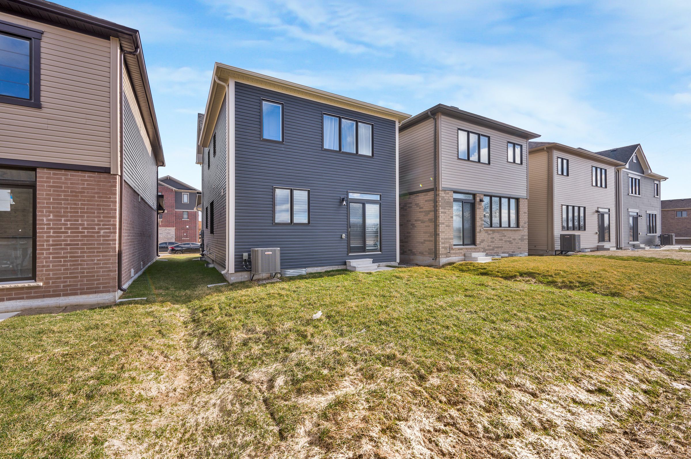 Welcome to***163 wilmot road, located in the sought-after empire south neighborhood of west brant. Set in a welcoming, family-friendly community, this attractive 2-storey home offers 3 bedrooms, 2. 5 bathrooms, along with an attached single-car garage***perfect for a growing family! This sun-filled detached residence offers modern design and thoughtful upgrades***features include 9-foot ceilings, an open-concept layout, upgraded hardwood flooring on the main level, elegant oak staircase, and large windows that flood the home with natural light. The spacious basement boasts oversized windows, offering excellent potential for future finishing. The double-door front entrance opens to a tiled foyer with a convenient main-floor powder room. The open-concept main level showcases upgraded finishes, including a blend of tile and hardwood flooring and is ideal for both everyday living and entertaining. The kitchen is a standout, featuring upgraded cabinetry, a large pantry, over-the-range microwave and a breakfast bar with double sink and dishwasher. The primary suite offers a walk-in closet and a private 5-piece ensuite. Two additional bedrooms, a second full bathroom and the convenience of bedroom-level laundry complete the upper level. Located close to schools, parks and everyday amenities. The surrounding empire south neighbourhood continues to grow, with future residential homes planned behind the property and a large, inviting green space just steps away, providing open, natural surroundings for the whole family to enjoy. A wonderful opportunity to settle into one of brantford's most desirable and growing communities-don't miss the chance to make this home yours