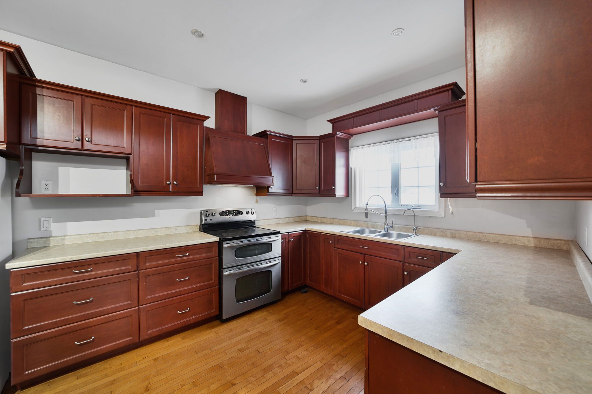 • Open-concept kitchen with custom cabinetry and breakfast bar.