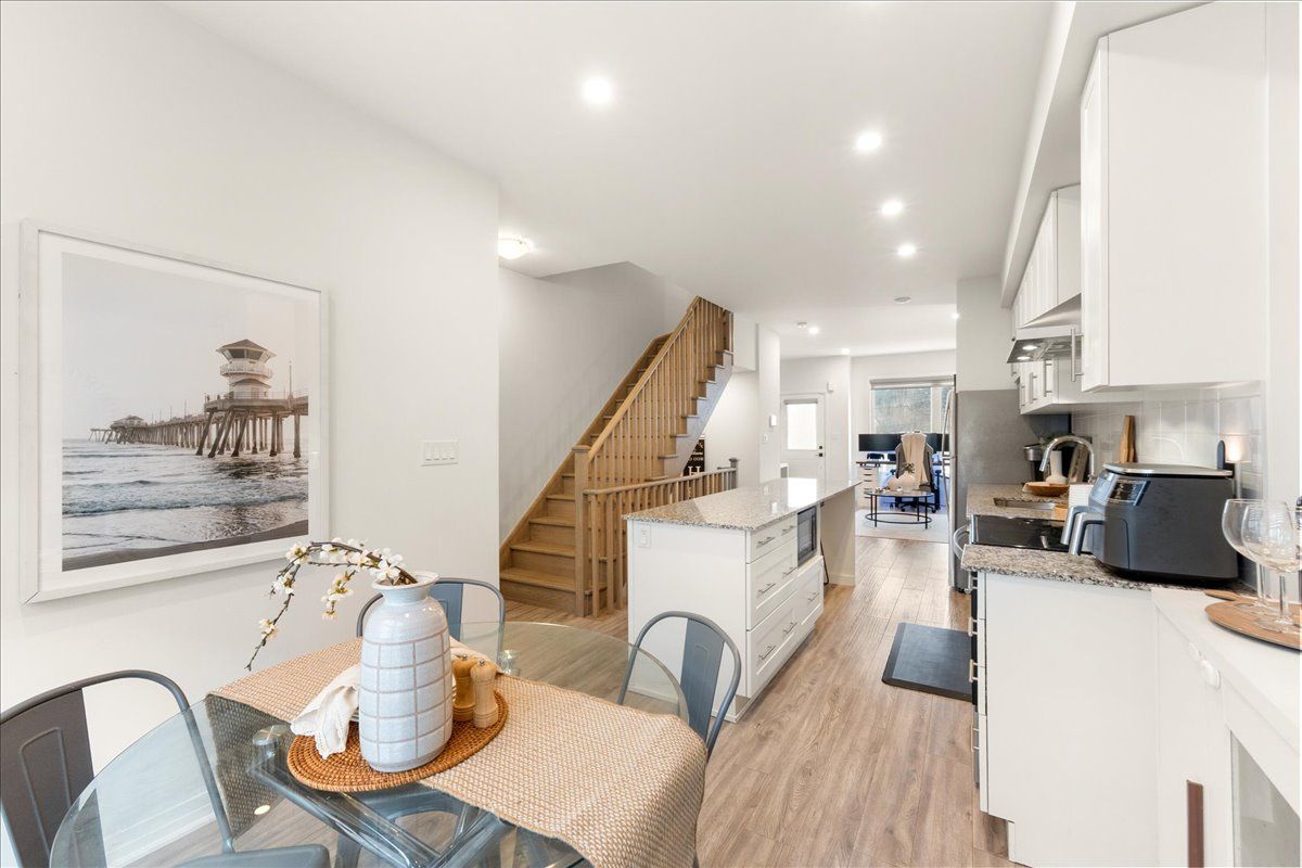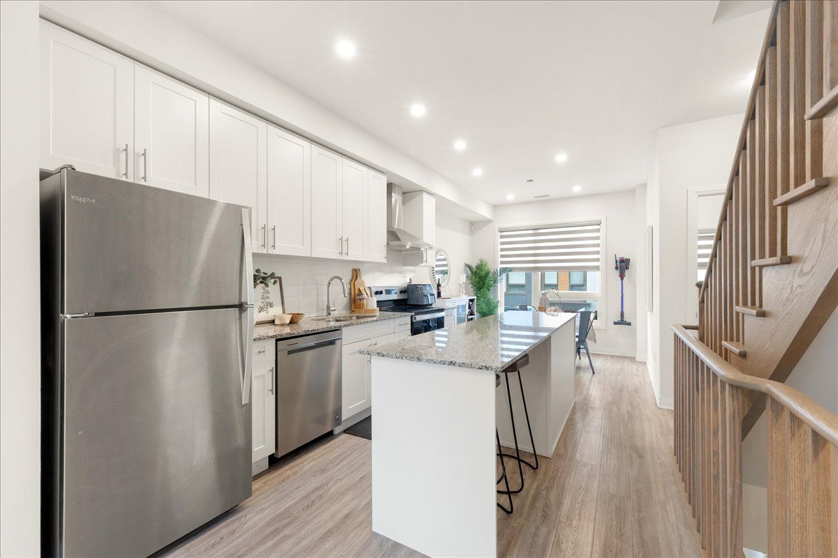 Welcome to a beautifully upgraded 3-bedroom, 3-bathroom three-storey townhouse that perfectly blends modern living with comfort and functionality. This move-in ready home offers a bright and thoughtfully designed layout that makes everyday living and entertaining effortless. The main floor features a stylish open-concept design where the kitchen, dining area, and living room seamlessly connect to create a warm and inviting space. The eat-in kitchen offers plenty of room for casual meals, while the dining area is highlighted by a large window that fills the space with natural light. The living room provides the perfect place to relax or host guests and features a walk-out to a private balcony, extending your living space outdoors. On the second floor, you'll find two generously sized bedrooms with good closet space, along with a convenient laundry area and a well-appointed 4-piece bathroom. The third floor is dedicated to the spacious primary retreat, complete with a walk-in closet, a luxurious 5-piece ensuite, and access to a large private balcony - the perfect place to unwind. Located in north oshawa's desirable windfields community, this home is just minutes from ontario tech university, durham college, shopping, restaurants, parks, and everyday amenities, with easy access to highway 407 for commuters. Combining stylish upgrades, a functional layout, and an excellent location, this move-in ready home is an opportunity you won't want to miss.