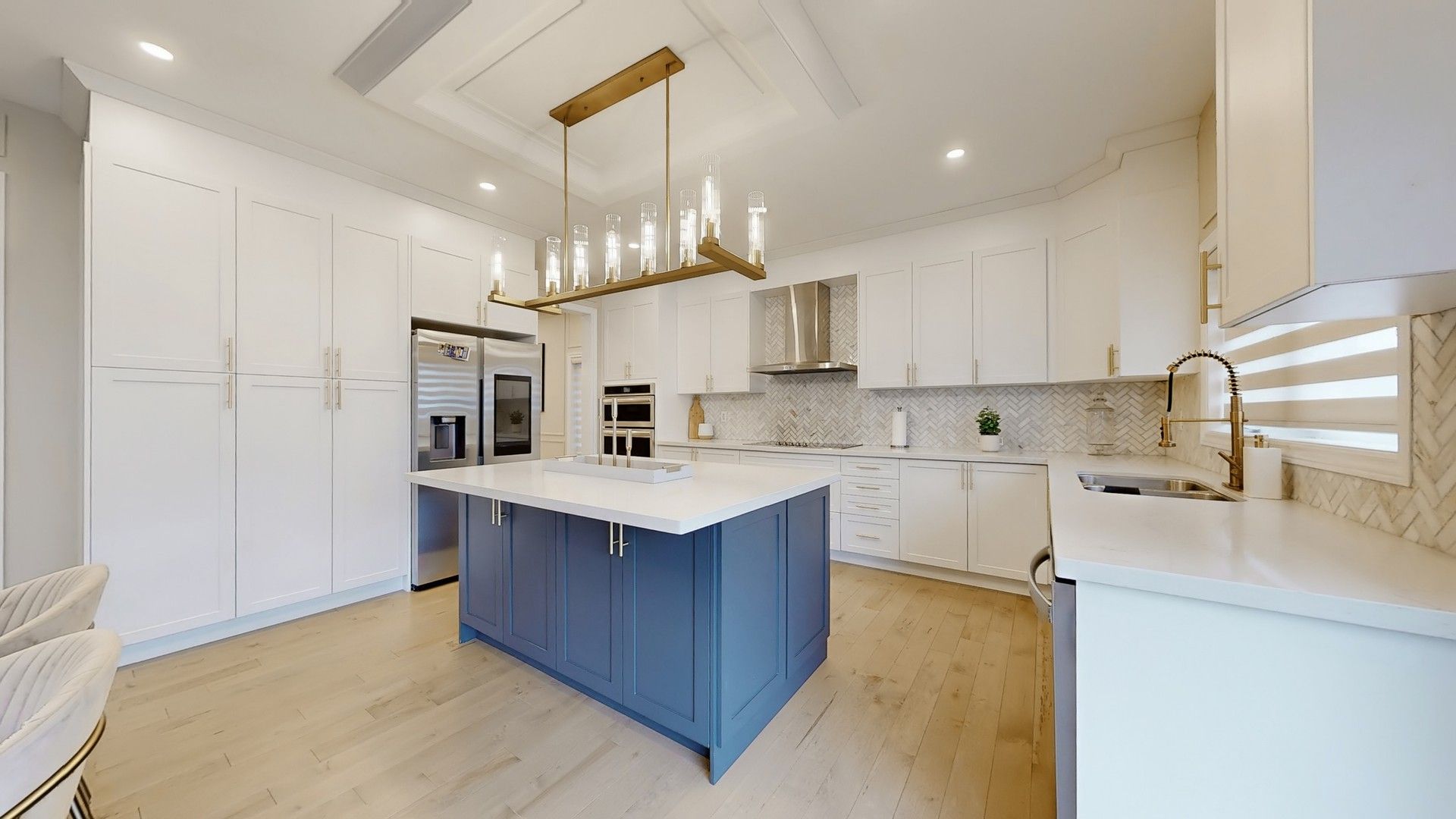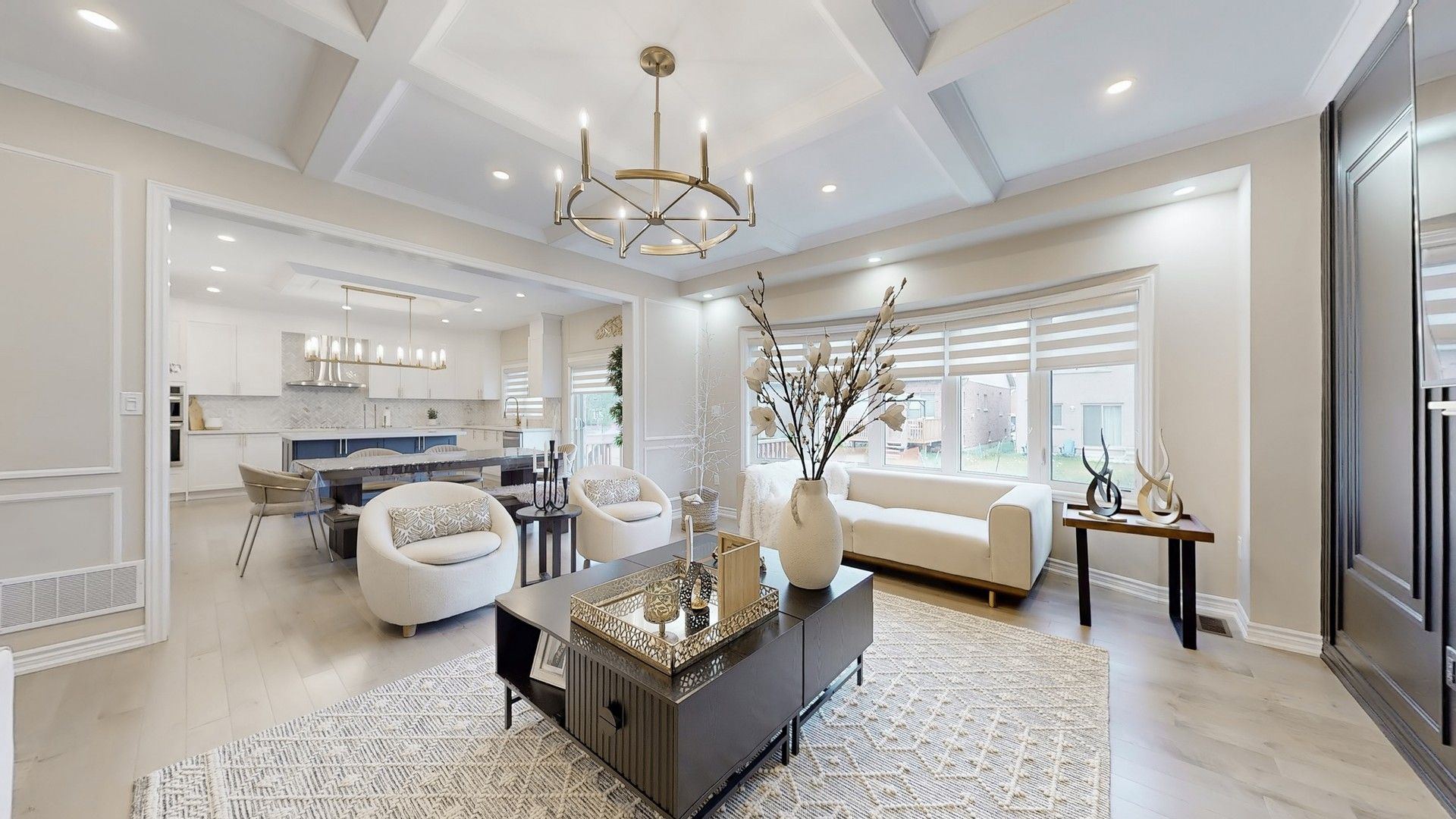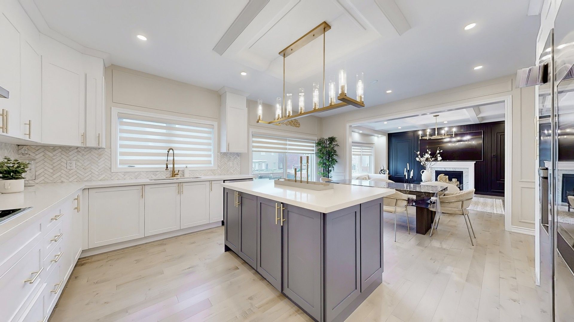 • Large windows flooding the home with natural light and highlighting finishes.